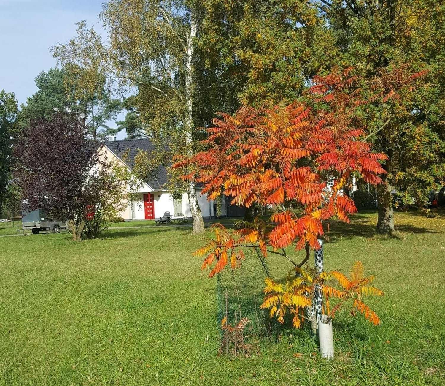 Natürlich können Sie das gesamte Grundstück mit seinen großen Grasflächen, den urigen Kiefern und dem hellen Birkenwäldchen nutzen.