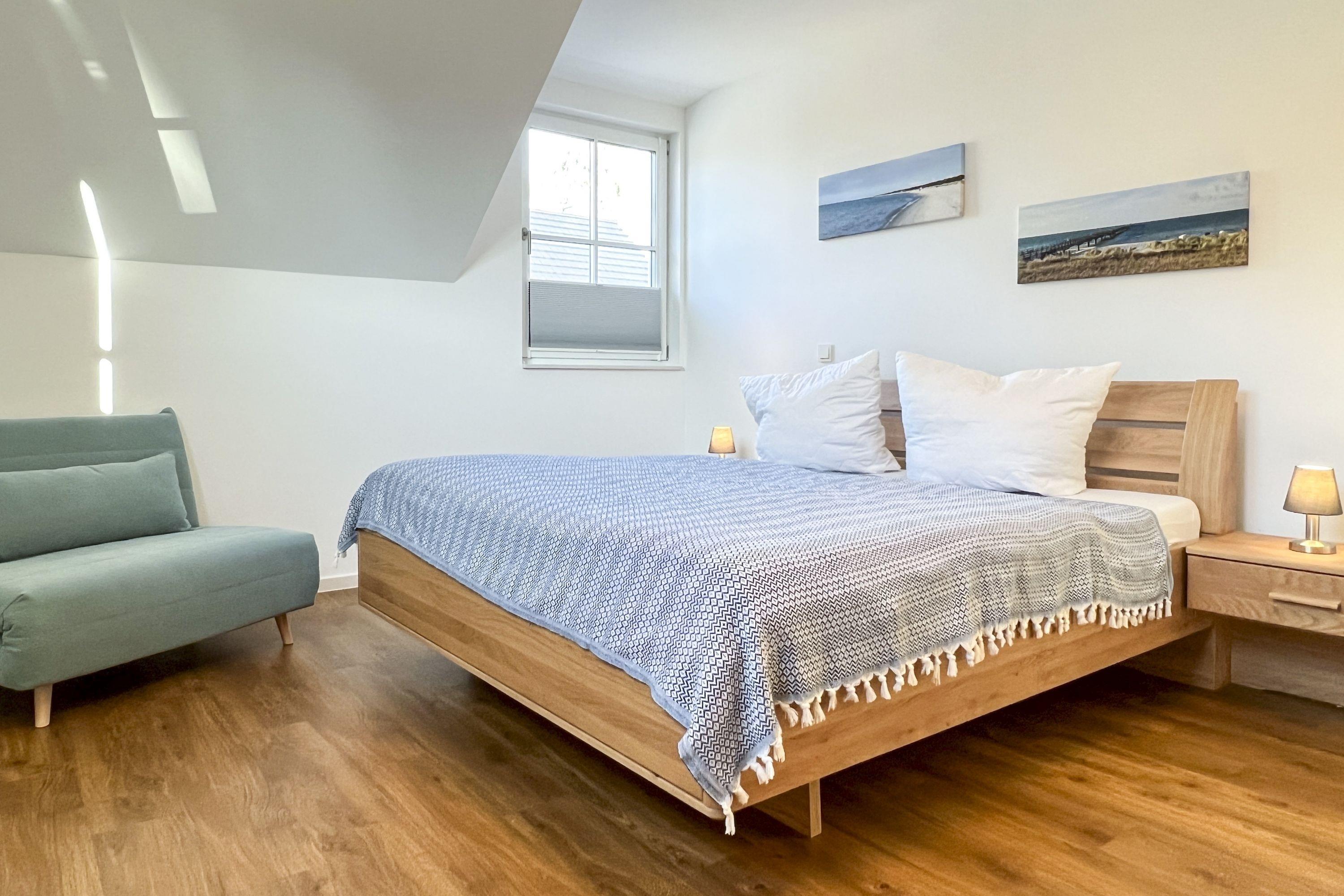Die beiden Schlafzimmer sind komfortabel eingerichtet und sorgen für erholsame Nächte. Zwei Badezimmer mit bodengleichen Duschen und Fußbodenheizung bieten modernen Komfort, während das gesamte Haus durchdacht ausgestattet ist – von der Waschmaschine bis zum WLAN-Arbeitsbereich für alle, die auch im Urlaub produktiv bleiben möchten.