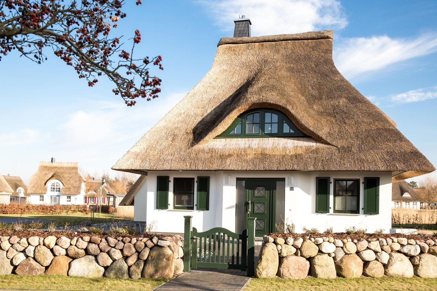 Dieses modern ausgestattete Ferienhaus mit traditionellem Reetdach, ortstypischer Feldsteineinfriedung und 664 m2 großem, eingezäuntem Grundstück, liegt in einer neuen Ferienhausanlage. Es bietet viel Platz für vier Feriengäste (zwei Schlafzimmer mit Doppelbett und TV) und verfügt über einen großzügigen Wohn-Essbereich, ein einladendes Wannen-/Duschbad mit WC und Sauna im OG sowie ein Gäste-WC im EG.