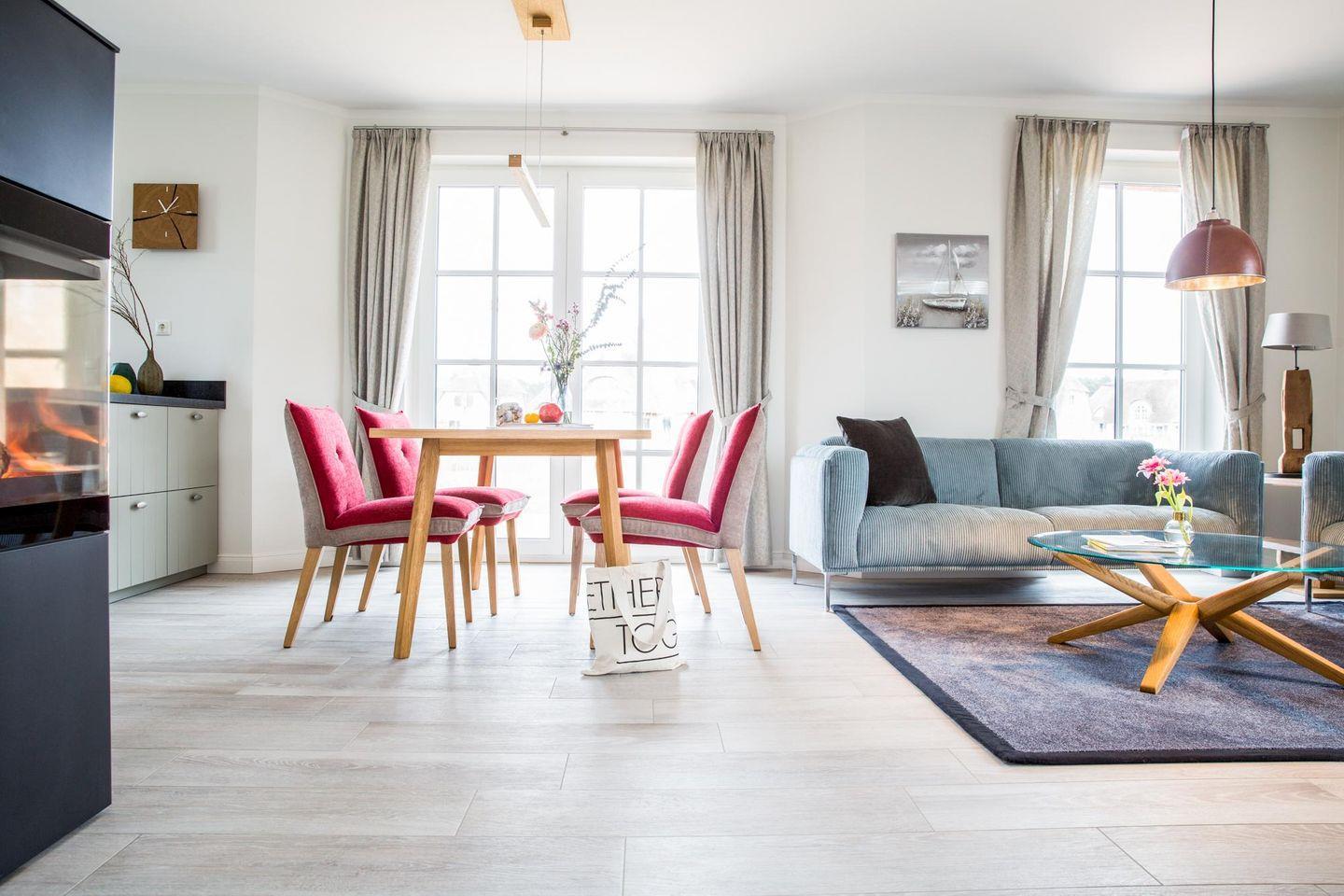 Im EG befindet sich ein ca. 36 qm großer Wohn-Essbereich mit gemütlicher Couch, Kaminofen, SAT-TV mit Sky und neben einer komplett ausgestatteten Küche ist ein Esstisch für 4 Personen vorhanden. .