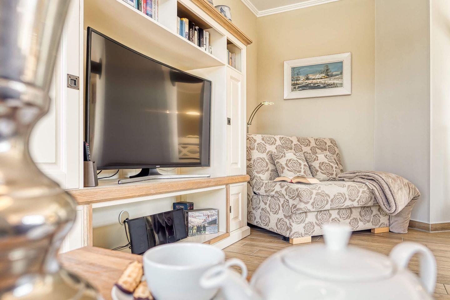 Dieses wunderschöne Ferienhaus mit traditionellem Reetdach, Fensterläden, ortstypischer Feldsteineinfriedung und 803 m2 großem, eingezäuntem Grundstück am Teich liegt in einer neuen Ferienhausanlage. Es bietet großzügig Platz für vier Feriengäste (zwei Schlafzimmer mit Doppelbett) und verfügt über zwei hochwertige Bäder und ein Gäste-WC, davon ein Bad mit Dusche und Sauna im EG und ein Bad mit Badewanne und Dusche im OG.