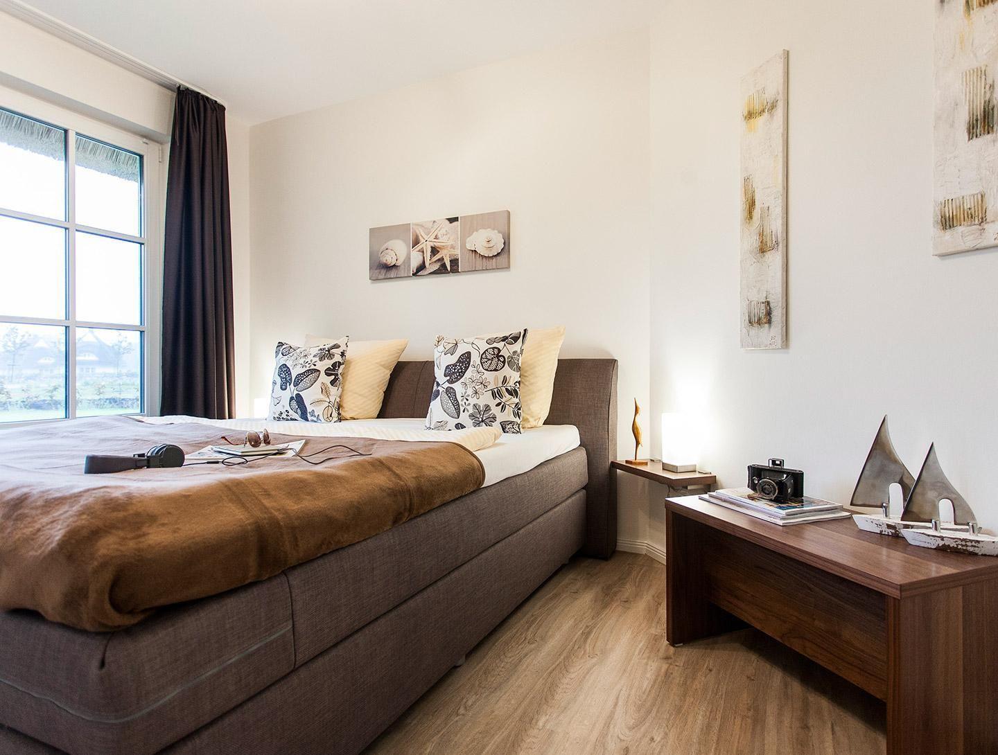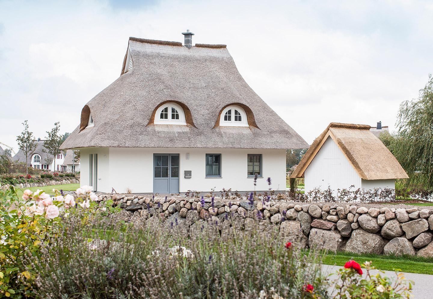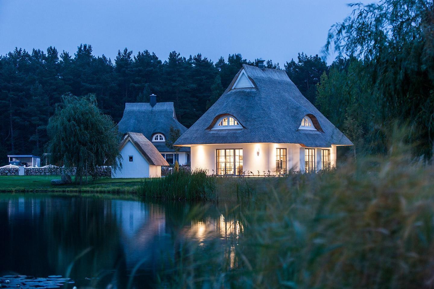 Dieses wunderschöne Ferienhaus mit traditionellem Reetdach, ortstypischer Feldsteineinfriedung und 740 m2 großem Grundstück am Teich liegt in einer neuen Ferienhausanlage. Es bietet großzügig Platz für sechs Feriengäste (drei Schlafzimmer mit Doppelbett, davon eins im EG) und verfügt über zwei hochwertige Bäder und ein Gäste-WC, davon ein Bad mit Badewanne und Dusche, ein Bad mit Dusche und Sauna.
