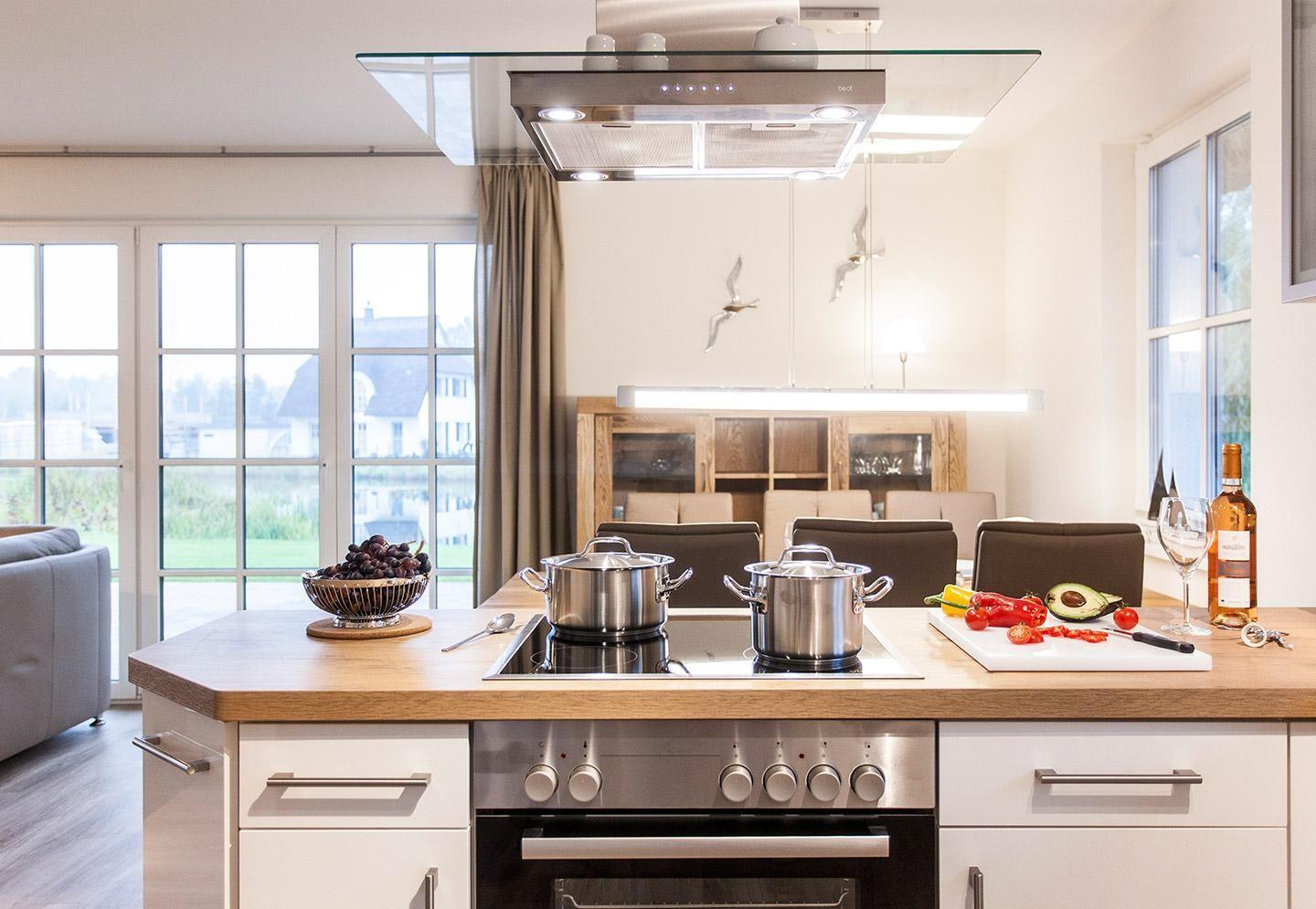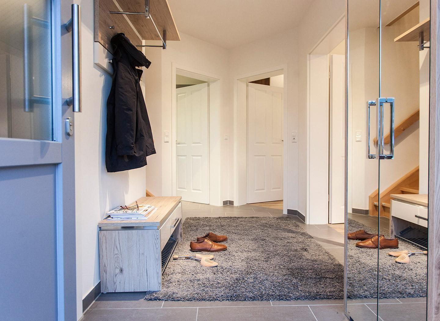 Im Erdgeschoss befindet sich ein ca. 30 qm großer Wohn-Essbereich mit gemütlichen Sitzmöglichkeiten, Kaminofen, SAT-TV mit Sky und neben einer komplett ausgestatteten Küche ist ein großer Esstisch für sechs Personen vorhanden. SAT-TV in zwei Doppelschlafzimmer. In dem Hauswirtschaftsraum befinden sich u.a. Waschmaschine, Bügeleisen und Bügelbrett und Reinigungsutensilien.