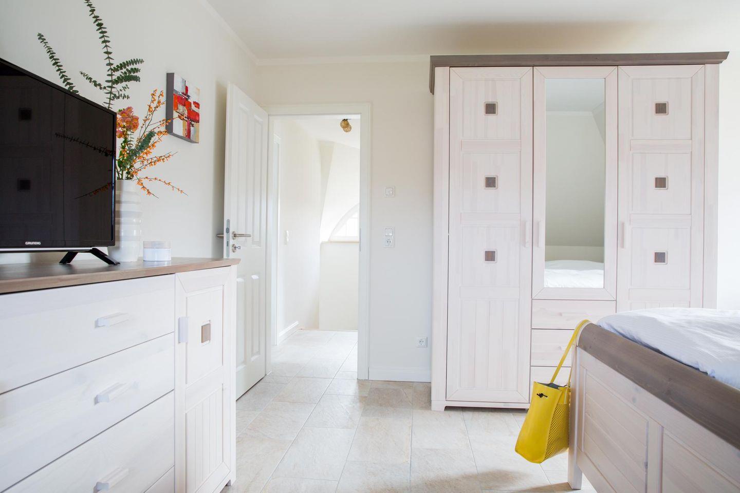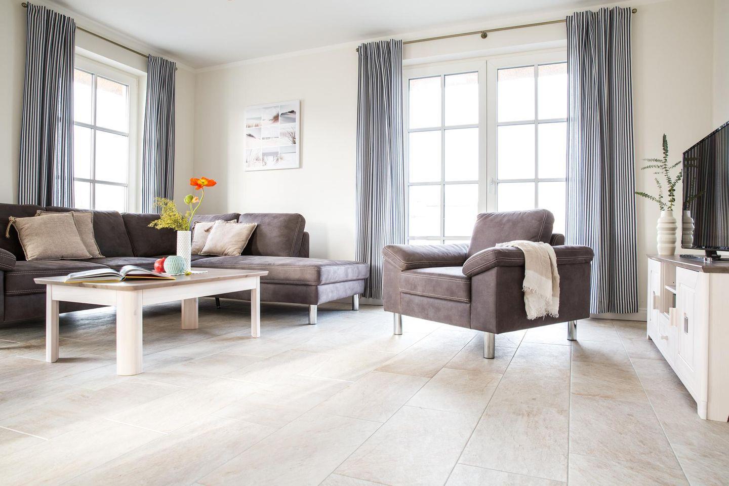 Dieses modern ausgestattete Ferienhaus mit traditionellem Reetdach, ortstypischer Feldsteineinfriedung und 715 m2 großem Grundstück liegt in einer neuen Ferienhausanlage. Es bietet viel Platz für vier Feriengäste (zwei Schlafzimmer mit Doppelbett und TV) und verfügt über einen großzügigen Wohn-Essbereich, ein einladendes Wannen-/Duschbad mit WC und Sauna im OG sowie ein Gäste-WC im EG.