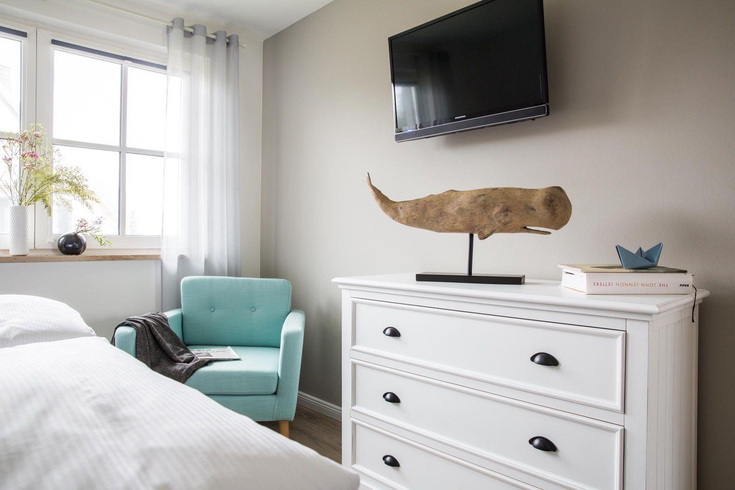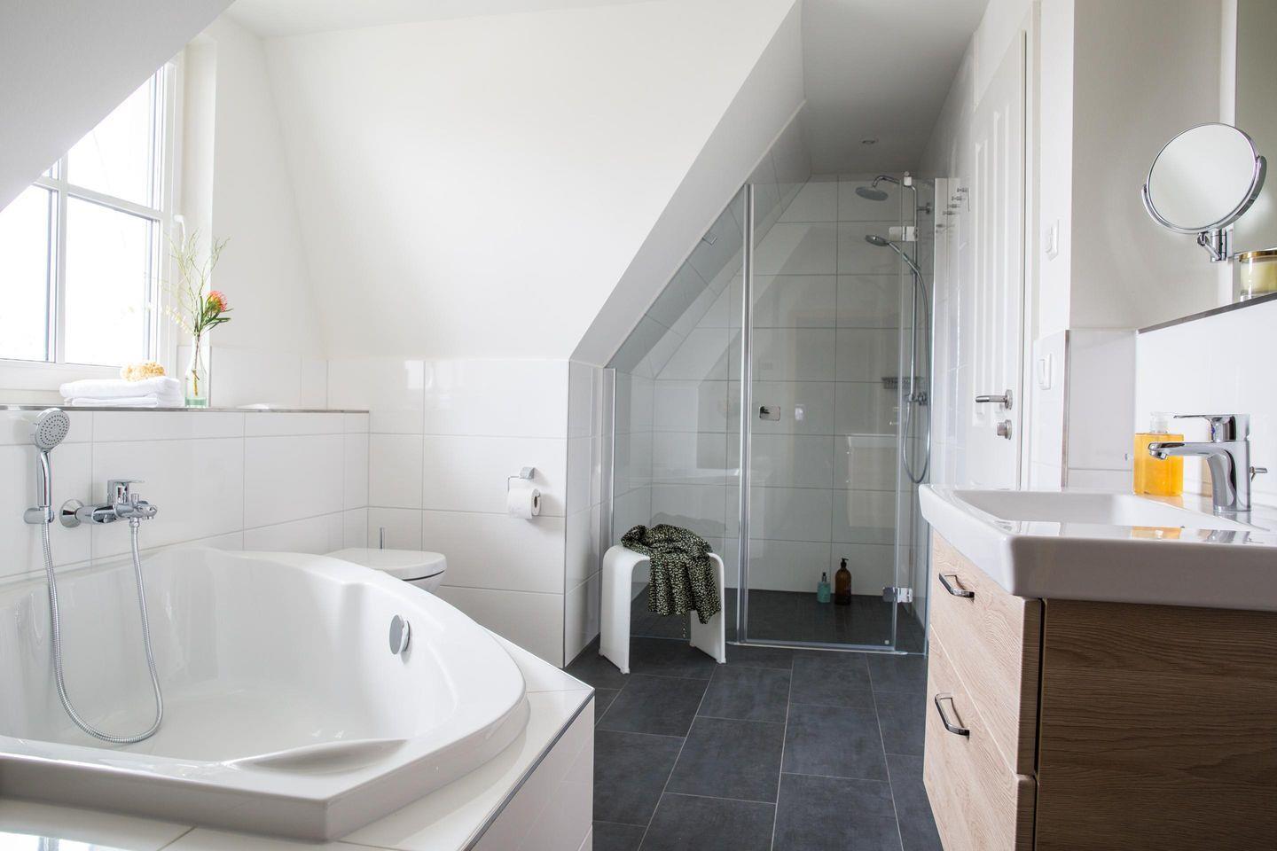 Dieses modern ausgestattete Ferienhaus mit traditionellem Reetdach, ortstypischer Feldsteineinfriedung und idyllischem, 537 m2 großem Grundstück liegt in einer neuen Ferienhausanlage. Es bietet viel Platz für vier Feriengäste (zwei Schlafzimmer mit Doppelbett-Boxspringbett ) und verfügt über einen großzügigen Wohn-Essbereich, ein einladendes Wannen-/Duschbad mit WC und Sauna im OG sowie ein Gäste-WC im EG.