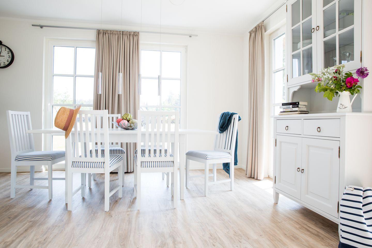 Im EG befindet sich ein ca. 30 qm großer Wohn-Essbereich mit gemütlicher Couchecke, Kaminofen, SAT-TV mit Sky und neben einer komplett ausgestatteten Küche ist ein Esstisch für 6 Personen vorhanden. Die großzügige Terrasse bietet viel Morgen- und Abendsonne.