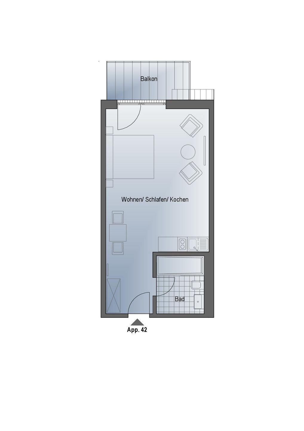 Das komfortable Appartement bietet auf 38 qm Platz für bis zu 2 Personen. Der gemütliche Wohn- und Schlafbereich besitzt ein modernes Doppelbett (1,80m x 2,00m), auf welchem Sie Ihre Erholung finden werden. Zu Ihrem Entertainment dient ein moderner Flatscreen-TV. Ein Kinderbett sowie ein Hochstuhl können auf Anfrage hinzugebucht werden.