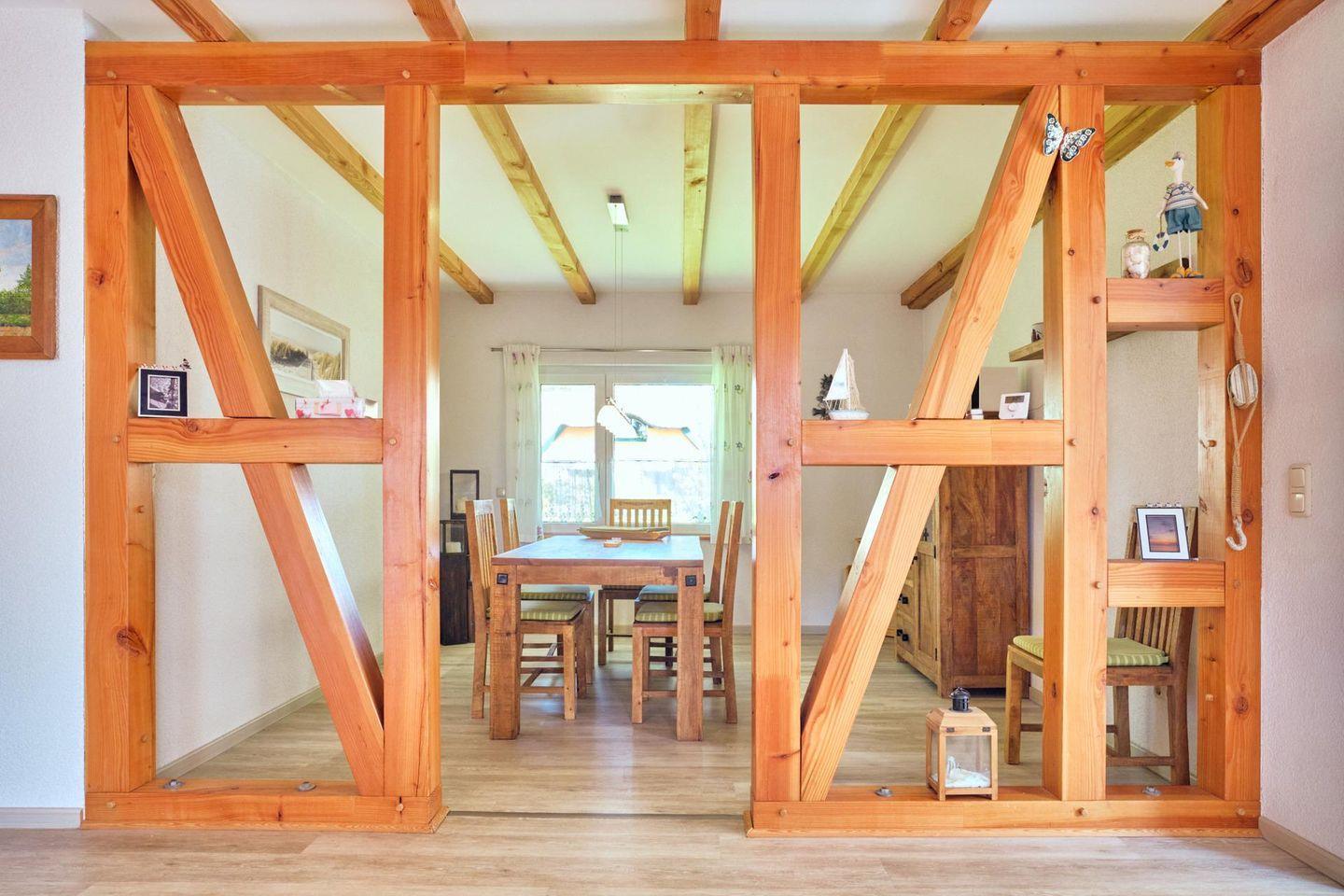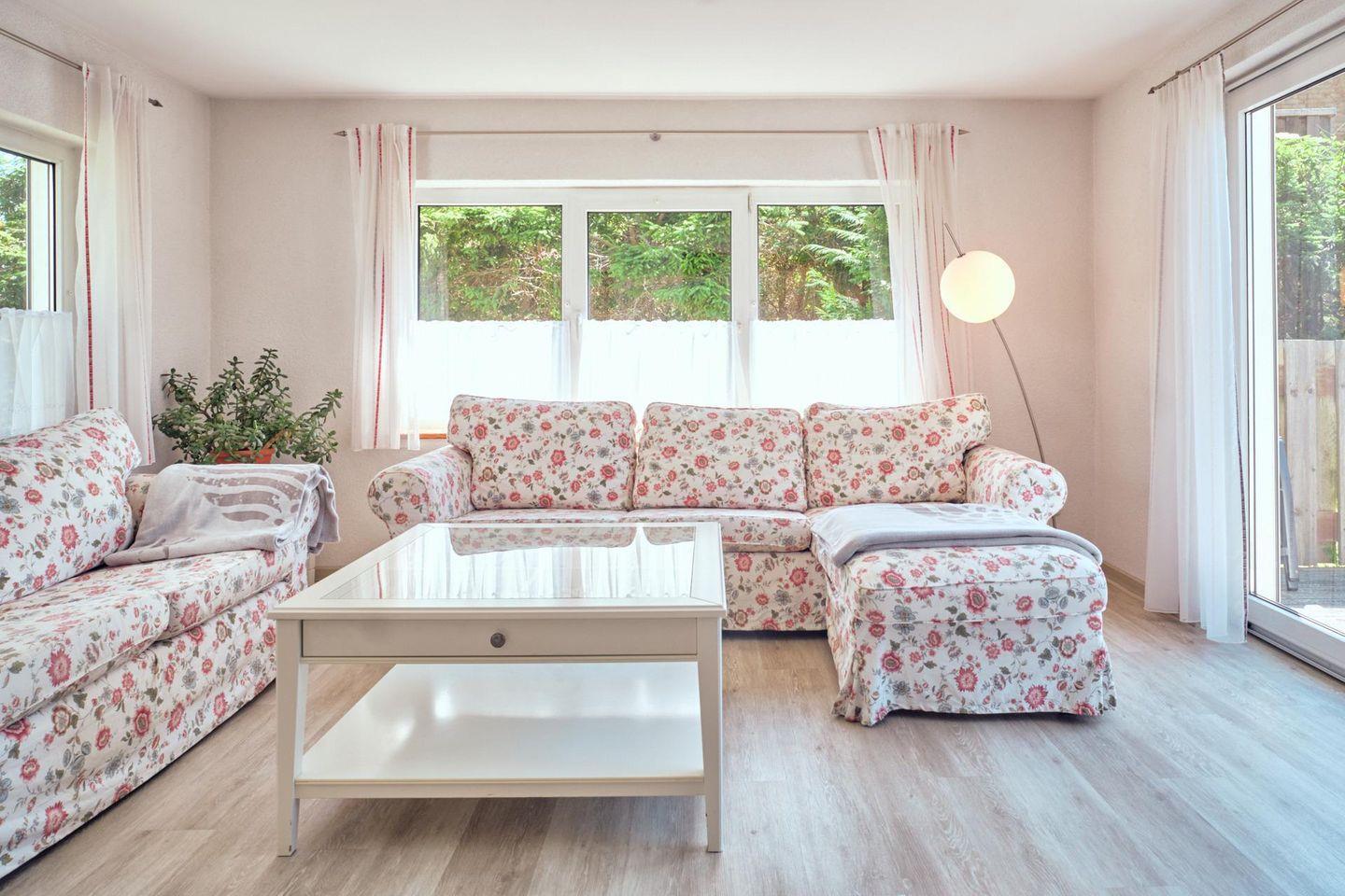 Das stilvoll eingerichtete Domizil für bis zu 6 Personen verfügt auf 2 Ebenen über einen großen Wohnbereich mit Kaminofen, 1 offene Küche, 1 Essbereich, 2 Schlafräume, 2 Bäder, 1 Hauswirtschaftsraum und ein ca. 1.000 m² großes, komplett eingezäuntes Grundstück.