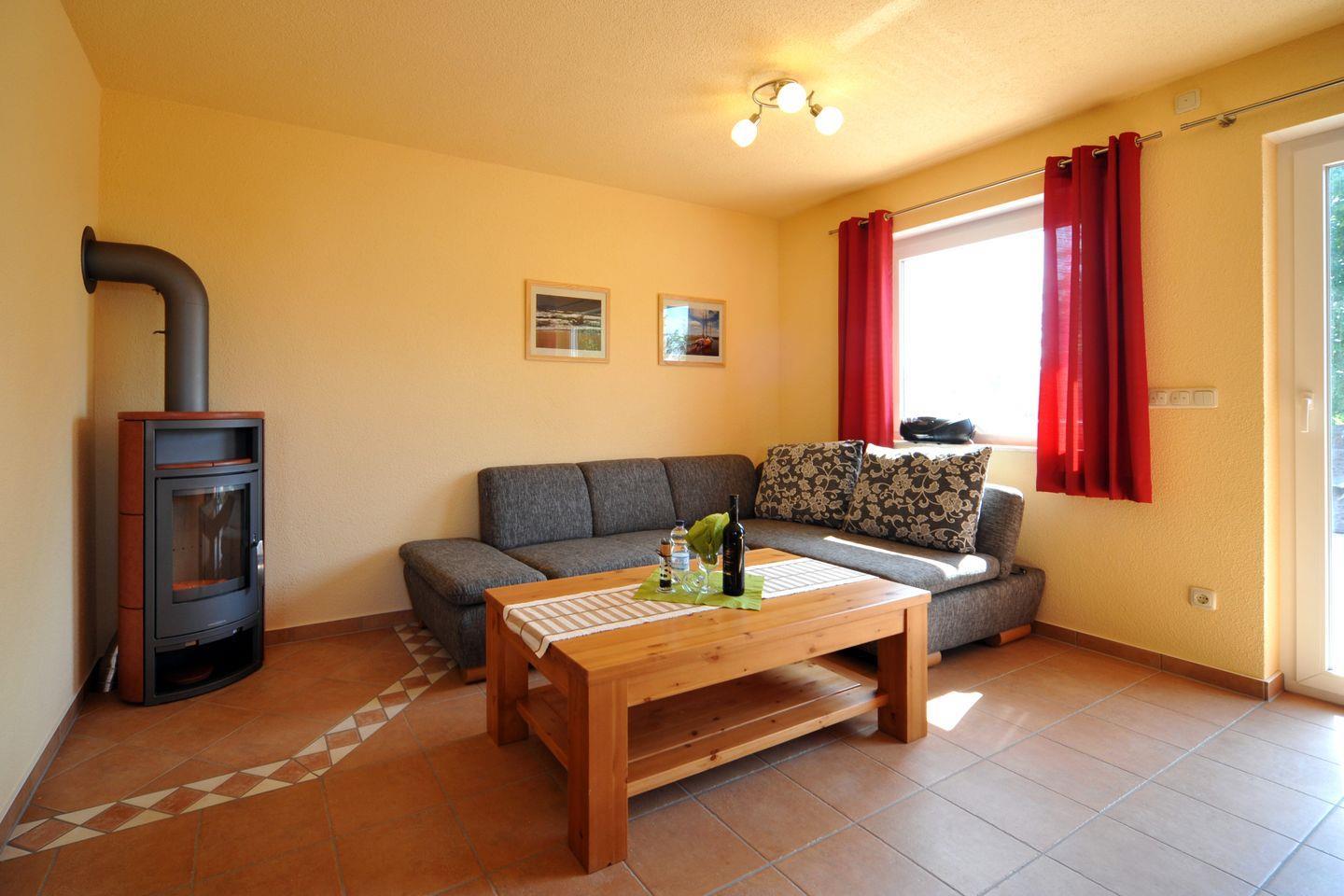 Die Doppelhaushälfte 8A erstreckt sich über drei Wohnebenen und bietet auf großzügigen ca. 100 m² viel Platz für bis zu 6 Personen. Im Erdgeschoss befindet sich das lichtdurchflutete, offene Wohn-/Esszimmer, das mit einer gemütlichen Polstersitzecke, einem Flachbild-TV und einem Essbereich ausgestattet ist. Die angrenzende Küchenzeile lässt keine Wünsche offen und verfügt über einen E-Herd, einen Geschirrspüler sowie einen Kaminofen, der für eine behagliche Atmosphäre sorgt. Zudem befinden sich hier ein praktisches Gäste-WC und ein Hauswirtschaftsraum.
