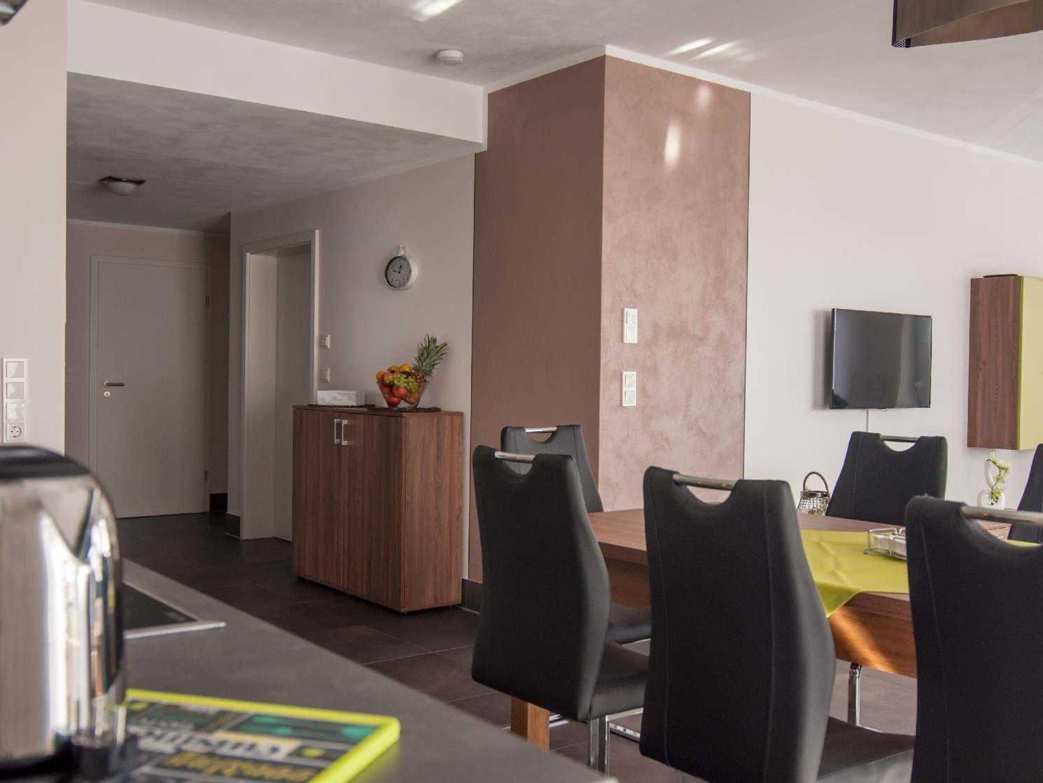 Die Apartment-Wohnung besteht aus 1 Doppelzimmer jeweils mit Dusche/WC/Fön, 1 Doppelzimmer und ein Einzelzimmer mit Bad; angebunden an einen großen einladenden lichtdurchfluteten Wohn-/Essbereich mit offener Küche. Alle Zimmer der Apartmentwohung sind mit Fußbodenheizung, elektrischen Rollläden und Lüftungsanlage ausgestattet, desweiteren mit Flatscreen-TV und WLAN. Gerne können wir unser Doppelzimmer in Zwei-Bett-Zimmer für Sie umgestalten. Bitte nennen Sie uns hier einfach Ihre Vorstellungen. Unsere moderne Küche ist großzügig mit umfassendem Zubehör und modernen Elektrogeräten ausgestattet, die zum Kochen, Spülen und Kühlen benötigt werden. Auch Bettwäsche und Handtücher stehen Ihnen selbstverständlich einmal zur Verfügung. Auf dem Balkon stehen Ihnen Gartenmöbel zur Verfügung, die Sie schon am Morgen zum Frühstücken nutzen können. Wir bieten Ihnen allergikerfreundliche Zimmer; insofern ist das Rauchen nur im Außenbereich (Balkon) erlaubt. Um allen unseren Kunden gerecht zu werden können wir Haustiere leider nicht erlauben. Stellplätze sind ausreichend vorhanden.
