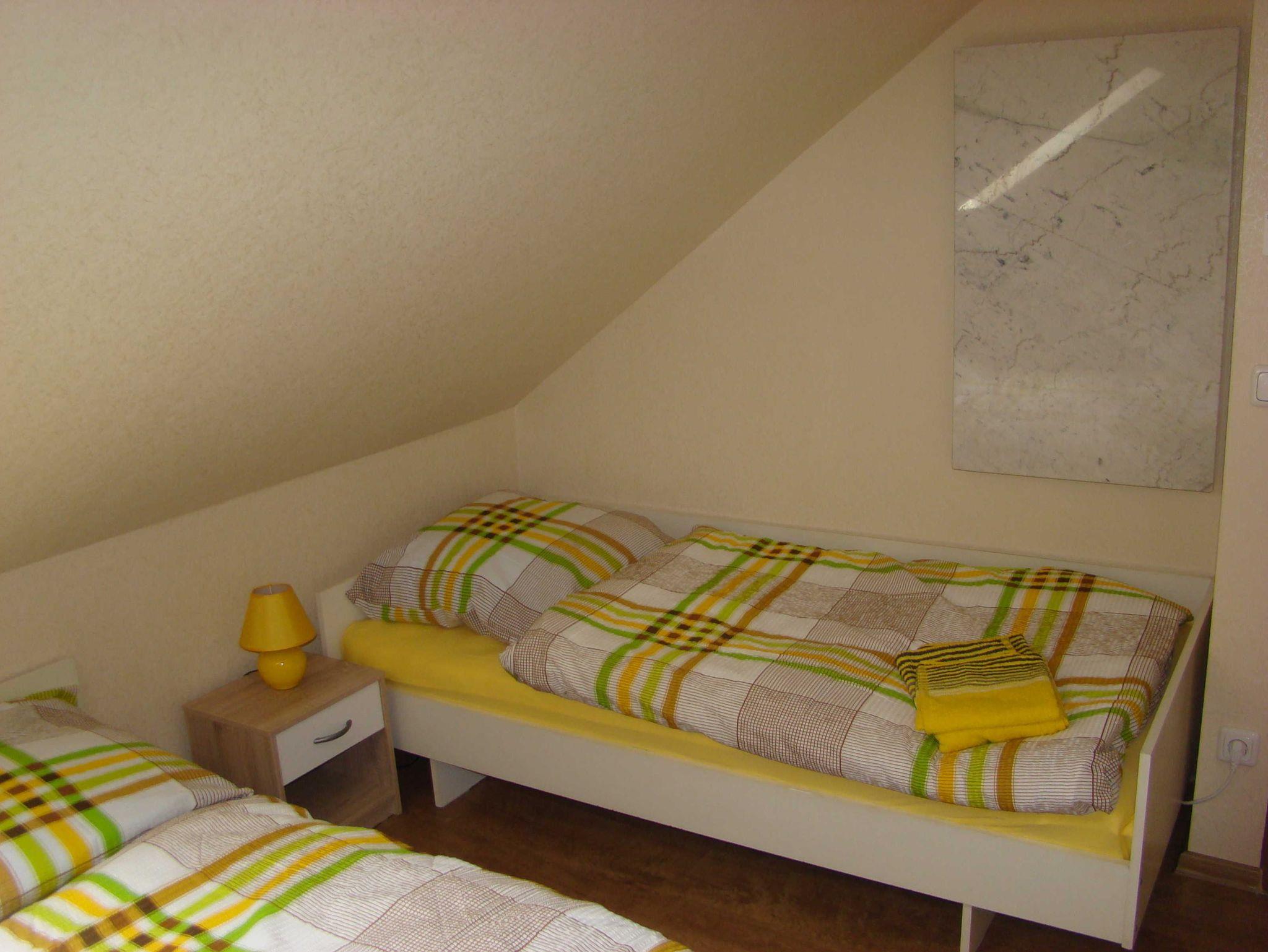 Unsere (Nichtraucher-) Ferienwohnung Goldener Fuchs von Moschendorf wurde 2015 neu eingerichtet und erstmals vermietet. Sie umfasst das komplette Obergeschoss und verfügt über 2 Schlafzimmer mit insgesamt 5 Betten sowie einen großen Wohn-/Koch- und Essbereich, weitere Übernachtungsmöglichkeiten bieten zwei Schlafcouchen.