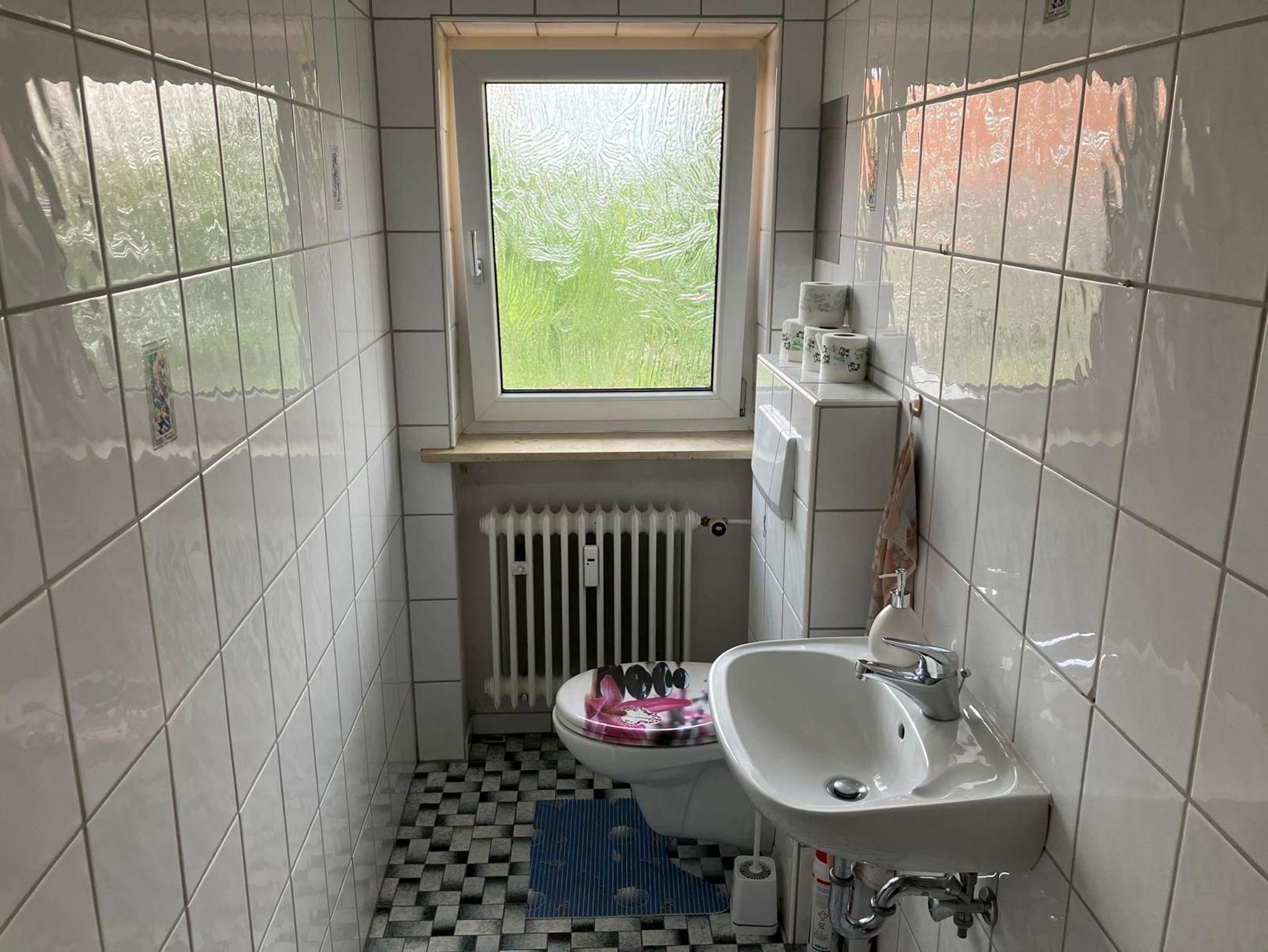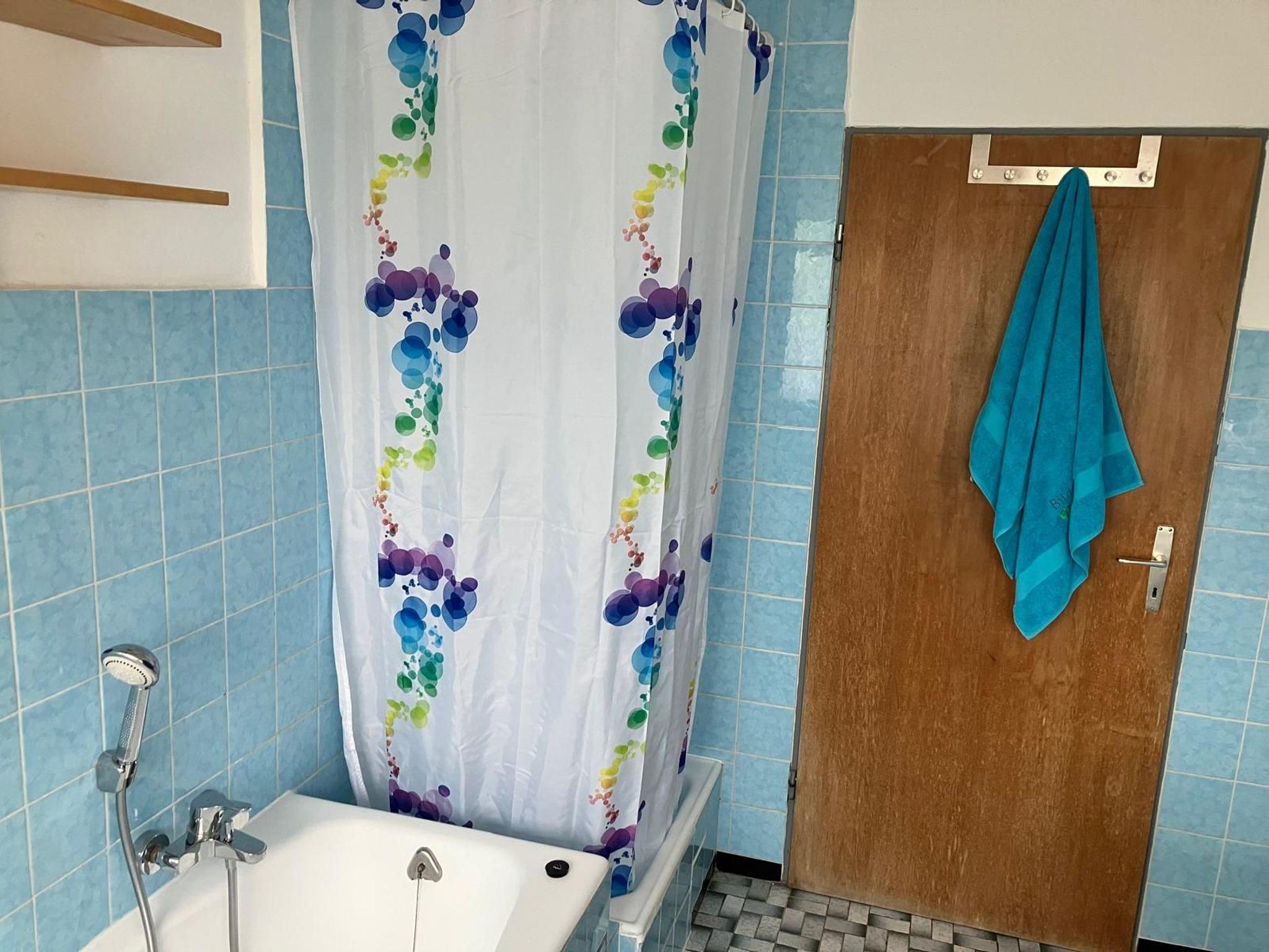 Das Badezimmer ist mit Badewanne und Dusche ausgestattet. Das WC ist separat.