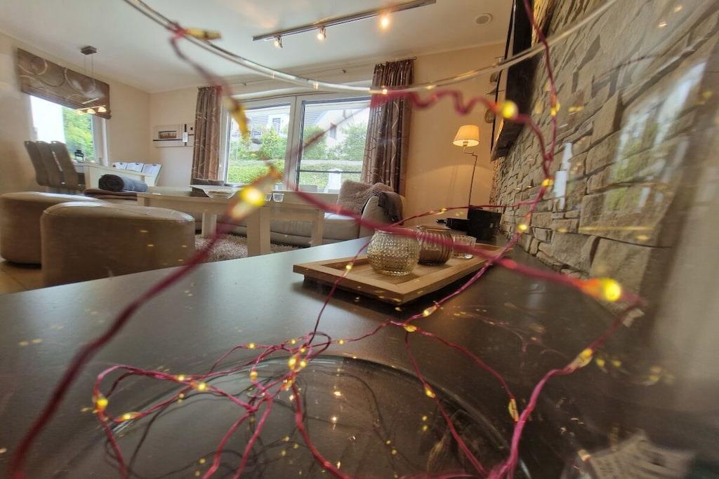Stueetage: (entre(), stue / spisestue(, , , , bibliotek, Fjernsyn, spisebord, pejs, kakkelovn, DVD-afspiller, kogeplade, elkedel, brødrister, brødrister, kaffemaskine, ovn, mikrobølgeovn, opvaskemaskine , køleskab, fryser, varme, insektnet), badeværelse(, toilet, sauna, bruser, bruser, håndvask, varme, føntørrer, insektnet), pulterkammer(, tørreskab)) På 1. etage: (soveværelse(, dobbeltseng, Fjernsyn, varme, insektnet), soveværelse(, enkeltseng, enkeltseng, Fjernsyn, varme, insektnet), soveværelse(, dobbeltseng, Fjernsyn, varme, insektnet), badeværelse(, toilet, bruser, bruser, håndvask, varme, føntørrer, insektnet)) På 2. etage: (Børneværelse(, bibliotek, enkeltseng, enkeltseng, Fjernsyn, varme)) , , pulterkammer, Internetadgang, Førstehjælp, varme, terrasse(, grill, hottub, havemøbler), have(Grill center, Græsplæne, havemøbler, solstole, Haveskur), parkering, trappegitter, strygebræt, strygejern, tørreskab