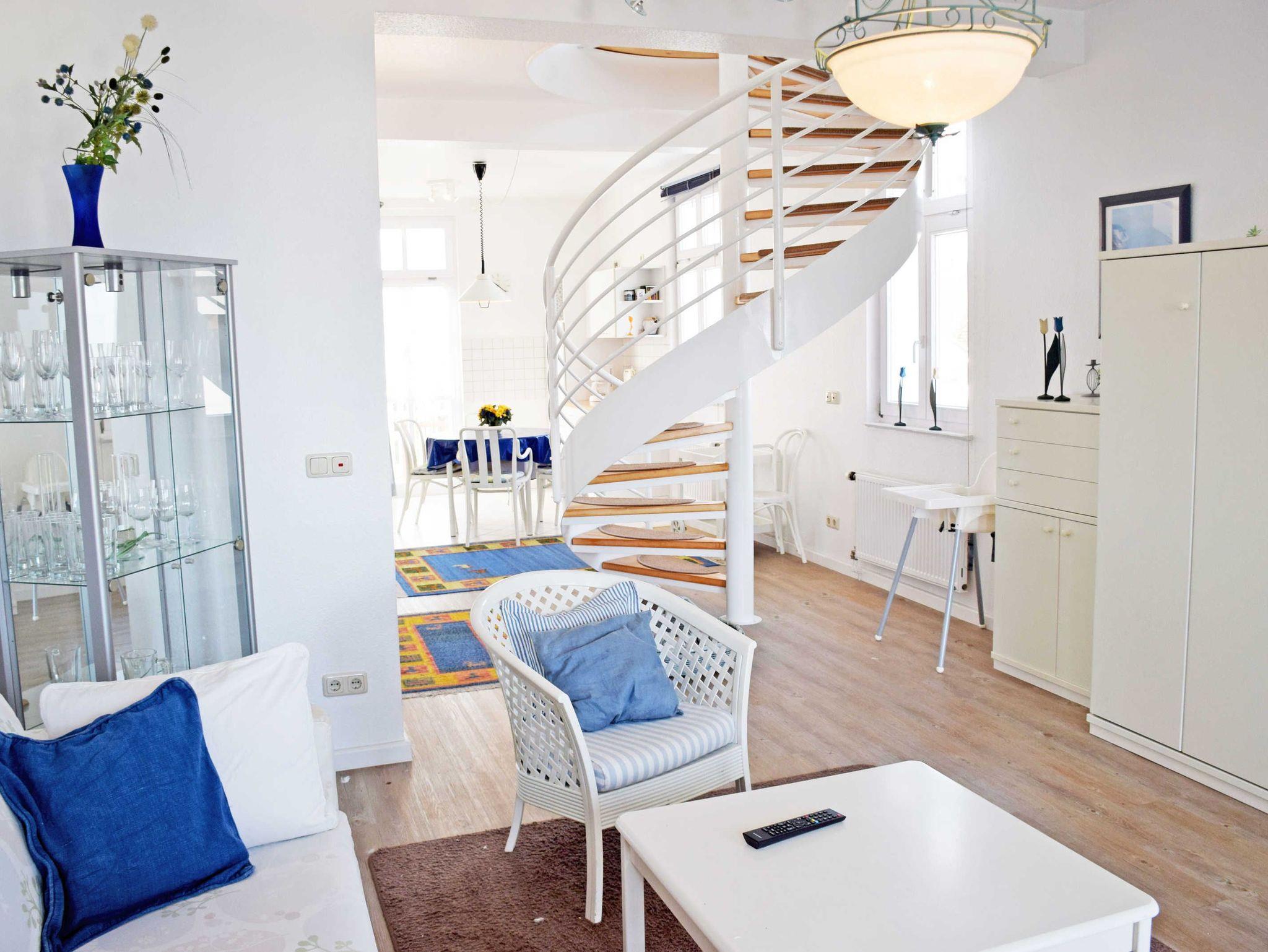 Die Wohnung Nr. 9 hat 78 m² Wohnfläche,befindet sich im Haupthaus in der 2. Etage und ist als Maisonette - Wohnung über 2 Ebenen mit Wendeltreppe gebaut. Sie bietet Ihnen 3 Zimmer, WLAN, Duschbad und zwei Balkone, einer davon mit herrlichen Blick zur Ostsee, der andere über die Dächer des Ortes.