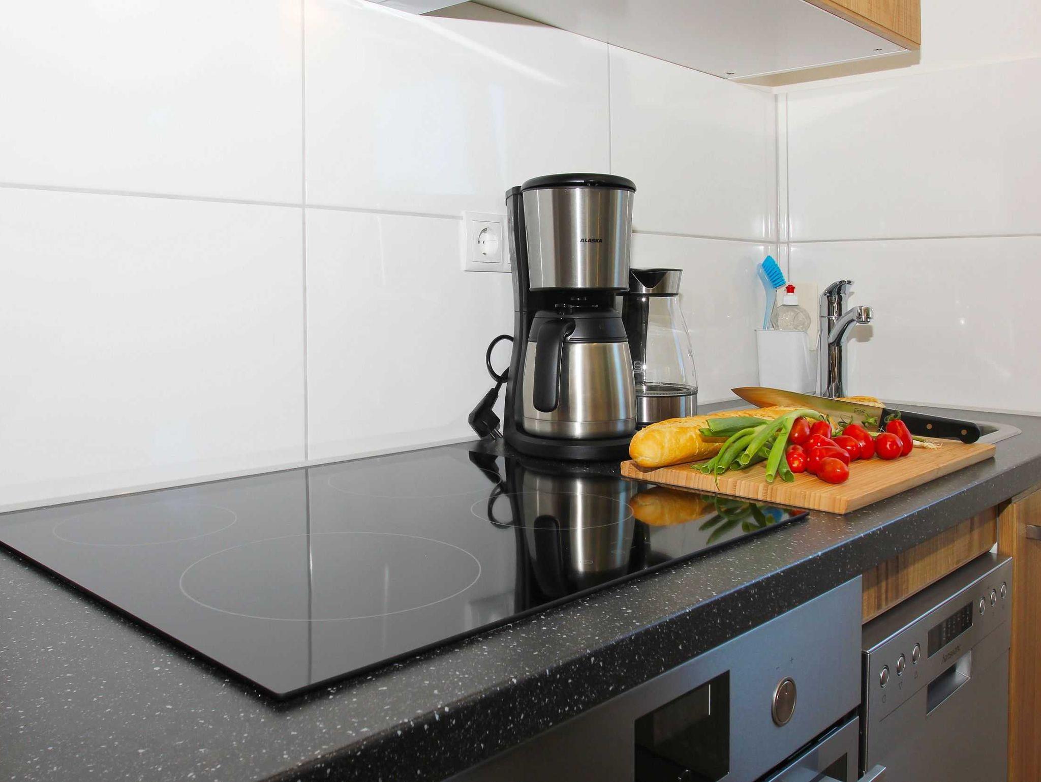 • KÜCHE: offene Küche, 4-Felder Ceranherd, Kühlschrank mit Gefrierfach, Spülmaschine, Toaster, Wasserkocher, Kaffeemaschine, reichlich Besteck, Geschirr und Küchenutensilien