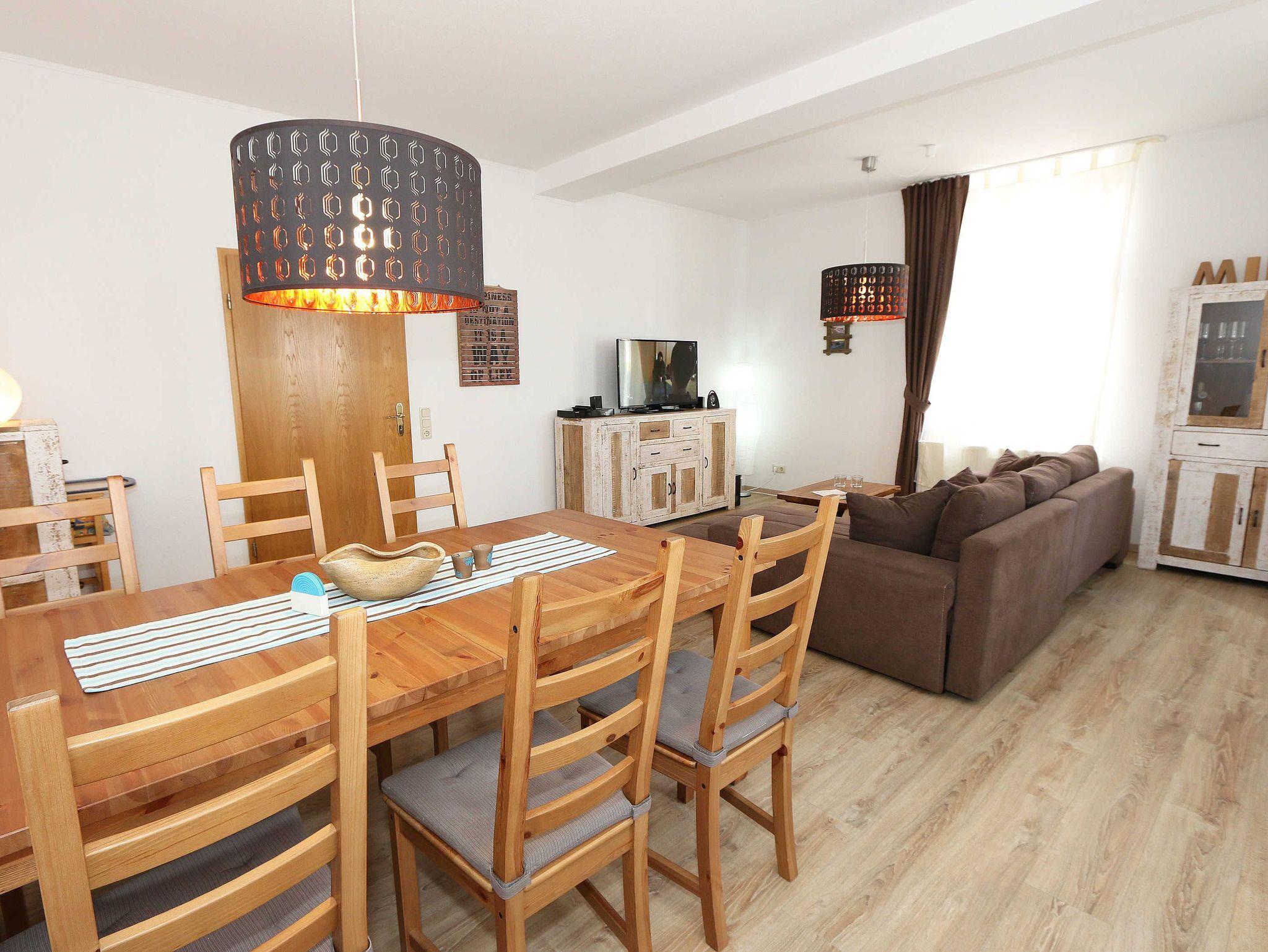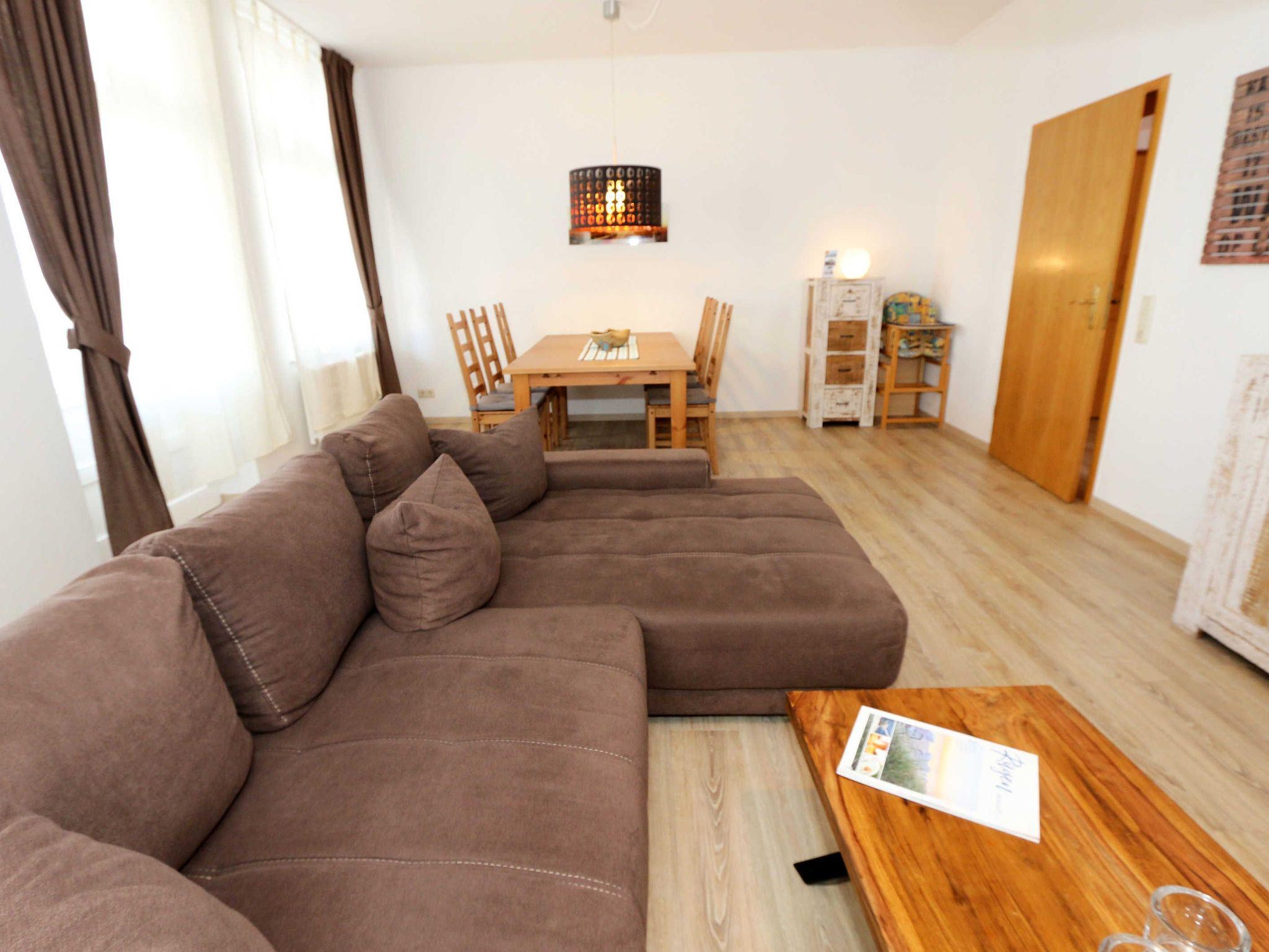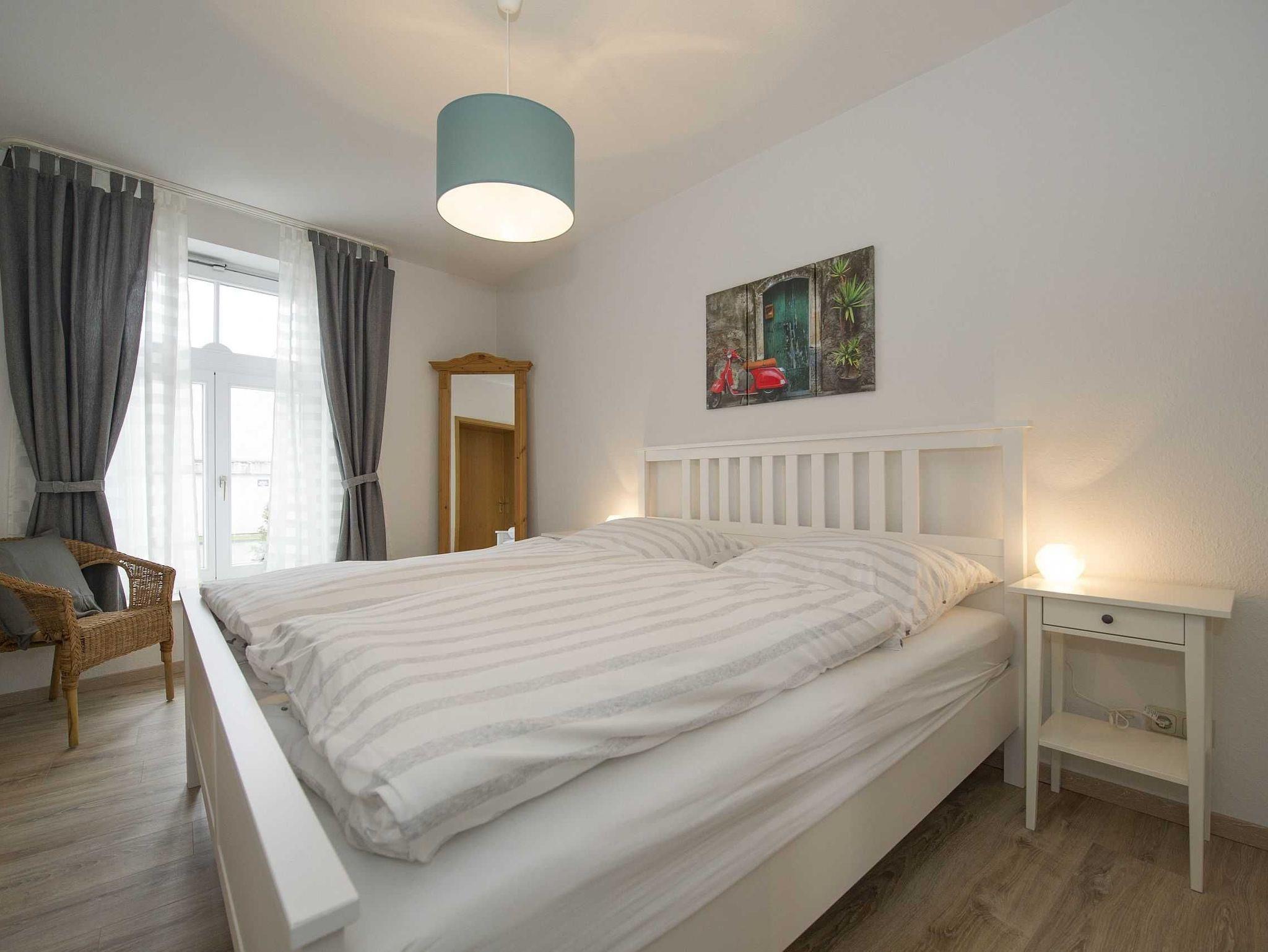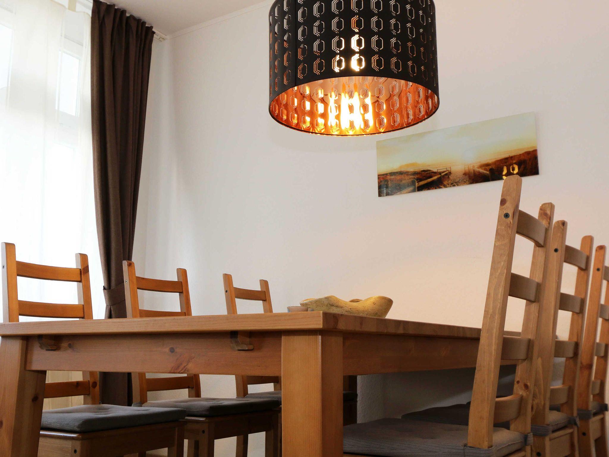 Fühlen Sie sich wie zu Hause in der Villa Minna! Die Nichtraucher-Ferienwohnung ist mit viel Liebe zum Detail eingerichtet worden. Sie wohnen in einer großzügigen 3-Zimmer-Wohnung mit einer Größe von ca. 88 qm. Die Wohnung ?Meine Minna? befindet sich im Hochparterre der denkmalgeschützten Villa und bietet für 2 bis 6 Personen Platz. Die Wohnräume sind Allergiker Freundlich mit Laminat ausgelegt, Bad und Küche sind hell gefliest. Die separate Küche ist mit einer kompletten Einbauküche ausgestattet. Neben einem Herd mit Ceranfeld, Geschirrspüler, Kühlschrank mit Gefrierfach und einer Mikrowelle finden Sie eine Kaffeemaschine, Senseo Padmaschine, Toaster und Wasserkocher sowie alle anderen Dinge, die Sie zum Kochen benötigen. Im Wohnzimmer mit der gemütlichen Couch, die ausgezogen 2 Schlafplätze für die 5. und 6. Person bietet (1,30m x 2,00m), finden Sie vor den großen lichtgebenden Balkonfenstern den großzügigen Essbereich für 6 Personen. Das Wohnzimmer bietet neben einem großen Smart-TV (43 Zoll, Kabelfernsehen) auch eine Heimkinoanlage mit Bluetooth-Funktion, auf der Sie auch Ihre DVDs und Blu-Ray-Discs abspielen können. Auch auf einen Internetanschluss müssen Sie nicht verzichten. Dieser steht Ihnen für die Dauer Ihres Aufenthaltes über WLAN kostenlos zur Verfügung! Der große Balkon (Ost) mit einer Fläche von ca. 15 qm schließt sich an das Wohnzimmer an und lädt zum Verweilen bei einem Glas Wein ein. Das 1. Schlafzimmer ist mit einem Doppelbett (1,80 m x 2,00 m), verstellbaren Lattenrosten, Nachttischablagen Kleiderschrank und einem weiteren LCD-Fernseher ausgestattet. Das 2. Schlafzimmer hat zwei Einzelbetten (0,90 m x 2,00 m), Nachttischablagen sowie einen weiteren Kleiderschrank. Für unsere kleinen Gäste stehen kostenlos 1x Hochstuhl und 1x Kinderreisebett (ohne Bett Inlett und ohne Matratze) zur Verfügung. Für den guten Schlaf sorgen Verdunklungsrollos. Das hell geflieste Bad verfügt neben einer Badewanne auch über eine separate Dusche, Fön, einem Waschtisch mit Spiegelschrank sowie einem WC. Eine Gemeinschaftswaschmaschine und Trockner können Sie im Keller des Hauses gegen eine Extragebühr nutzen. Ihr PKW-Stellplatz (Nr. 3) können Sie auf dem Hof der Villa Minna abstellen. Ihre Fahrräder stellen Sie bequem im Keller des Hauses ab, um von hier Ihre Unternehmungen auf 2 Rädern zu starten. Die Erstausstattung eines Wäschepaketes (komplette Bettwäsche, 1 Duschhandtuch, 2 kleine Handtücher) können Sie bis 14 Tage vor Anreise gegen einen Aufpreis dazu buchen oder durch eigene ergänzen. Ab 2 gebuchten Paketen erhalten Sie einmalig 1 Geschirrhandtuch und 1 Duschvorleger dazu. Bitte lassen Sie Ihre Haustiere zu Hause, diese sind aus hygienischen Gründen nicht erlaubt.