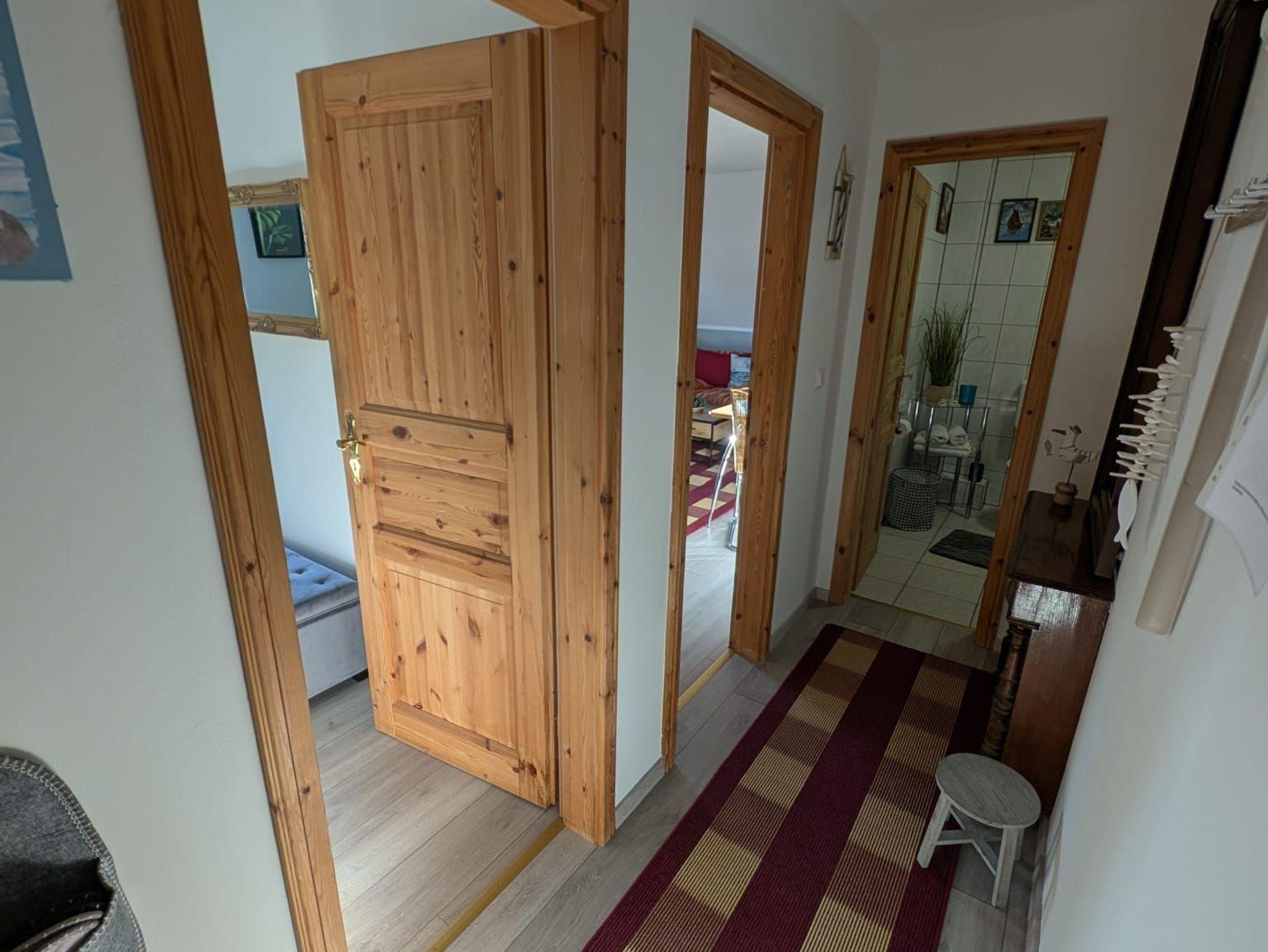 Unsere Ferienwohnung Merle ist eine 45m² Dachgeschosswohnung bestehend aus einem Schlafzimmer,einem Wohnzimmer mit ausziehbarer Couch.Eine SMART-TV,einer voll ausgestatten Küche.