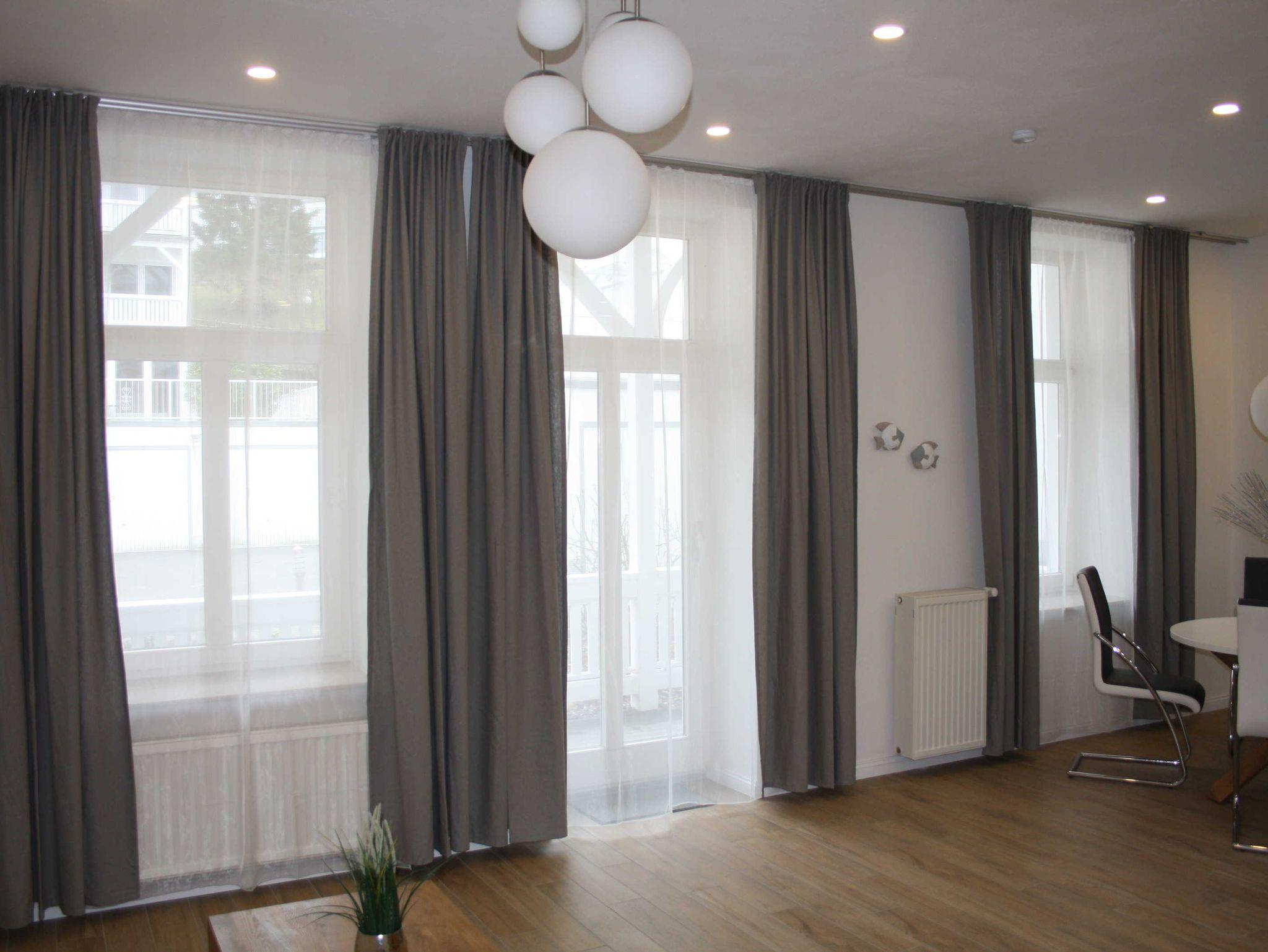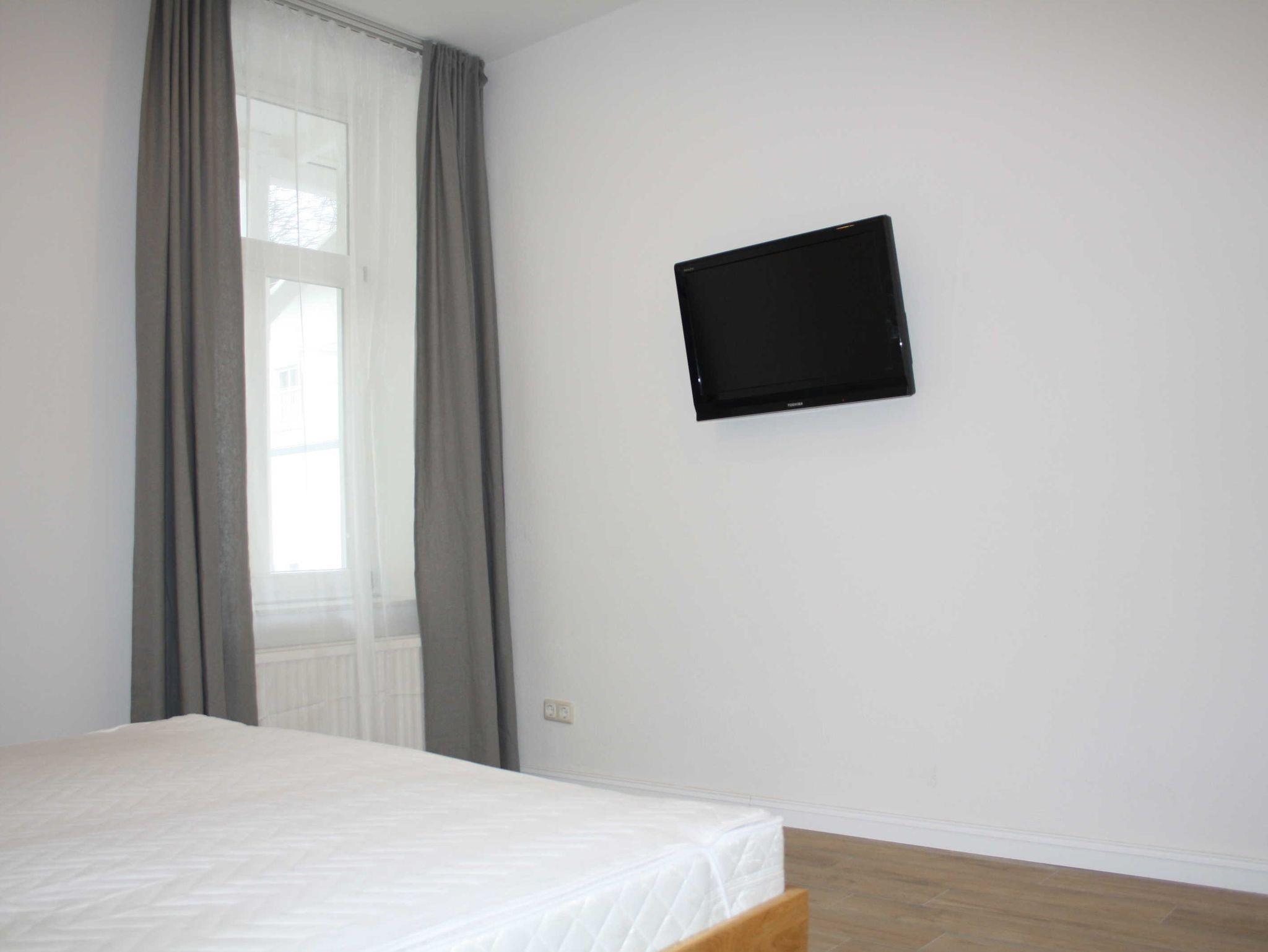 Die Anfang 2016 komplett sanierte und neu eingerichtete 2-Raum-Fewo befindet sich im Erdgeschoß. Sie ist ca. 69 qm groß und für 5 Personen ausgestattet. Die Fewo besteht aus aus einem Wohnzimmer mit Sitzecke (Doppelschlafcouch) und TV und einer offenen Küche - komplett eingerichtet mit Esstisch, Kühl- und Gefrierkombi, Geschirrspüler, Ceranfeld, Backofen, Kaffeemaschine, Wasserkocher und komplett Geschirr etc. Das Schlafzimmer ist ausgestattet mit Doppelbett, einem großen Kleiderschrank und TV. Für die 5. Person ist ein Klappbett vorhanden, welches ins Schlafzimmer gestellt werden kann. Vor dem Wohnzimmer ist ein großer ebenerdiger Ballkon mit Sitzmöglichkeiten. Das Bad ist mit einer großen Dusche, Waschbecken, WC und Waschmaschine bestückt.