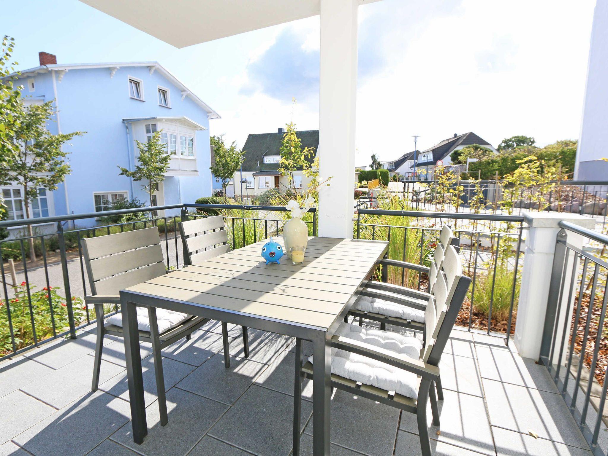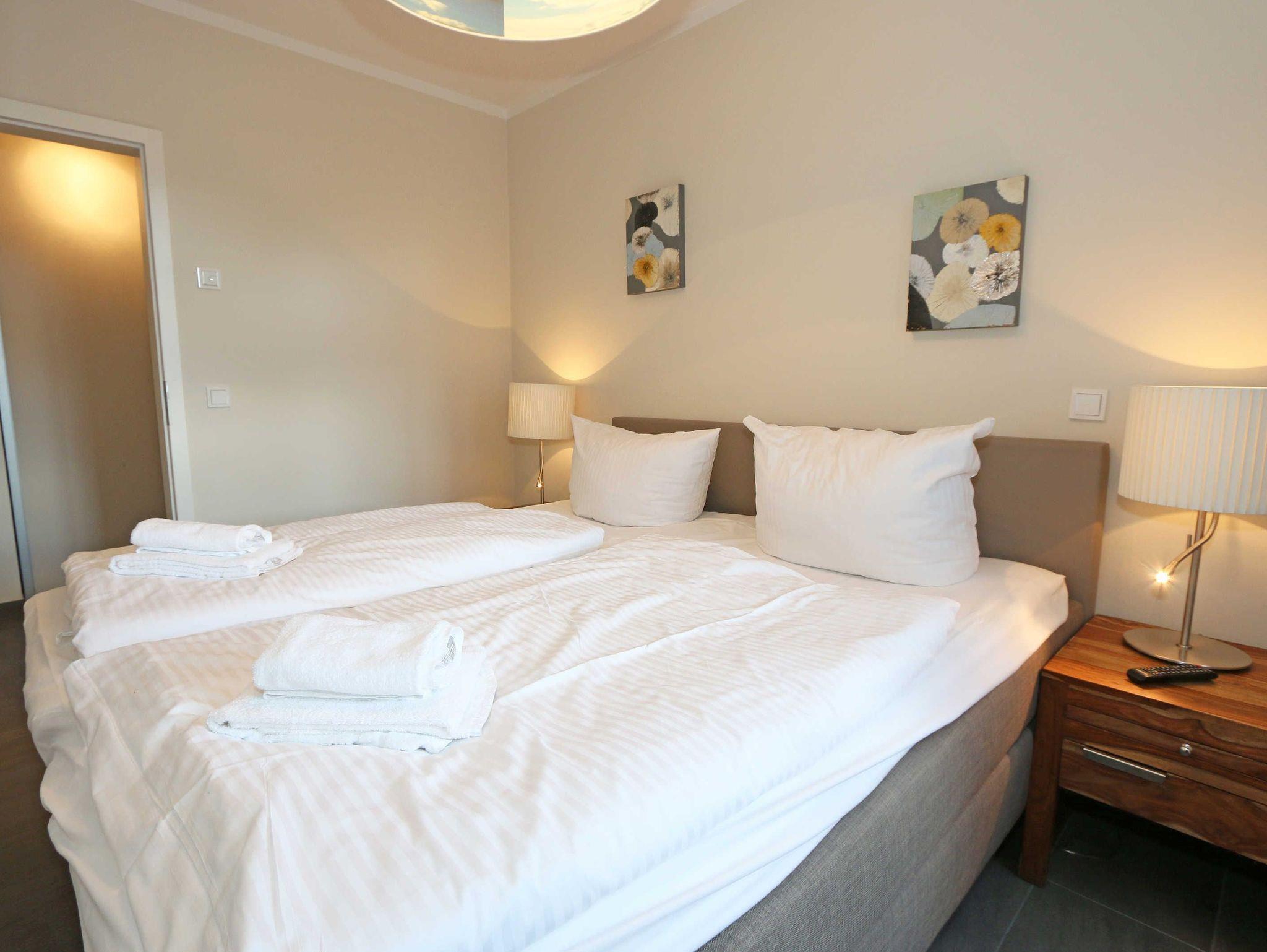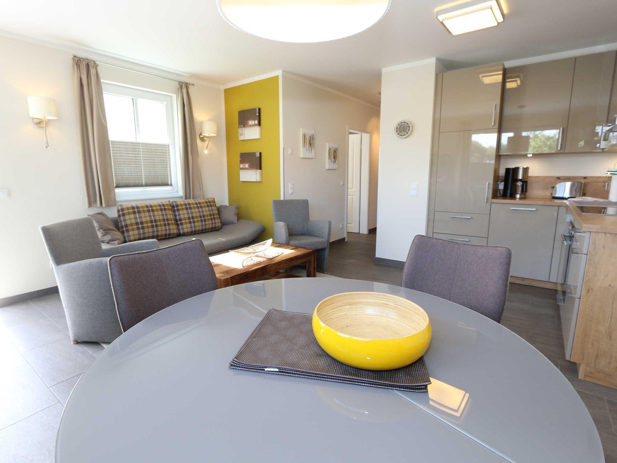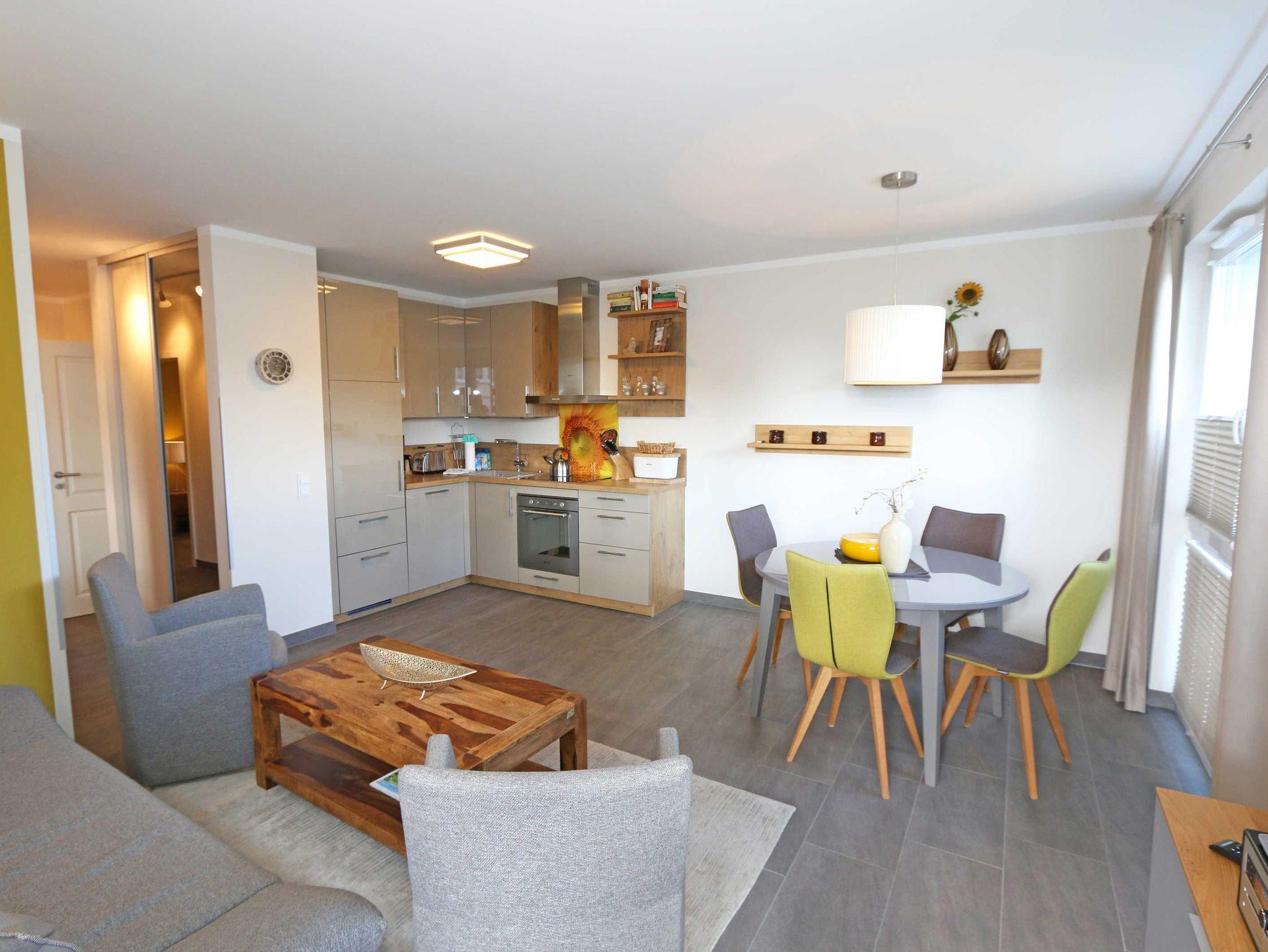 Die Wohnung Nr. 1 in der Villa Anni ist eine komfortable, ca. 60qm große und stilvoll eingerichtete Nichtraucherferienwohnung im Erdgeschoss. Sie bietet mit Ihren 2 Schlafzimmern ausreichend Platz für max. 4 Erwachsene + 1 Kleinkind bis 3 Jahre im Kinderreisebett. Der kombinierte Wohn-/Koch- und Essbereich mit der modernen und integrierten Küchenzeile lässt mit Induktionsfeld, Backofen, Geschirrspüler, Kühlschrank mit Gefrierfach, Kaffeemaschine, Wasserkocher, Toaster und diversen Küchenutensilien keine Wünsche offen. Ein großzügiger Essbereich fügt sich der Küchenzeile an. Der Esstisch ist ausziehbar. Der offene Wohnbereich verfügt über eine gemütliche Couch mit Couchtisch, 2 Leselampen (integriert in den Wandleuchten bei der Couch), ein Smart-TV, Blu-Ray Player sowie eine Mini-Stereo-Anlage von Sonoro mit USB-Port, Bluetooth und DAB-Radio. Auch auf einen Internetanschluss (WLAN) müssen Sie in Ihrem Urlaub nicht verzichten. Dieser ist für Sie inklusive. Eine Auswahl an Gesellschaftsspielen und Urlaubslektüre sorgt für gelungene Abwechslung. Die nach Südost ausgerichtete, überdachte und bestuhlte Terrasse mit Sonnenschirm ist direkt vom Wohnbereich aus zu erreichen. Das erste Schlafzimmer verfügt über ein Boxspringbett (1,80m x 2,00m), ein Smart-TV, Nachttischschränken und einen Kleiderschrank. Das zweite Schlafzimmer verfügt über zwei einzelne Boxspringbetten (0,90m x 2,00m), Nachttischschränken, Flachbild-TV und einen Kleiderschrank. Die Betten sind hier mit Rollen versehen, so könnten Sie die Betten auch zusammenschieben. Alle Räumlichkeiten sind mit Sonnenabweisenden Verdunklungsrollos sowie Insektenschutzgitter ausgestattet. Das Bad verfügt über eine ebenerdige und geräumige Regen-Dusche, einen Waschplatz, ein WC, einen Fön, einen Kosmetikspiegel sowie einen Handtuchheizkörper. Eine Fußbodenheizung sorgt an kühleren Tagen für eine angenehme Wärme. Ein Bügelbrett, ein Bügeleisen, ein Wäscheständer sowie ein Staubsauger stehen Ihnen zur Verfügung. Ihr eigener PKW-Stellplatz (Nr.01) befindet sich in der Tiefgarage (Einfahrtshöhe: 2,00 m) des Hauses. Für Ihre mitgebrachten oder geliehenen Fahrräder steht Ihnen der Stellplatz 9 zusätzlich zur Verfügung. Haustiere sind in der Wohnung gegen eine Gebühr erlaubt. Die Erstausstattung eines Wäschepaketes (komplette Bettwäsche, 1 Duschhandtuch, 2 kleine Handtücher) können Sie bis 14 Tage vor Anreise gegen einen Aufpreis dazu buchen oder durch eigene ergänzen. Ab 2 gebuchten Paketen erhalten Sie einmalig 1 Geschirrhandtuch und 1 Duschvorleger dazu.