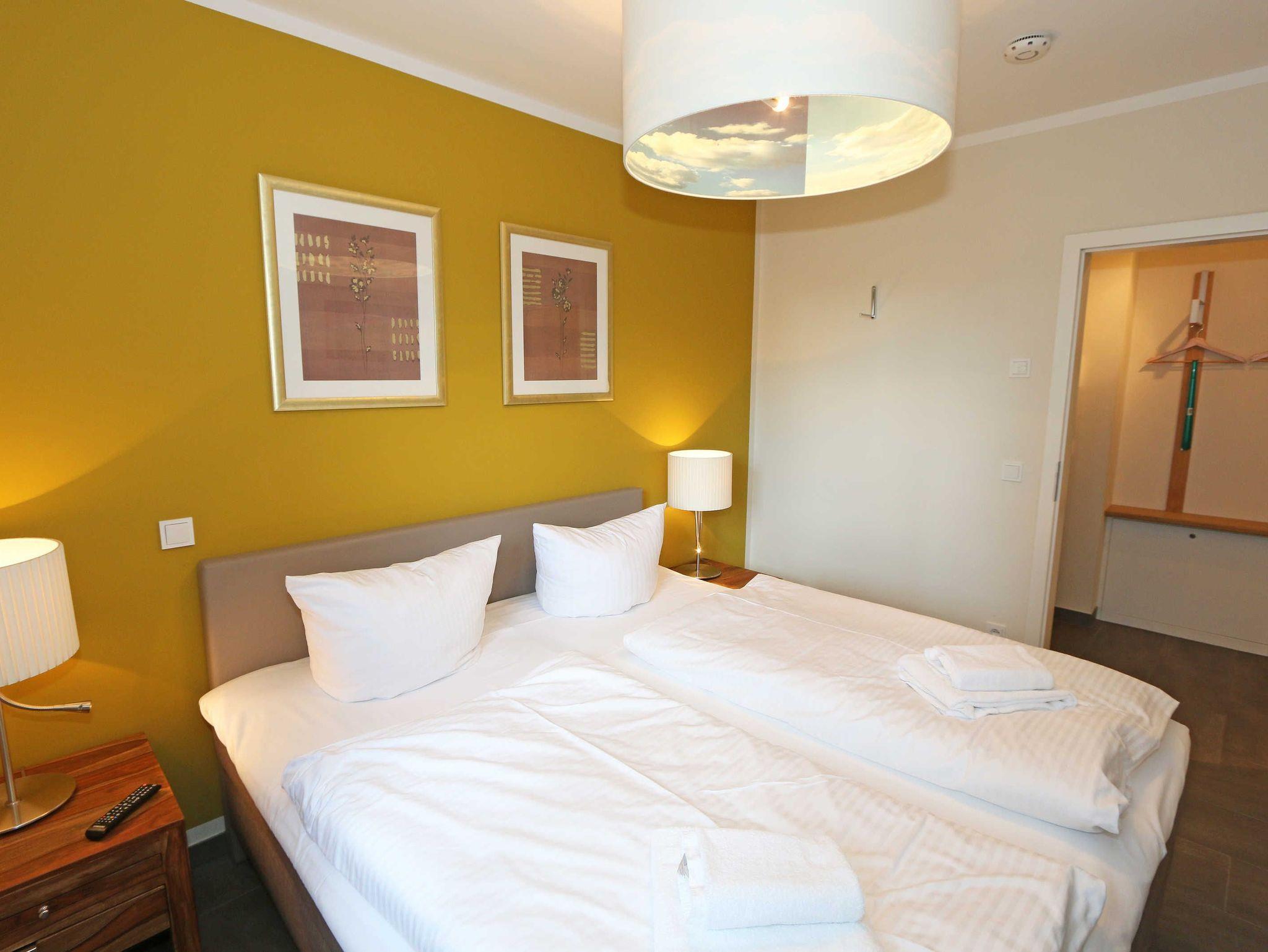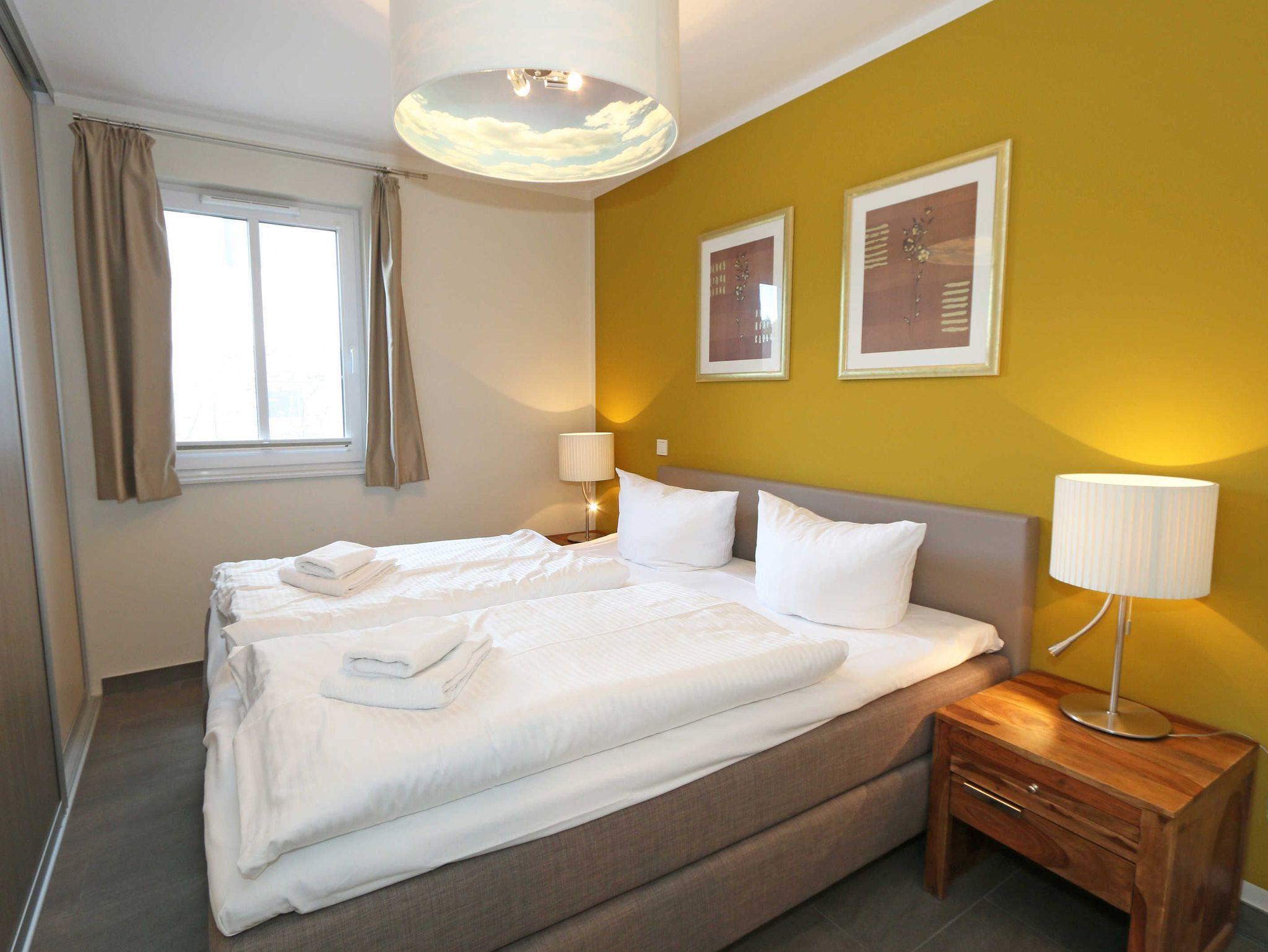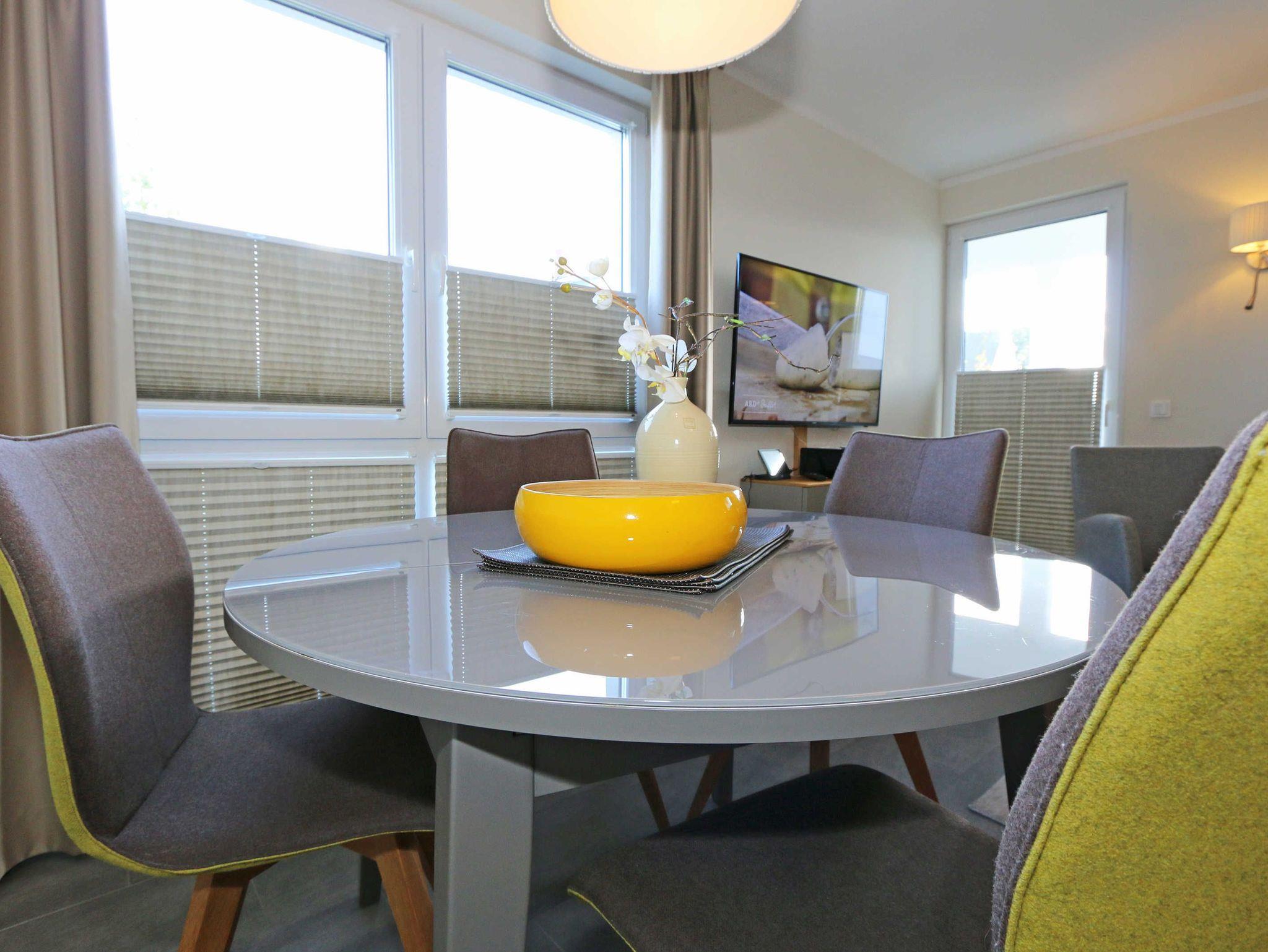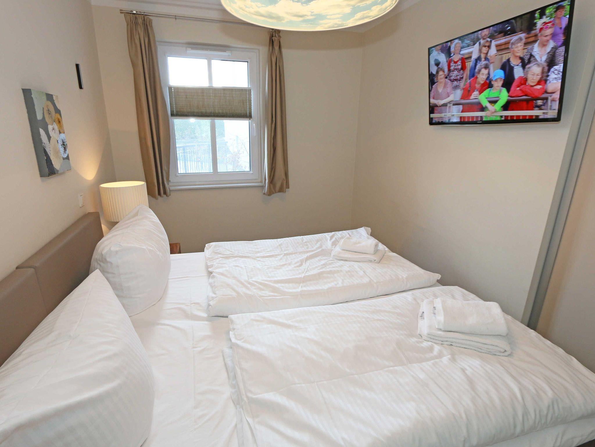 Die Wohnung Nr. 1 in der Villa Anni ist eine komfortable, ca. 60qm große und stilvoll eingerichtete Nichtraucherferienwohnung im Erdgeschoss. Sie bietet mit Ihren 2 Schlafzimmern ausreichend Platz für max. 4 Erwachsene + 1 Kleinkind bis 3 Jahre im Kinderreisebett. Der kombinierte Wohn-/Koch- und Essbereich mit der modernen und integrierten Küchenzeile lässt mit Induktionsfeld, Backofen, Geschirrspüler, Kühlschrank mit Gefrierfach, Kaffeemaschine, Wasserkocher, Toaster und diversen Küchenutensilien keine Wünsche offen. Ein großzügiger Essbereich fügt sich der Küchenzeile an. Der Esstisch ist ausziehbar. Der offene Wohnbereich verfügt über eine gemütliche Couch mit Couchtisch, 2 Leselampen (integriert in den Wandleuchten bei der Couch), ein Smart-TV, Blu-Ray Player sowie eine Mini-Stereo-Anlage von Sonoro mit USB-Port, Bluetooth und DAB-Radio. Auch auf einen Internetanschluss (WLAN) müssen Sie in Ihrem Urlaub nicht verzichten. Dieser ist für Sie inklusive. Eine Auswahl an Gesellschaftsspielen und Urlaubslektüre sorgt für gelungene Abwechslung. Die nach Südost ausgerichtete, überdachte und bestuhlte Terrasse mit Sonnenschirm ist direkt vom Wohnbereich aus zu erreichen. Das erste Schlafzimmer verfügt über ein Boxspringbett (1,80m x 2,00m), ein Smart-TV, Nachttischschränken und einen Kleiderschrank. Das zweite Schlafzimmer verfügt über zwei einzelne Boxspringbetten (0,90m x 2,00m), Nachttischschränken, Flachbild-TV und einen Kleiderschrank. Die Betten sind hier mit Rollen versehen, so könnten Sie die Betten auch zusammenschieben. Alle Räumlichkeiten sind mit Sonnenabweisenden Verdunklungsrollos sowie Insektenschutzgitter ausgestattet. Das Bad verfügt über eine ebenerdige und geräumige Regen-Dusche, einen Waschplatz, ein WC, einen Fön, einen Kosmetikspiegel sowie einen Handtuchheizkörper. Eine Fußbodenheizung sorgt an kühleren Tagen für eine angenehme Wärme. Ein Bügelbrett, ein Bügeleisen, ein Wäscheständer sowie ein Staubsauger stehen Ihnen zur Verfügung. Ihr eigener PKW-Stellplatz (Nr.01) befindet sich in der Tiefgarage (Einfahrtshöhe: 2,00 m) des Hauses. Für Ihre mitgebrachten oder geliehenen Fahrräder steht Ihnen der Stellplatz 9 zusätzlich zur Verfügung. Haustiere sind in der Wohnung gegen eine Gebühr erlaubt. Die Erstausstattung eines Wäschepaketes (komplette Bettwäsche, 1 Duschhandtuch, 2 kleine Handtücher) können Sie bis 14 Tage vor Anreise gegen einen Aufpreis dazu buchen oder durch eigene ergänzen. Ab 2 gebuchten Paketen erhalten Sie einmalig 1 Geschirrhandtuch und 1 Duschvorleger dazu.