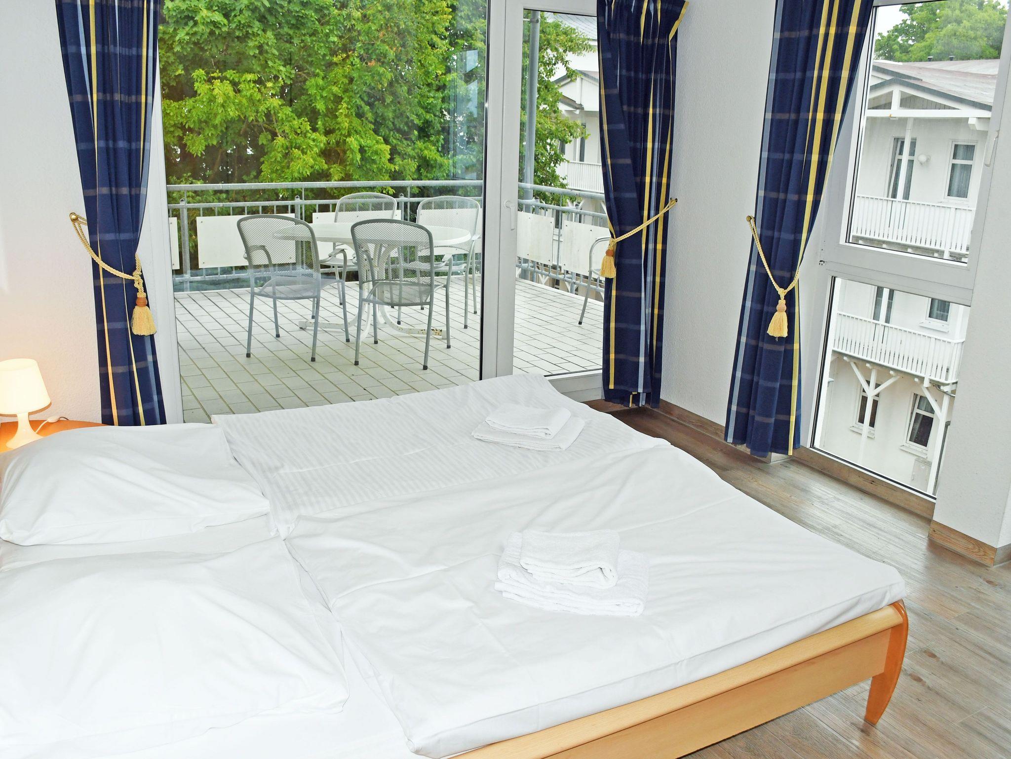 Der schöne Balkon mit Gartenmöbeln lädt zu gemütlichen Stunden ein. Hier können Sie die Abende bei einem Glas Wein ausklingen lassen und jederzeit die gute Ostseeluft und Sonne auf Rügen genießen.