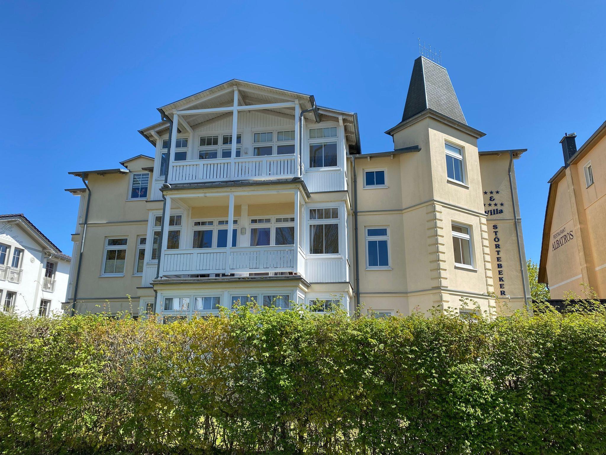 Die Villa Störtebeker befindet sich in ruhiger und schöner Lage, direkt am Hochufer des Ostseebad Göhren´s. Die ruhige Seitenstraße führt auf die Waldpromenade von Göhren. Von hier haben Sie einen wunderbaren Ausblick auf die Ostsee. Sie erreichen in ca. 5 Minuten den Strand mit seiner Seebrücke, die Kurpromenade sowie den Kleinbahnhof des Rasenden Rolands. Verschiedene Einkaufsmöglichkeiten, Restaurants und das Kurzentrum sind mit wenigen Schritten zu erreichen.