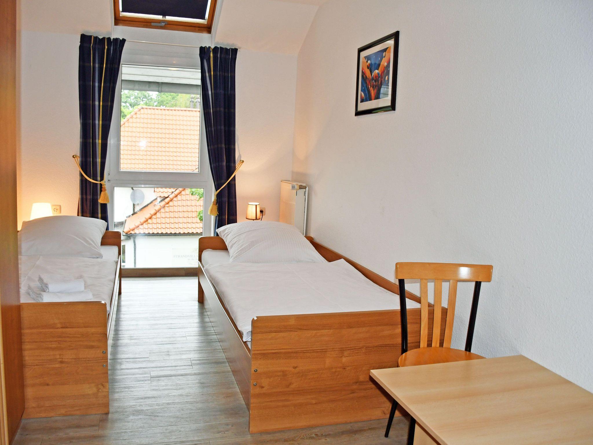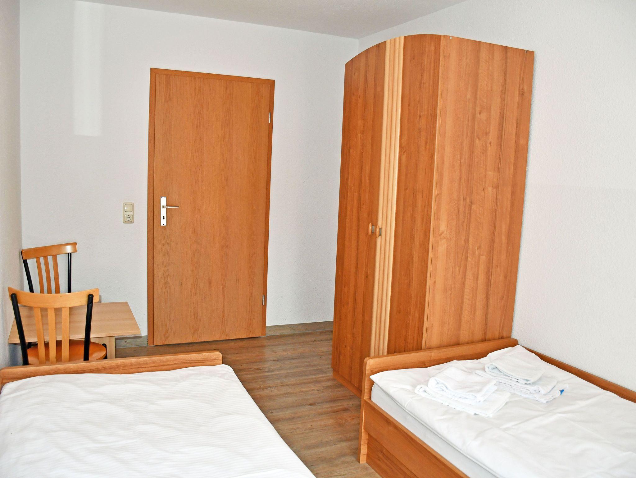 Schlafzimmer mit 2 getrennt stehenden Betten (90 x 200 cm) und kleinem Kleiderschrank