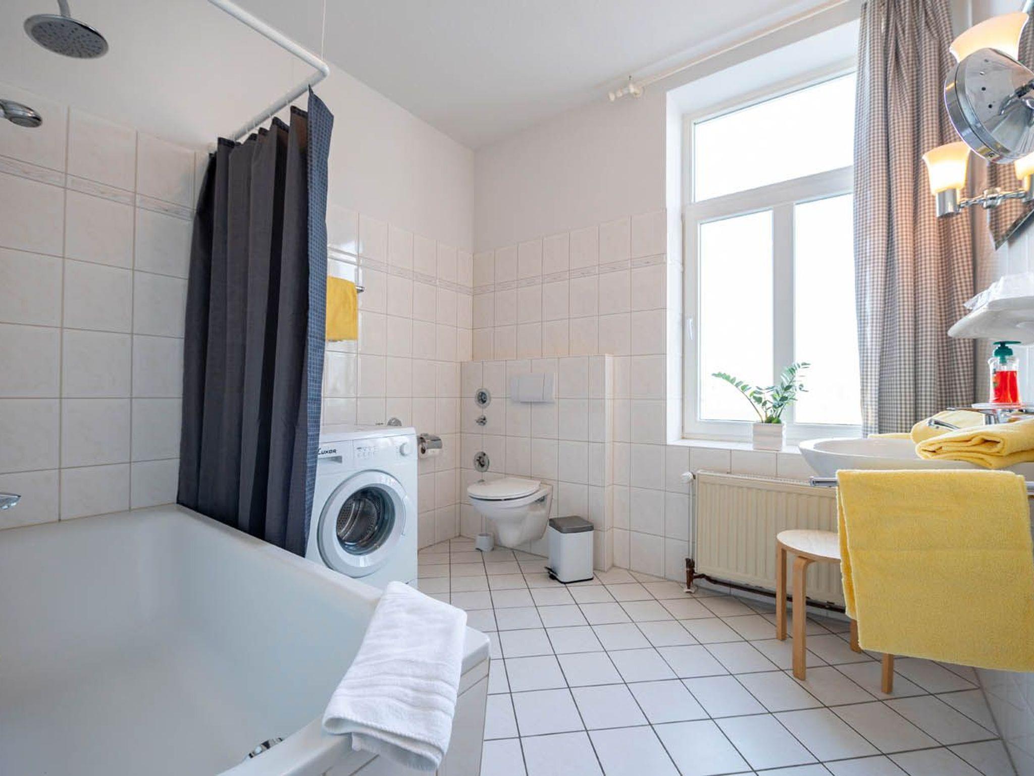 * Bad mit Badewanne mit Duschfunktion, WC, Föhn