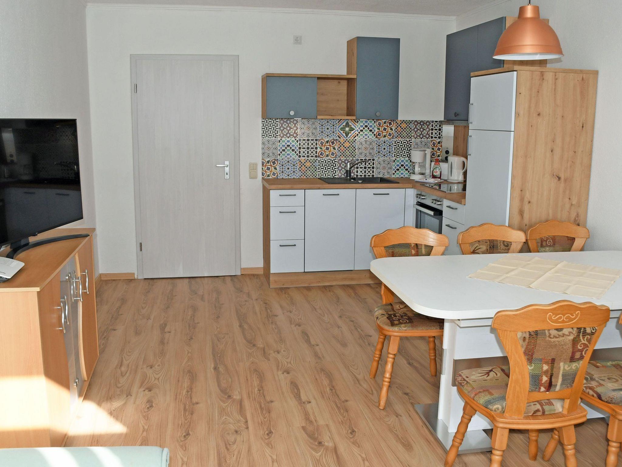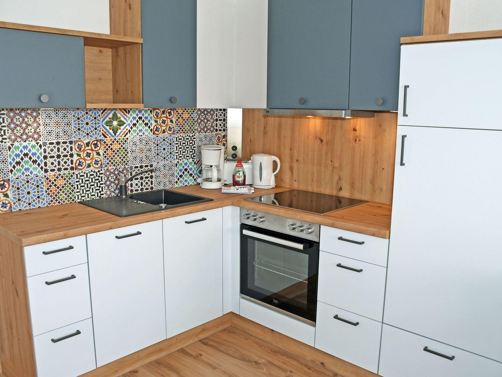 Hier steht Ihnen eine sehr schöne und hochwertig ausgestattete 3-Raum-Ferienwohnungen (58 qm, Wohnzimmer, 2 Schlafzimmer, Küchenzeile, Flur, max. 4 Erw. und ein Kind im Kinderreisebett, Bad mit Dusche/WC) zur Verfügung.