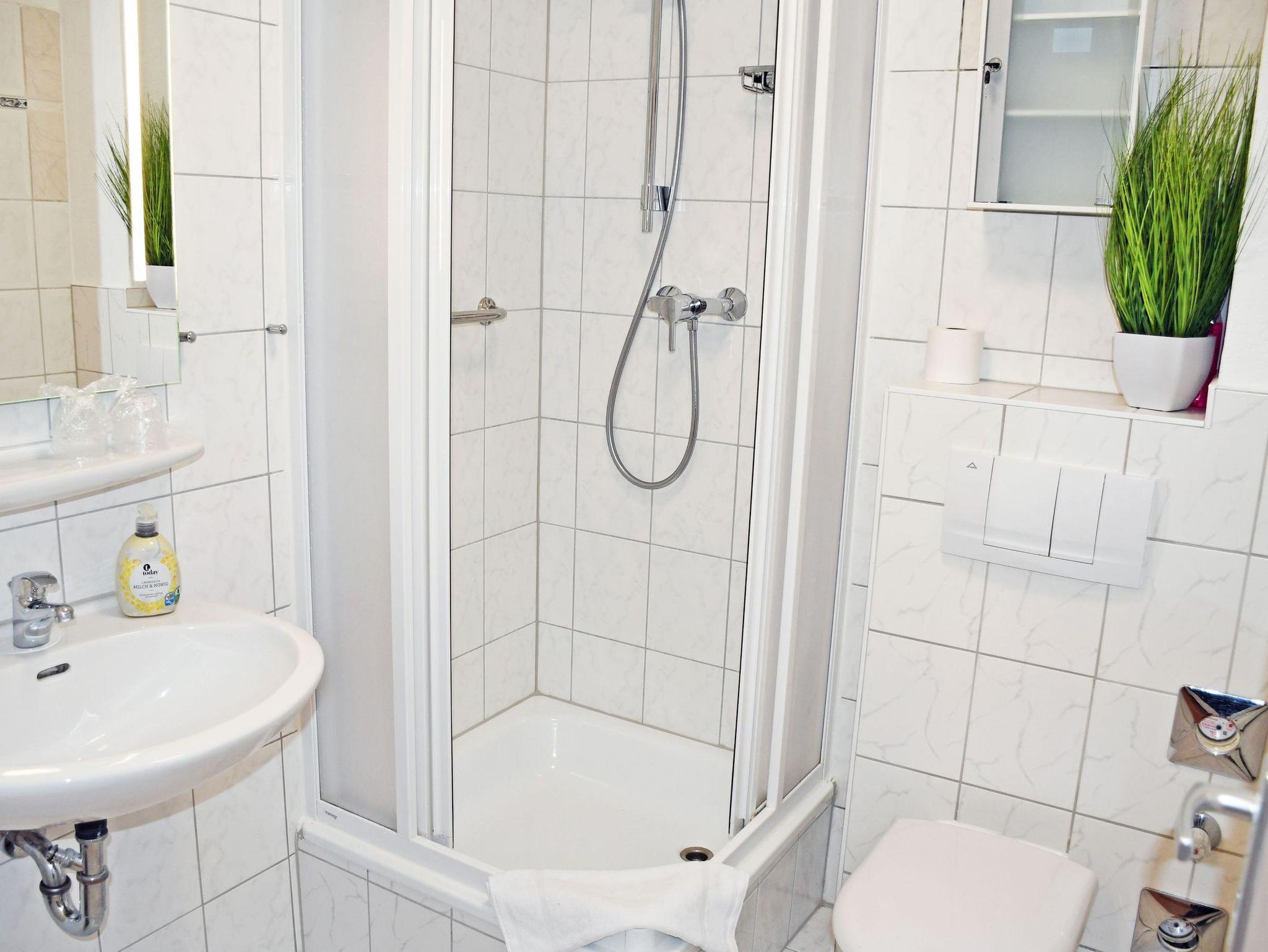 Bad mit Dusche, WC und Föhn
