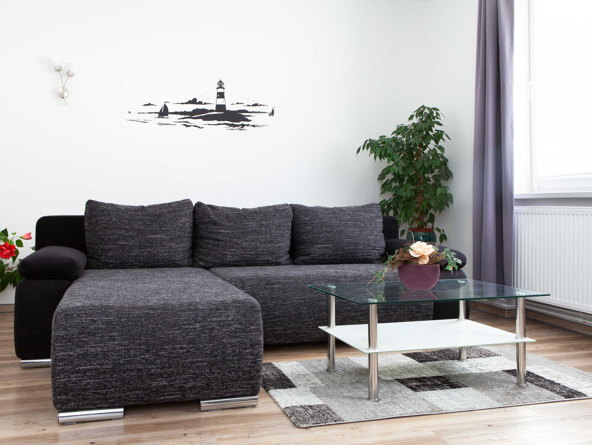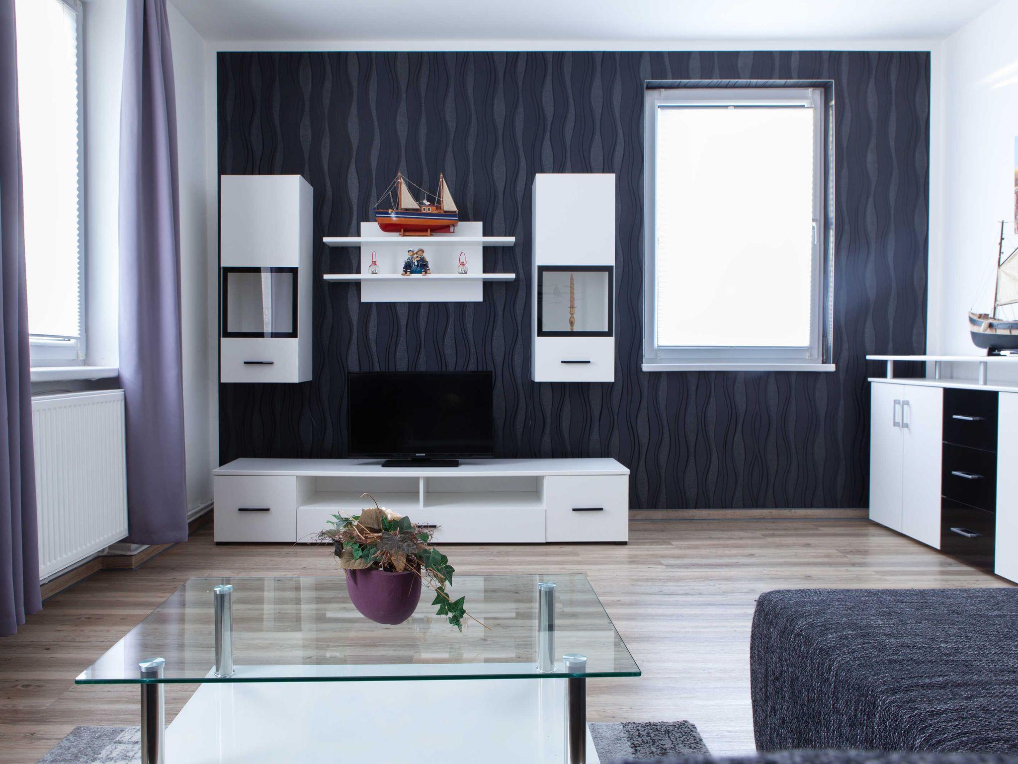 Die Ferienwohnung besteht aus einem Wohnzimmer mit Schlafcouch und TV, einem Schlafzimmer mit Doppelbett (180x200; getrennte Matratzen) und Kleiderschrank, einer separaten Küche mit Ceranherd, Backofen, Geschirrspüler, Kaffeemaschine, Essbereich mit Esstisch sowie ein Badezimmer mit Dusche und WC.