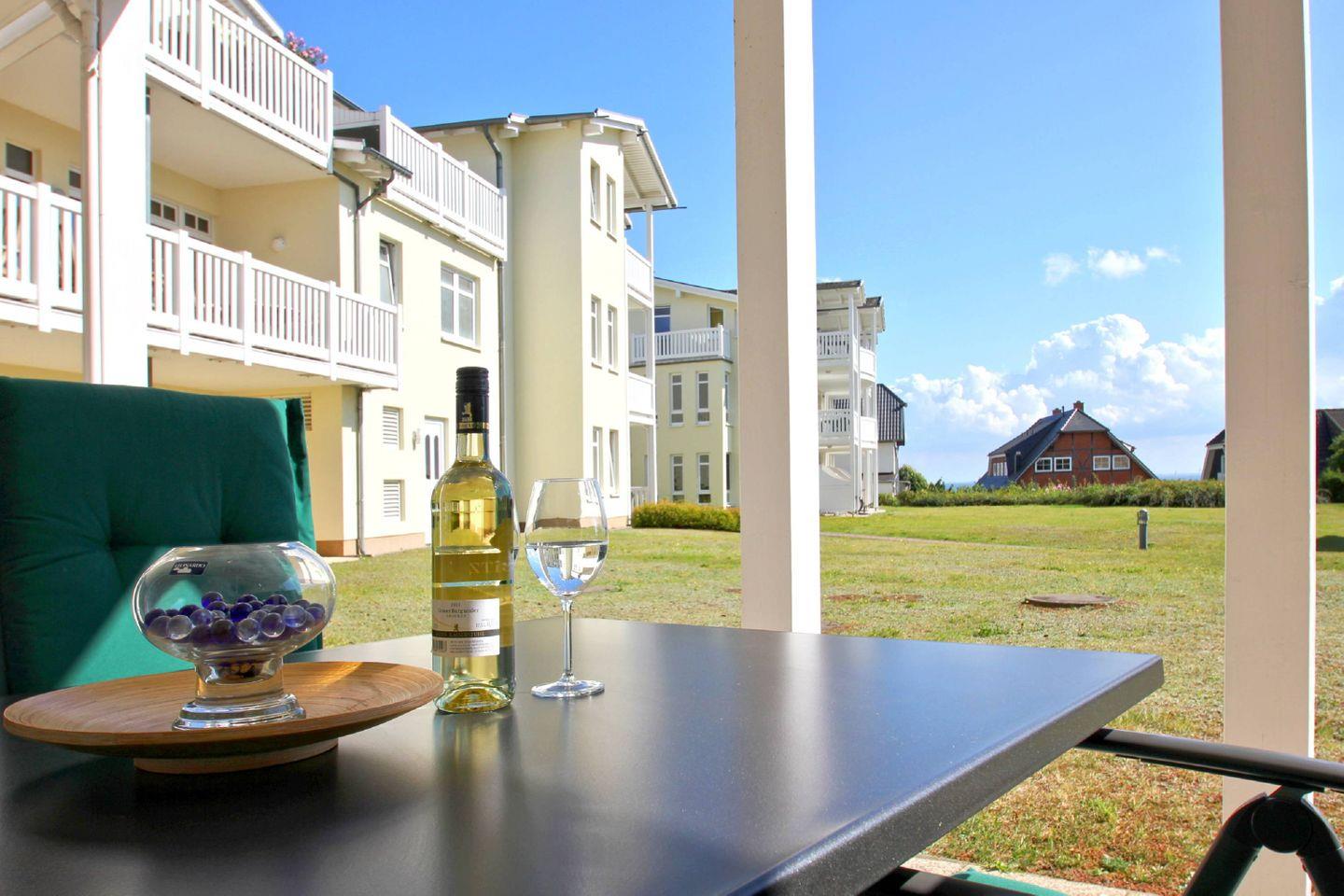 Terrasse, gratis Nutzung vom AHOI Erlebnisbad und Sauna - Meeresblick FeWo 30