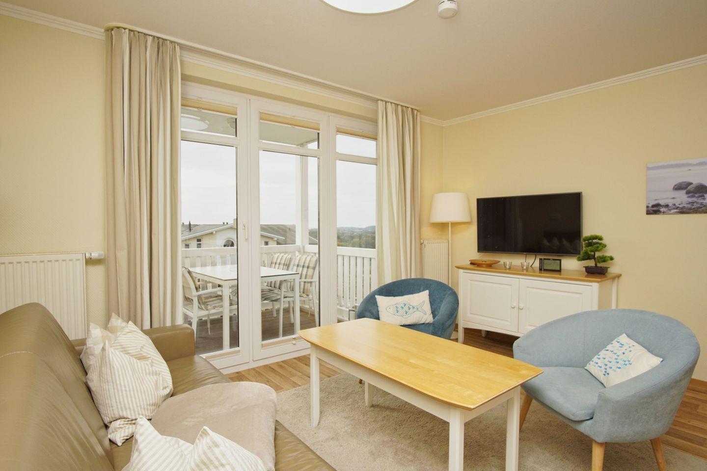 Die 1-, 2- und 3- Raum Ferienwohnungen in den Meeresblick Residenzen sind nicht nur großzügig geschnitten und komfortabel eingerichtet, die meisten verfügen darüber hinaus über eine traumhafte Aussicht über Südost Rügen und die weite Ostsee. Kostenloses WLan ist in dieser Residenzanlage selbstverständlich. Pro Ferienwohnung steht Ihnen ein PKW-Stellplatz (kostenfrei) zur Verfügung.