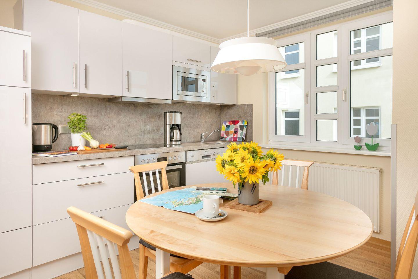 KÜCHE // Küchenzeile, Ceranfeld, Spülmaschine, Kühlschrank mit Gefrierfach, Backofen, Mikrowelle, Toaster, Wasserkocher, Kaffeemaschine, reichlich Besteck, Geschirr und Küchenutensilien ++