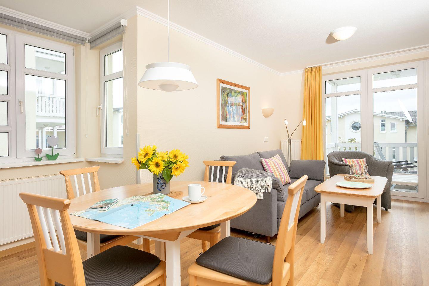 Die 1-, 2- und 3- Raum Ferienwohnungen in den Meeresblick Residenzen sind nicht nur großzügig geschnitten und komfortabel eingerichtet, die meisten verfügen darüber hinaus über eine traumhafte Aussicht über Südost Rügen und die weite Ostsee. Kostenloses WLan ist in dieser Residenzanlage selbstverständlich. Pro Ferienwohnung steht Ihnen ein PKW-Stellplatz (kostenfrei) zur Verfügung.