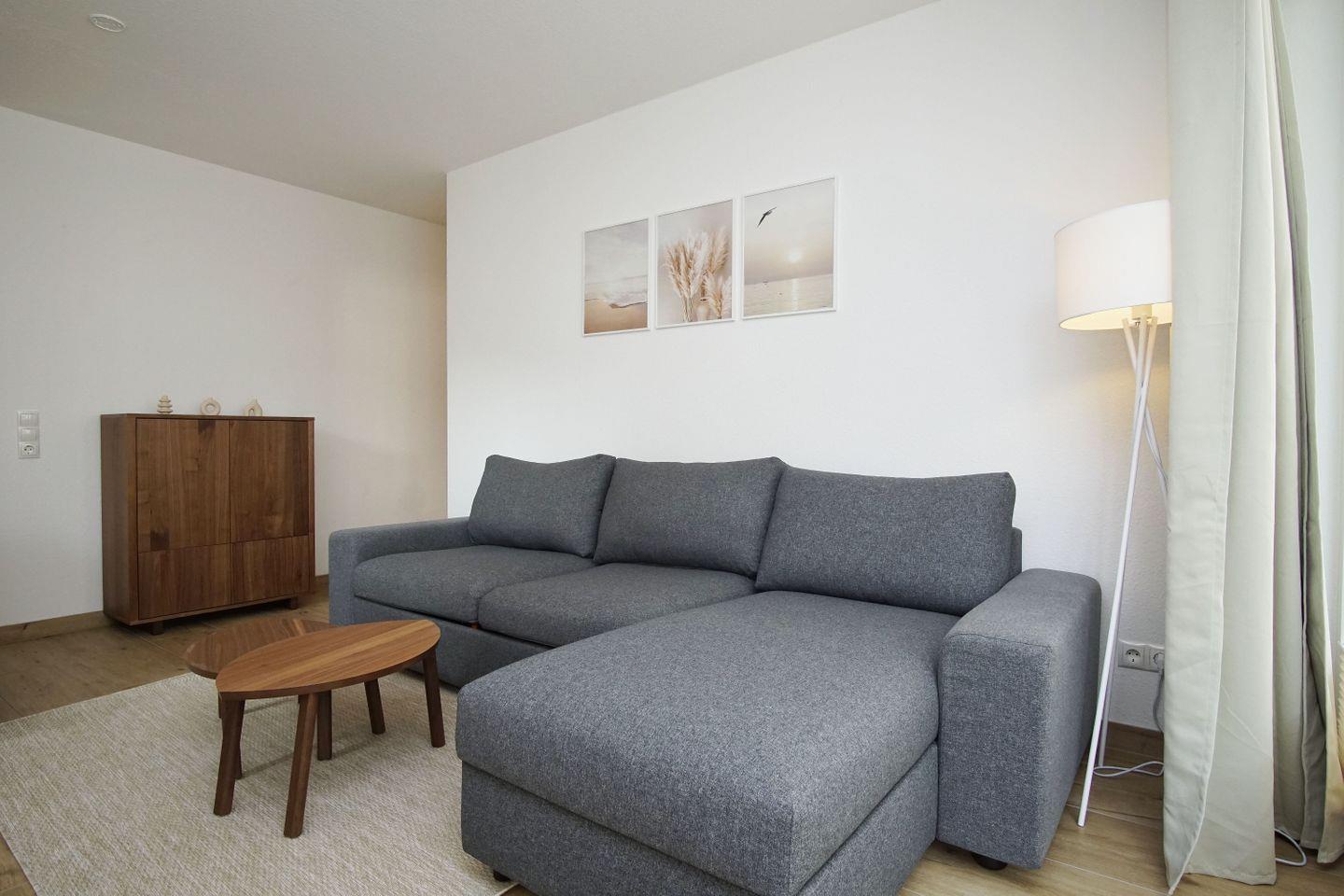 WOHNEN // Wohnraum mit Essbereich, Sitzgarnitur mit bequemer Schlafcouch, Flachbild-TV ++