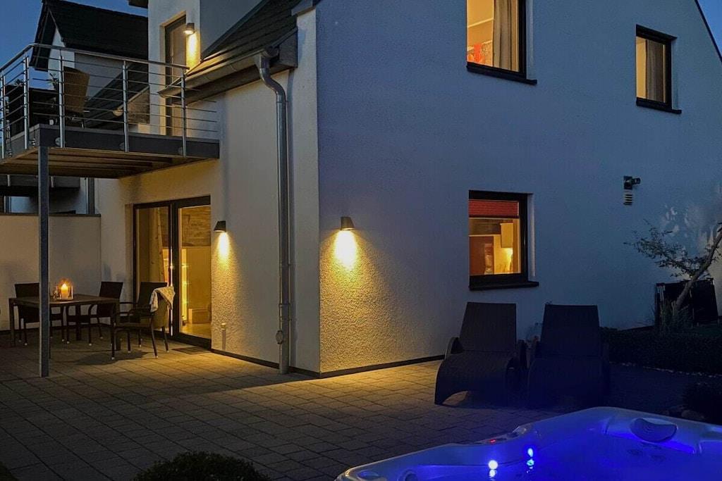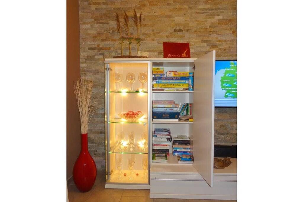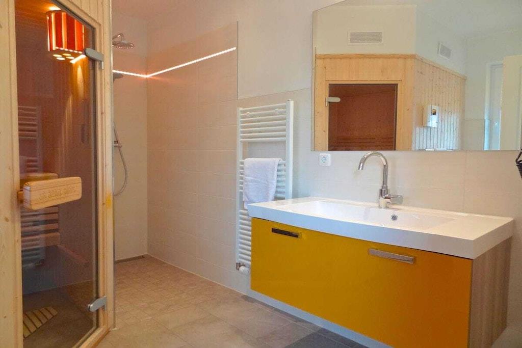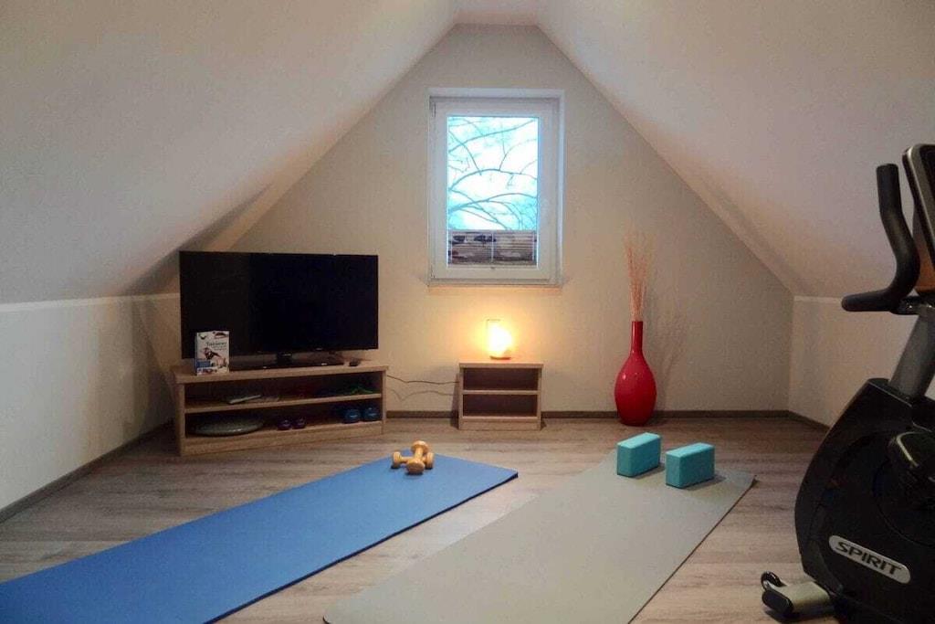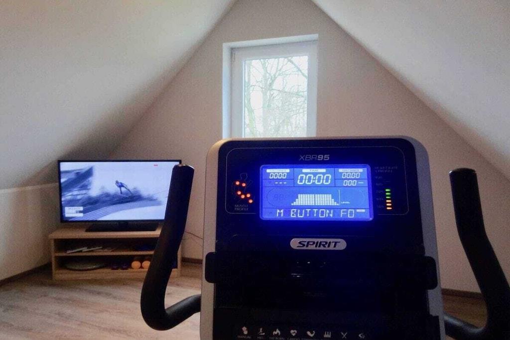 Stueetage: (entre(, , varme), Køkken(, , , kogeplade, elkedel, brødrister, kaffemaskine, ovn, mikrobølgeovn, opvaskemaskine , køleskab, fryser, varme, insektnet), stue / spisestue(, , bibliotek, Fjernsyn, spisebord, pejs, DVD-afspiller, DVD-afspiller, Blu-ray afspiller, radio, CD-afspiller, stereoanlæg, varme, barnestol, insektnet), badeværelse(, toilet, bruser, håndvask, varme, føntørrer, insektnet), loungerum(sauna)) På 1. etage: (soveværelse(, , , , dobbeltseng, Fjernsyn, Fjernsyn, radio, tremmeseng, varme, insektnet), soveværelse(, , , , dobbeltseng, Fjernsyn, Fjernsyn, radio, varme, insektnet), badeværelse(, toilet, radio, bruser, håndvask, varme, føntørrer, insektnet), pulterkammer(, vaskemaskine, strygebræt, strygejern, tørreskab)) På 2. etage: (loungemøbler(, Fjernsyn, insektnet)) , , , , pulterkammer(Haveskur), Internetadgang, Førstehjælp, vaskemaskine, balkon(havemøbler), varme, terrasse(, grill, havemøbler, solstole, swimmingpool), have(, Græsplæne, grill, hottub, havemøbler, solstole, Haveskur), parkering, trappegitter, strygebræt, strygejern, tørreskab