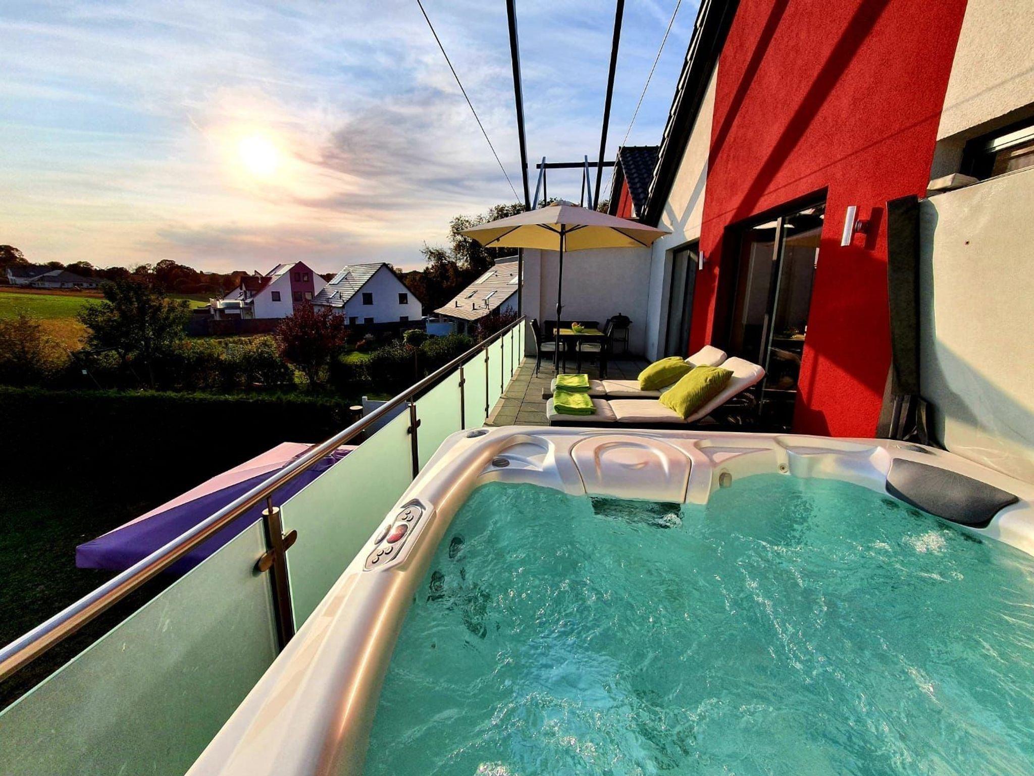 Der große Balkon bietet alles, was das Urlaubsherz begehrt: eine stilvolle Sitzecke für lange Sommerabende, komfortable Liegen zum Sonnenbaden, ein eigener Grill für kulinarische Highlights im Freien ? und als absolutes Highlight: ein beheizter Außen-Whirlpool für entspannte Stunden unter freiem Himmel.