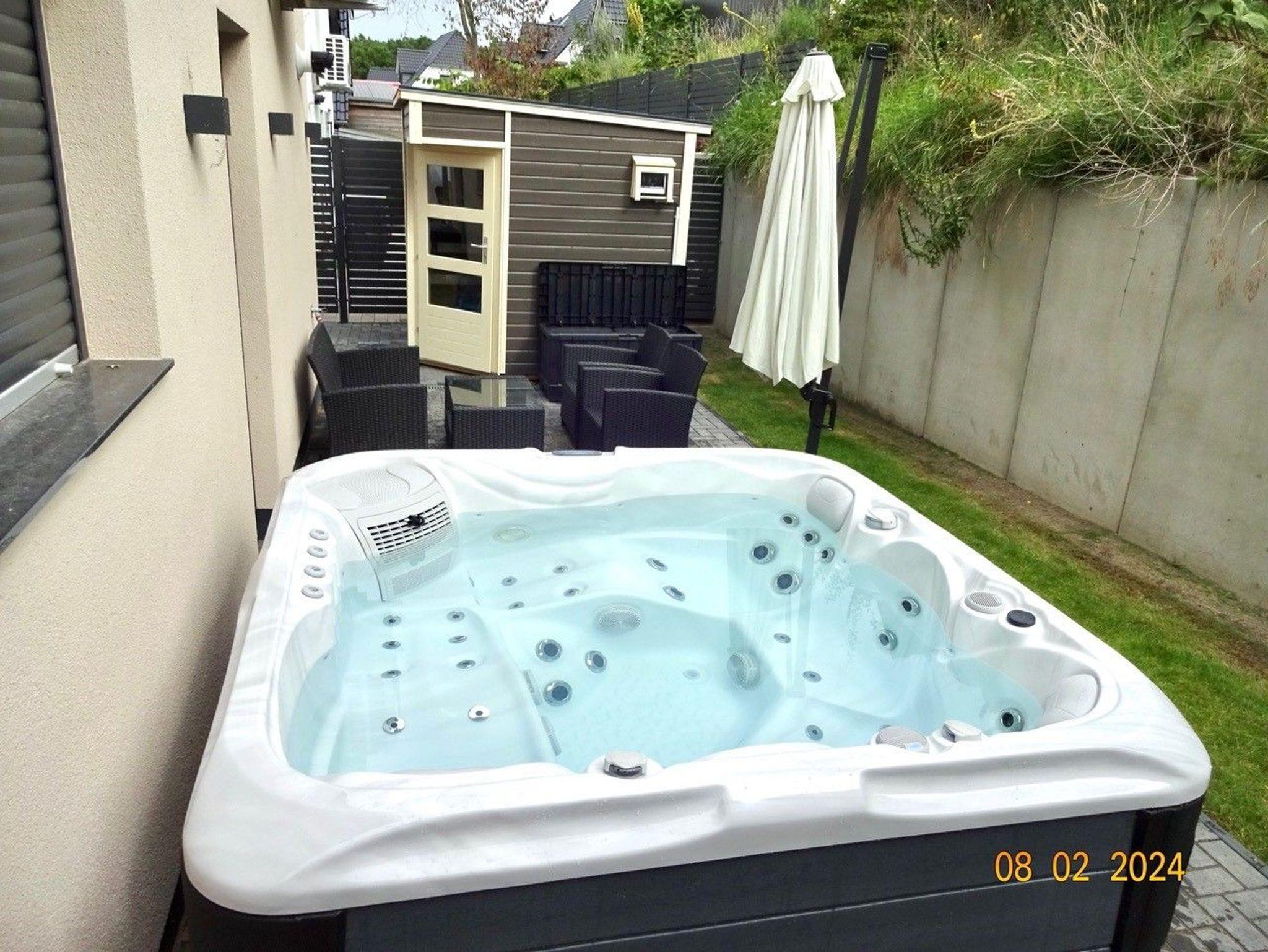 Der ganzjährig beheizte Außenwhirlpool mit 38 Grad Wassertemperatur und Hydromassagejets ist nur ein Highlight von vielen. In der Kombination Sauna, Gaskamin und Whirlpool wird Ihnen das Herz aufgehen.