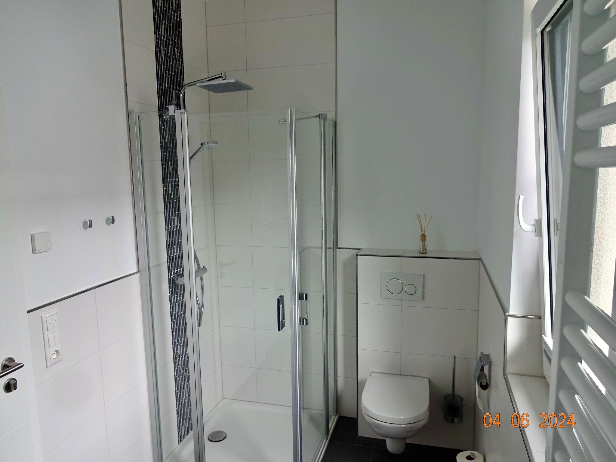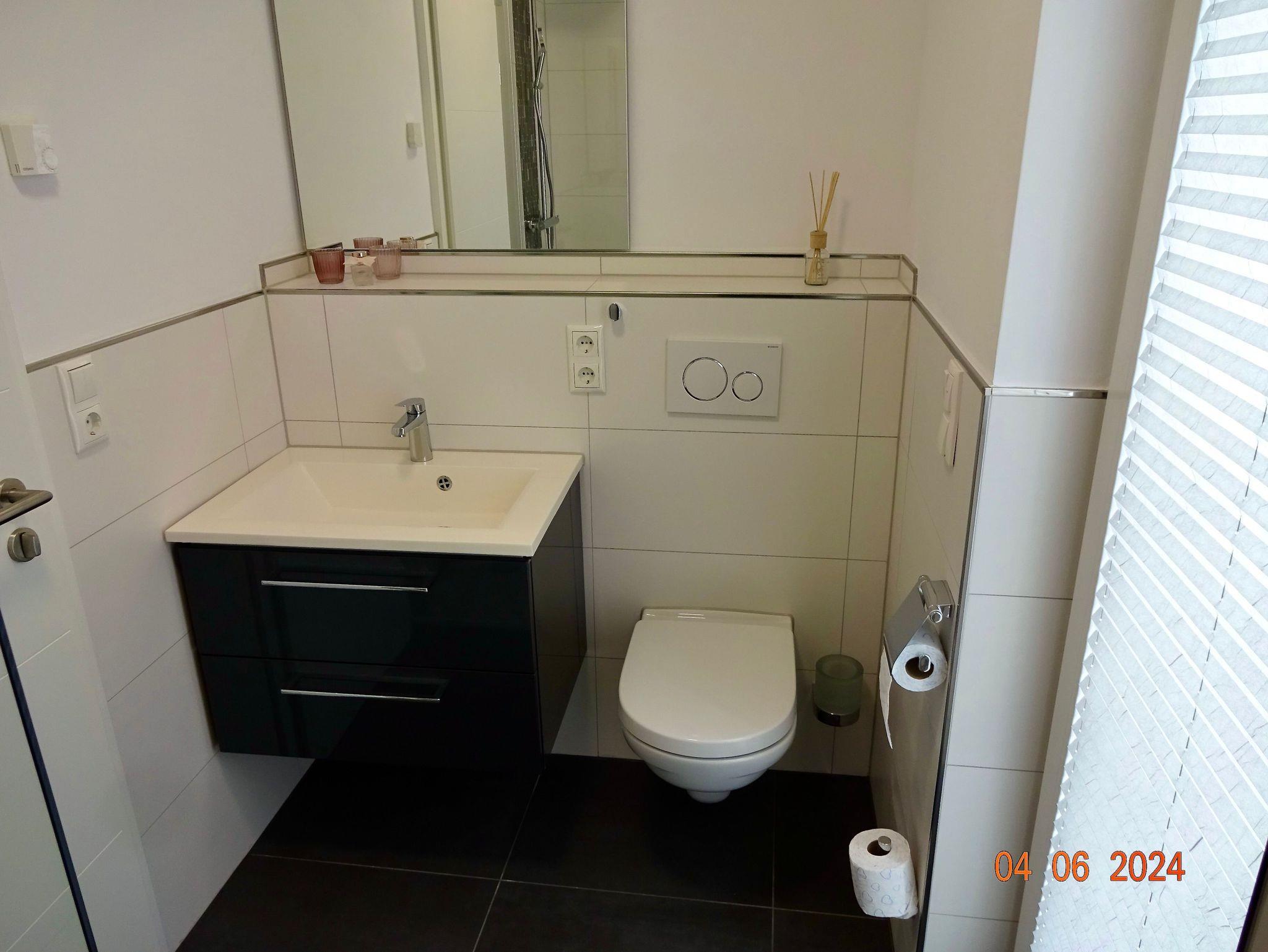 Die Bäder bieten moderne Waschtische und Raindanceduschen. Alle Räume werden über eine Fussbodenheizung beheizt..