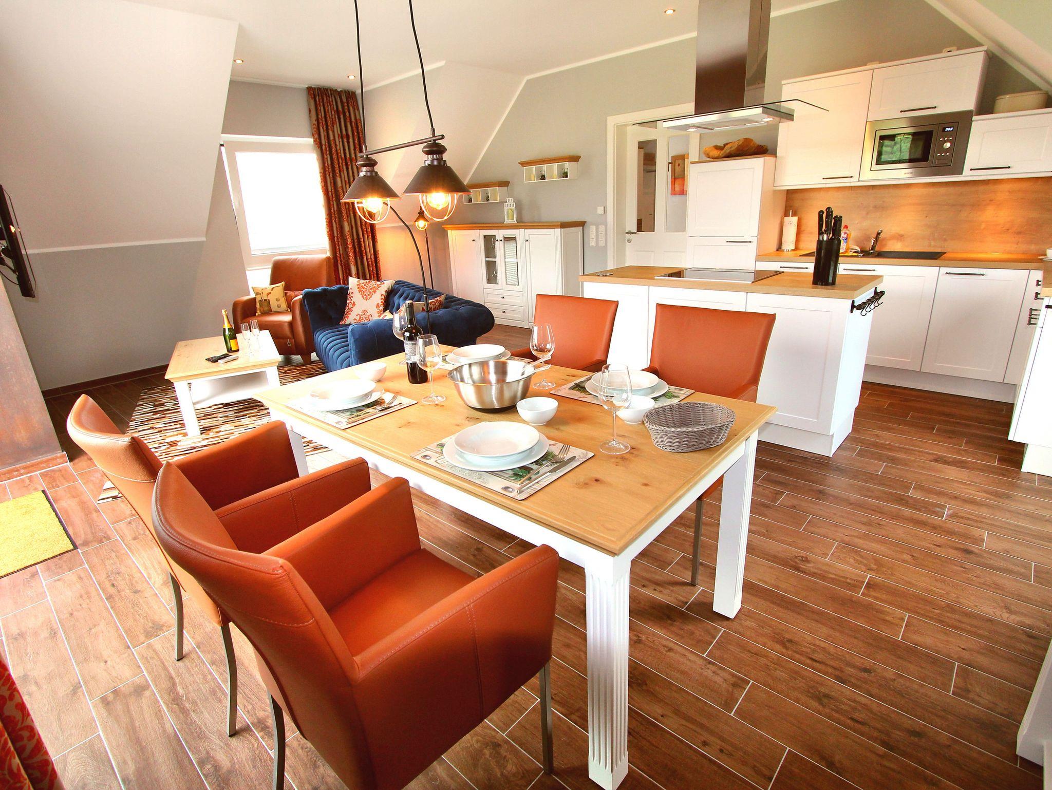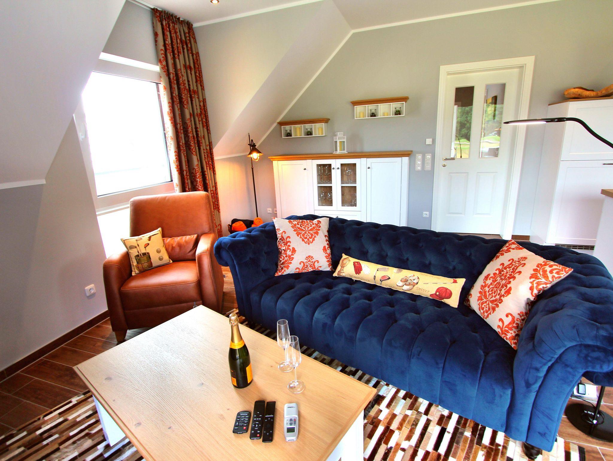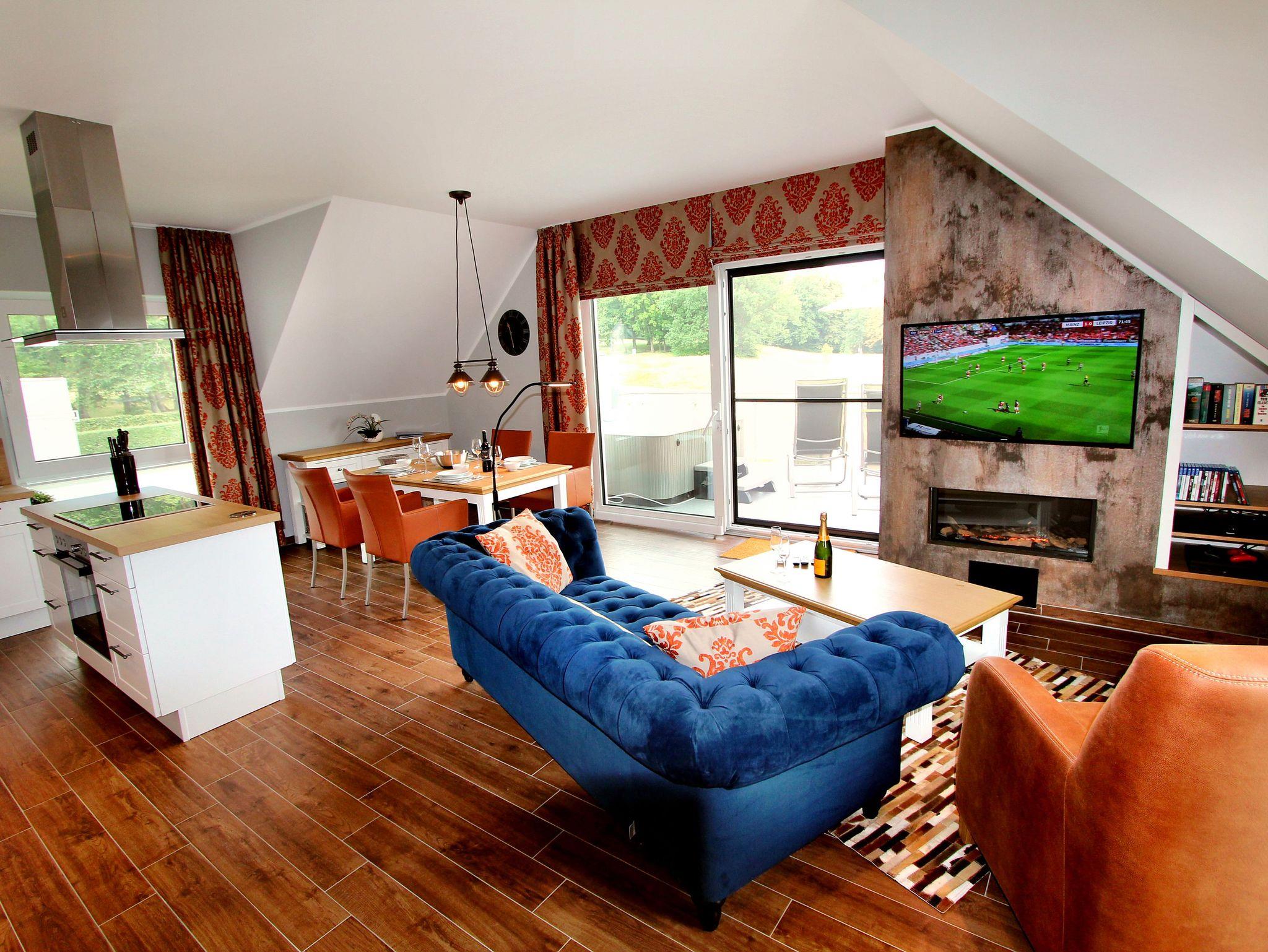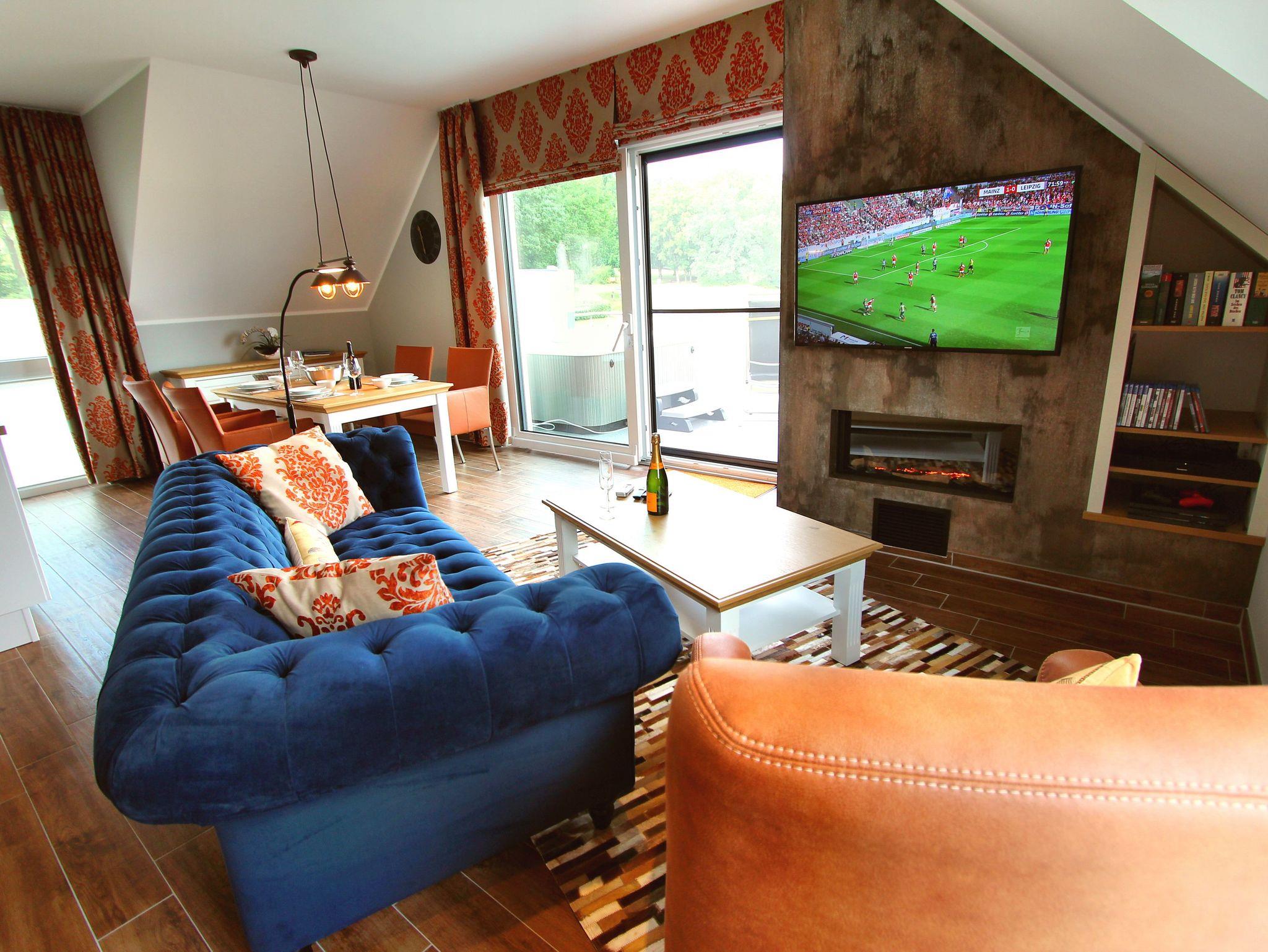 Auf 100m² Wohnfläche erwartet Sie eine großzügige und komfortable Unterkunft. Die beiden Schlafzimmer sind stilvoll gestaltet, eines davon mit einem Bad en Suite für zusätzliche Bequemlichkeit und Privatsphäre. Das zweite Badezimmer ist mit einer Sauna und einer bodengleichen Dusche ausgestattet, um Ihnen erholsame Momente der Entspannung zu ermöglichen. Der Wohn- und Essbereich besticht durch einen gemütlichen Gas-Kamin, der eine behagliche Atmosphäre schafft und zum Verweilen einlädt. Die offene Küche ist voll ausgestattet und bietet Ihnen die Möglichkeit, köstliche Mahlzeiten zuzubereiten und Ihre Liebsten zu verwöhnen.