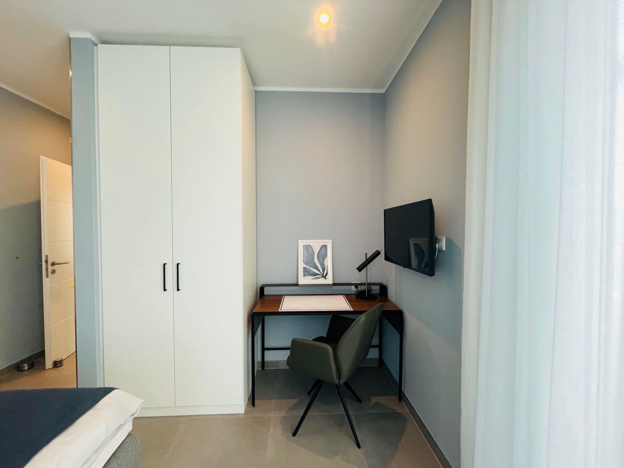 Die beiden Schlafzimmer sind stilvoll eingerichtet und laden zum Entspannen ein. Hier können Sie sich zurückziehen und erholsame Nächte verbringen. Die zwei Badezimmer sind modern gestaltet und bieten Ihnen allen Komfort, den Sie benötigen. Starten Sie frisch in den Tag. Der offene Wohn- und Essbereich ist großzügig gestaltet und mit einer exklusiven und hochwertigen Einrichtung versehen. Hier können Sie gemeinsam mit Ihren Liebsten gemütliche Stunden verbringen und sich wie zu Hause fühlen.
