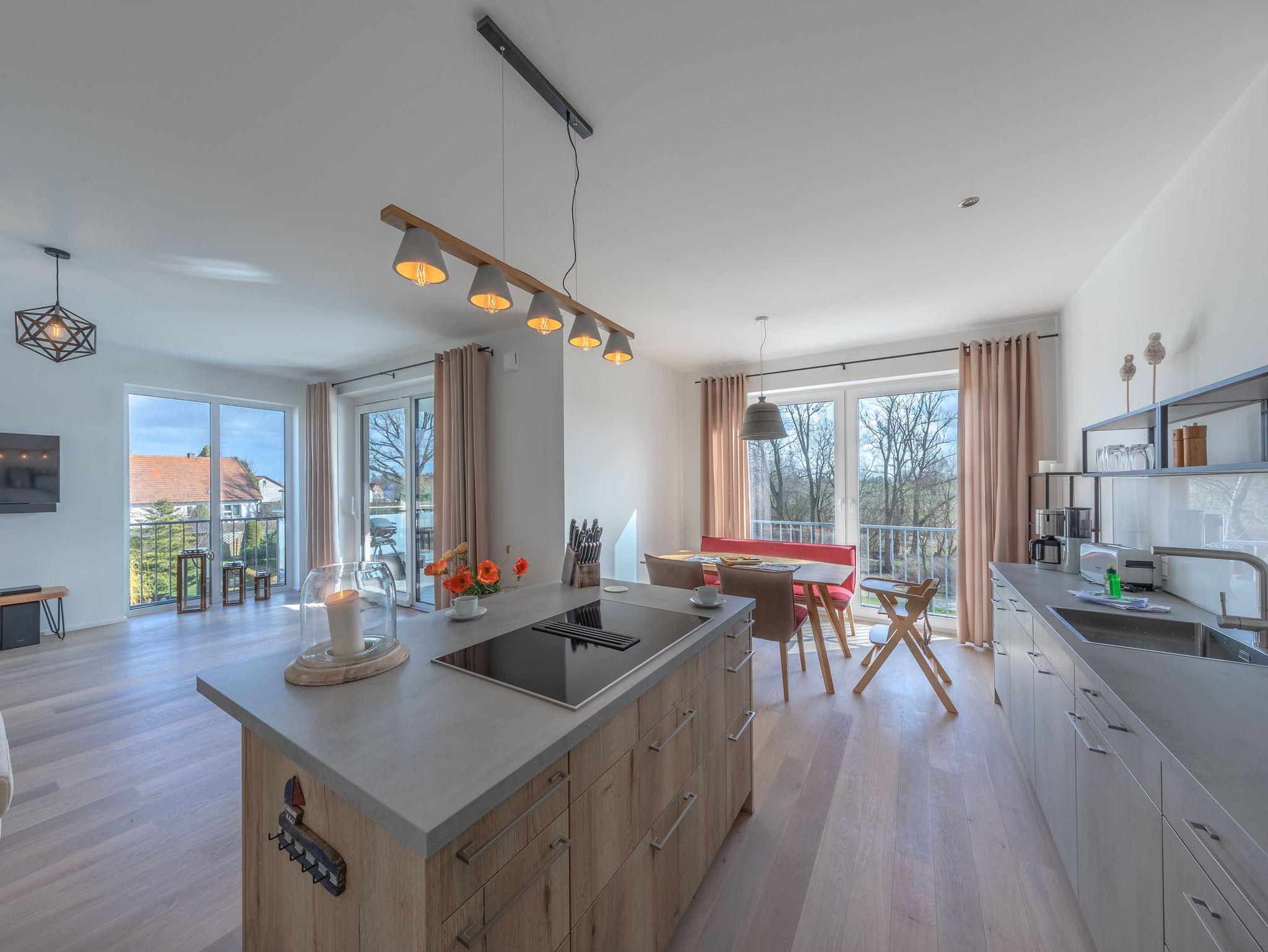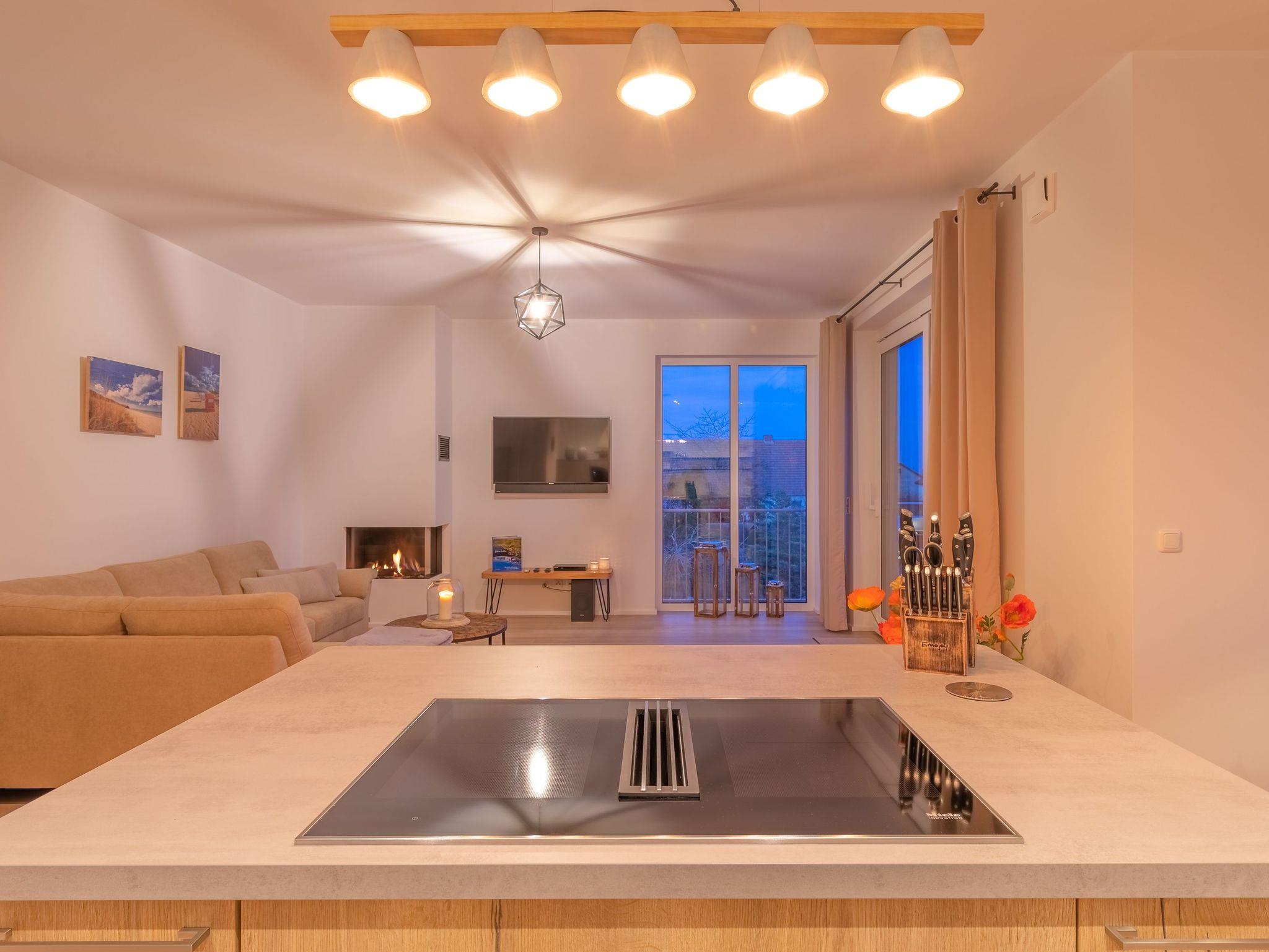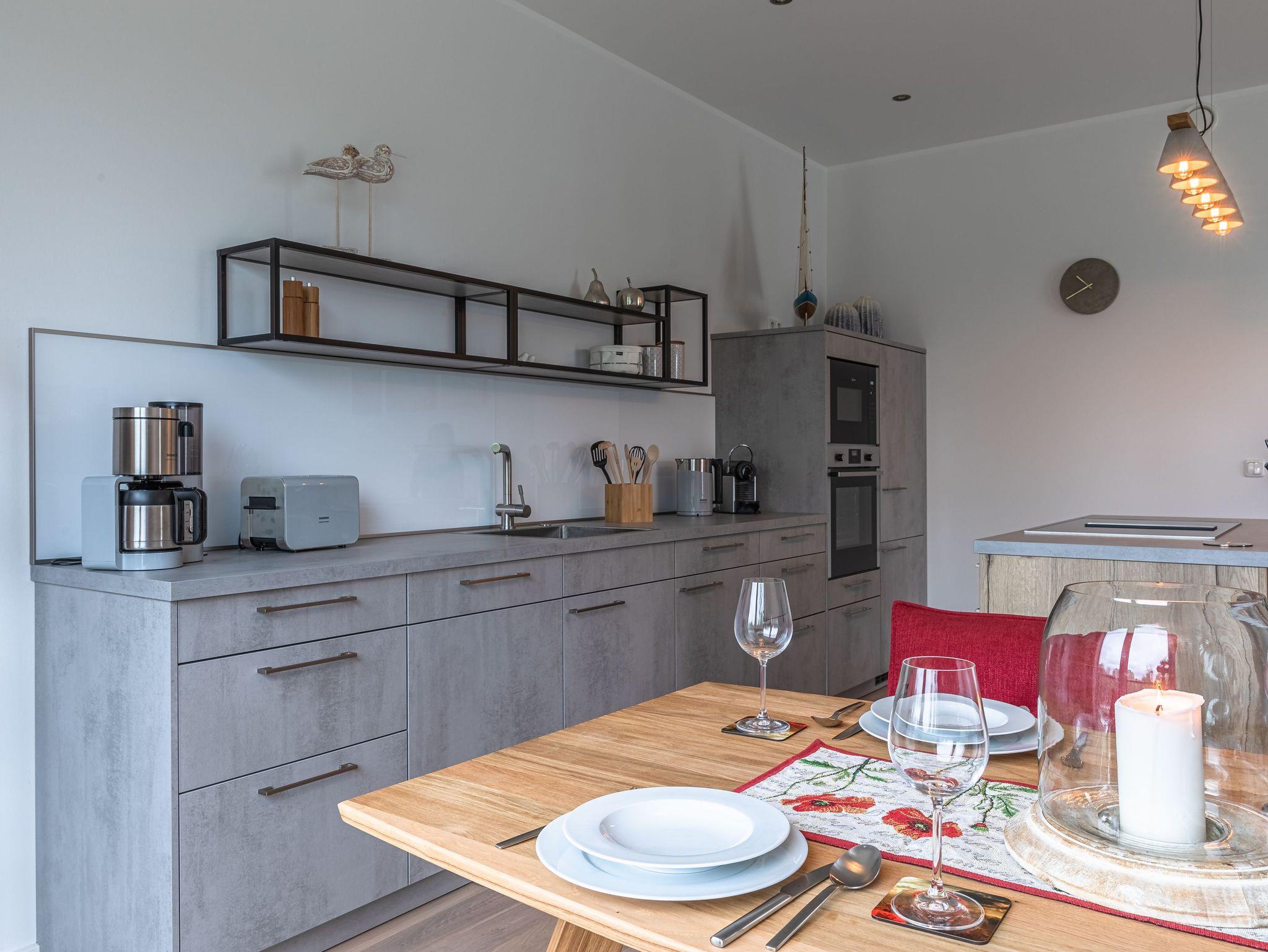 Die großzügige und exklusive Ferienwohnung bietet Ihnen 125 m² Wohnfläche, die durch einen offenen Wohn- und Essbereich mit einem gemütlichen Gas-Kamin geprägt ist. Hier können Sie gemütliche Abende verbringen und die wohlige Wärme genießen. Die zwei Schlafzimmer sind stilvoll eingerichtet und laden zum Träumen und Erholen ein. Für noch mehr Komfort stehen Ihnen zwei Badezimmer zur Verfügung, beide mit bodengleichen Duschen ausgestattet. Eines der Badezimmer verwöhnt Sie zudem mit einer Sauna, in der Sie sich herrlich entspannen können.