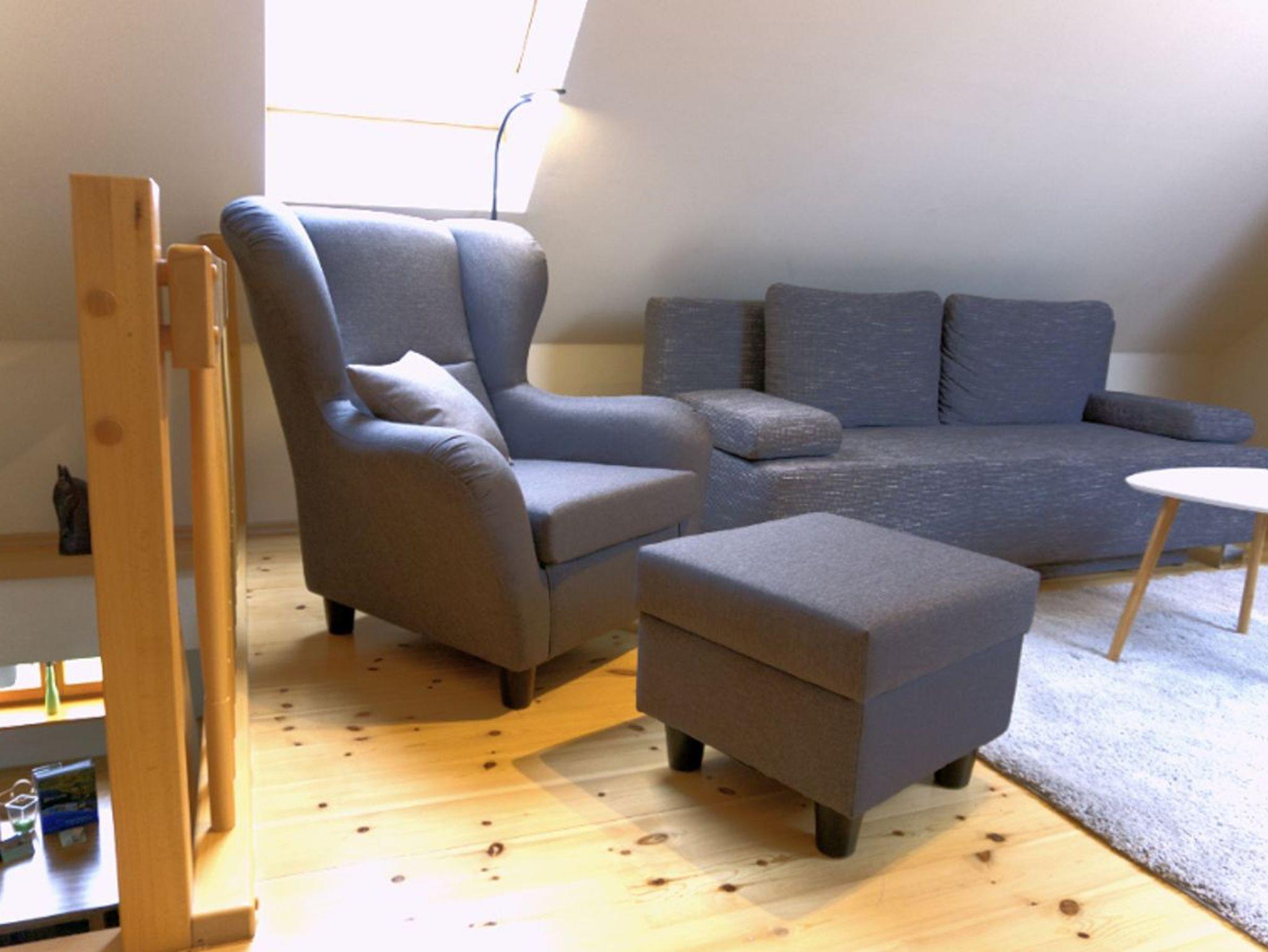 Der erweiteter Aufenthaltsbereich im ausgebauten Spitzboden bietet Ihnen mit einer Vollspektruminfrarot-Sauna (Wärme dringt binnen kurzer Zeit tief in den Körper ein und beeinflusst positiv den Stoffwechsel sowie die Muskulatur, der Körper entschlackt, Giftstoffe scheidet er aus. Gewinnbringend ist natürlich auch die psychische und physische Entspannung). Hier können Sie sich danach auf dem (Schlaf-) Sofa erholen. Ebenfalls befindet sich dort ein TV und Schreibtisch sowie eine sep. Toilette mit Waschbecken im Spitzboden.