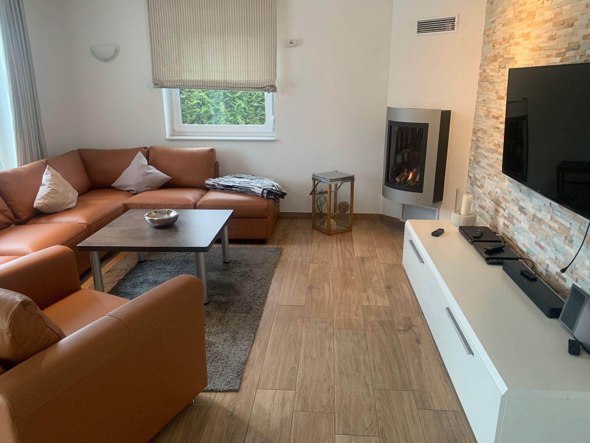 Lässig auf dem Sofa liegend, kann man komplett entspannen mit Musik oder Sky TV und einem Gaskamin.