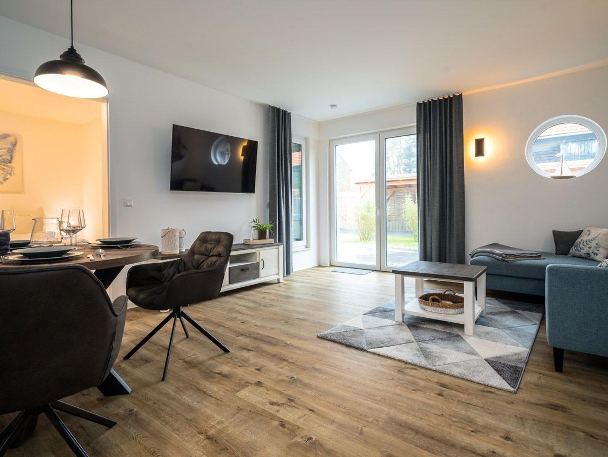Die Terrasse mit einem Außen-Whirlpool ist ein Highlight dieser Wohnung und lädt dazu ein, unter freiem Himmel zu entspannen. Der gemeinschaftlich genutzte Garten bietet Platz, um die Natur zu erleben und sich zu erholen.