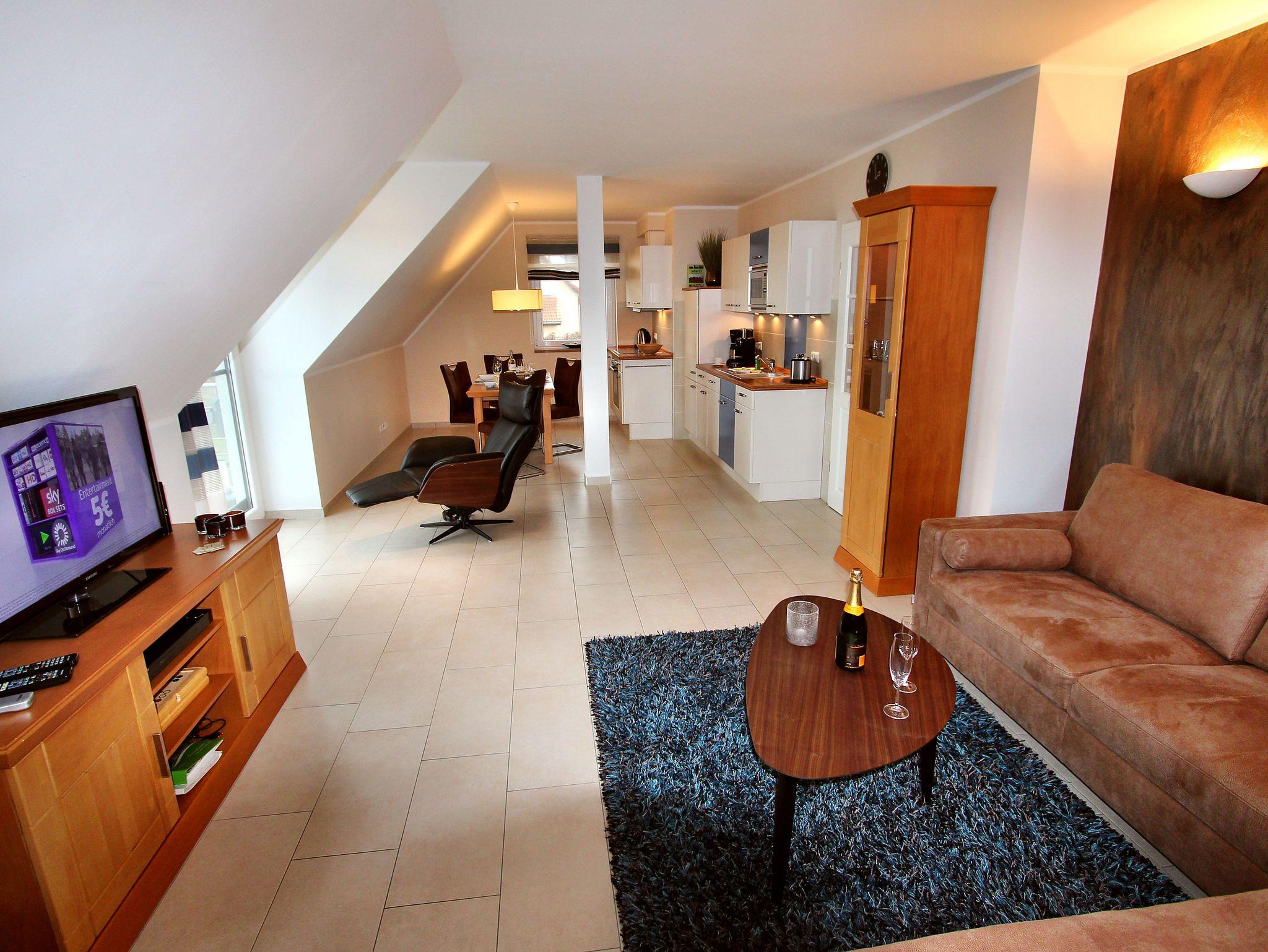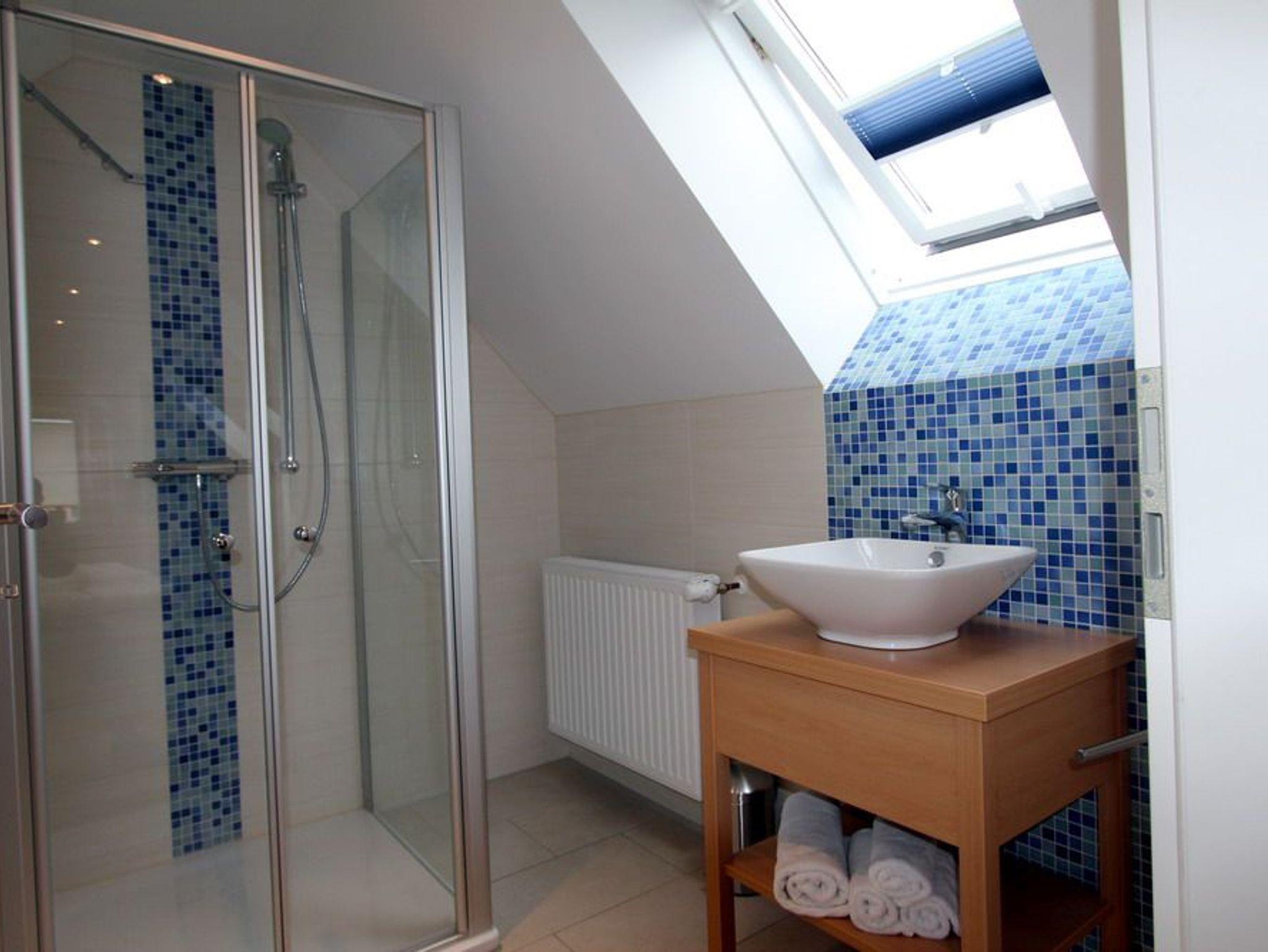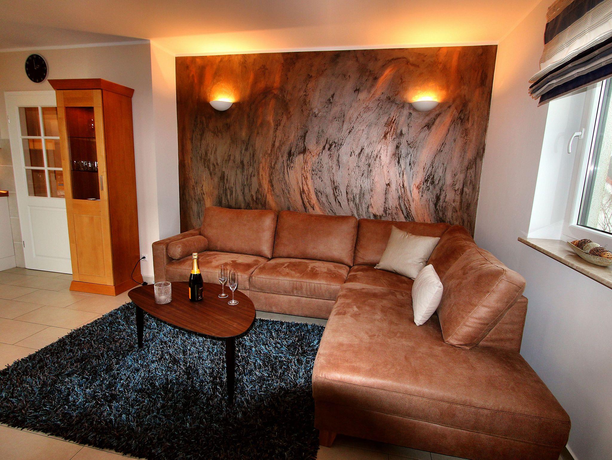 Unser Haus besteht aus 2 separaten Ferienwohnungen mit hauseigenem Außen Whirlpool, die Ihnen eine entspannte und komfortable Auszeit bieten. Die Wohnung im Obergeschoss ist im Maisonette-Stil gestaltet und verfügt über eine private Sauna, in der Sie nach einem aktiven Tag wunderbar relaxen können. Der großzügige Wohn- und Essbereich lädt zum Verweilen und Entspannen ein. Hier können Sie gemütliche Stunden verbringen und gemeinsame Mahlzeiten genießen. Die voll ausgestattete Küche bietet Ihnen alle Annehmlichkeiten, um Ihre Lieblingsgerichte zuzubereiten. Die Ferienwohnung verfügt über 2 Schlafzimmer, die Ihnen eine angenehme Nachtruhe versprechen. Zudem stehen Ihnen 2 Bäder zur Verfügung, die mit modernen Annehmlichkeiten ausgestattet sind.