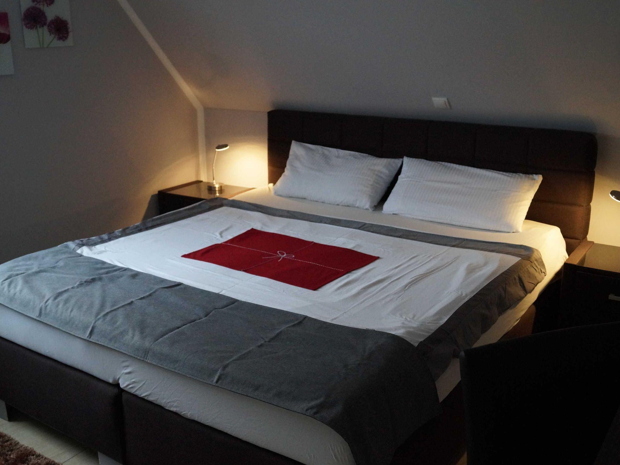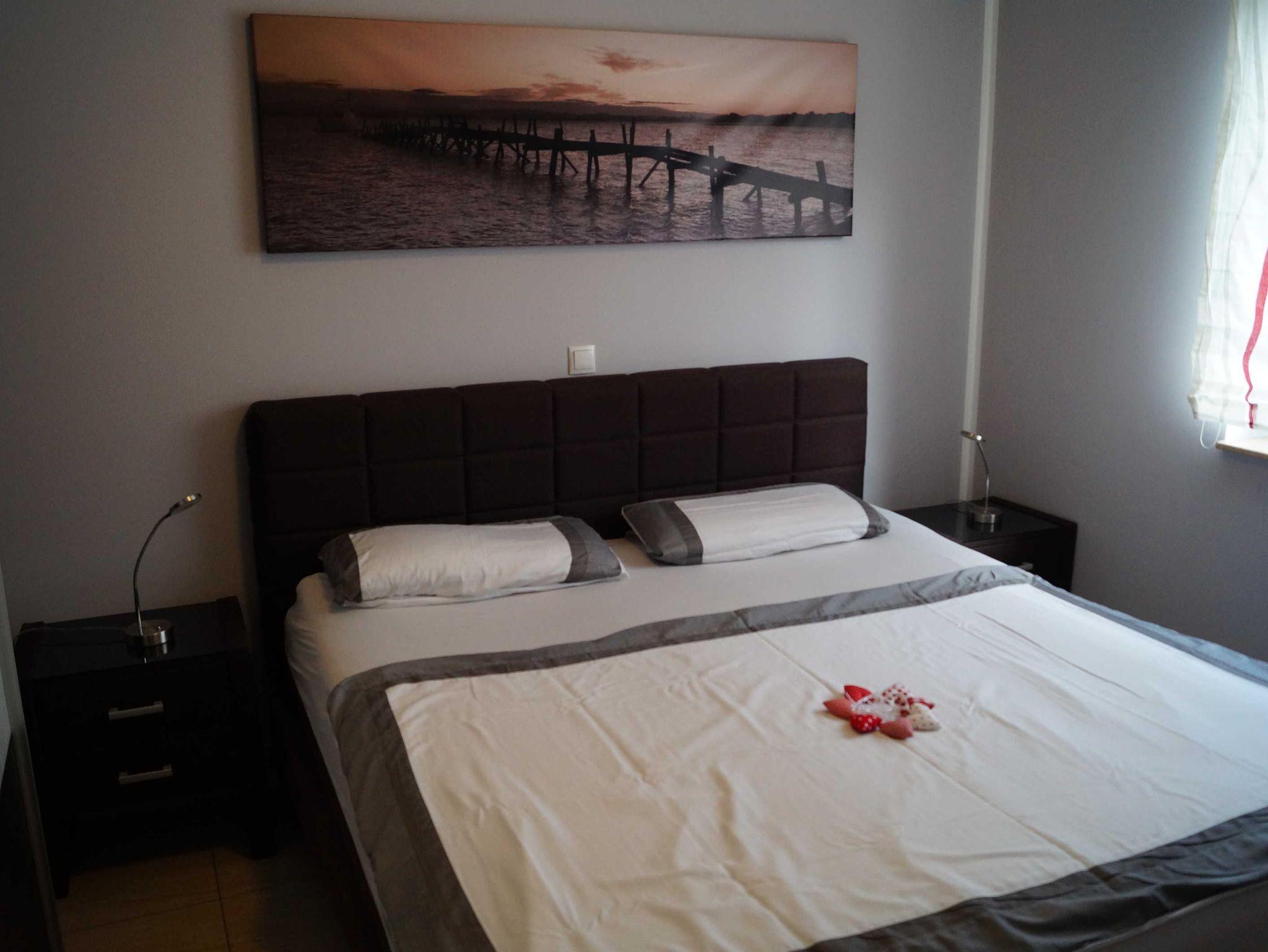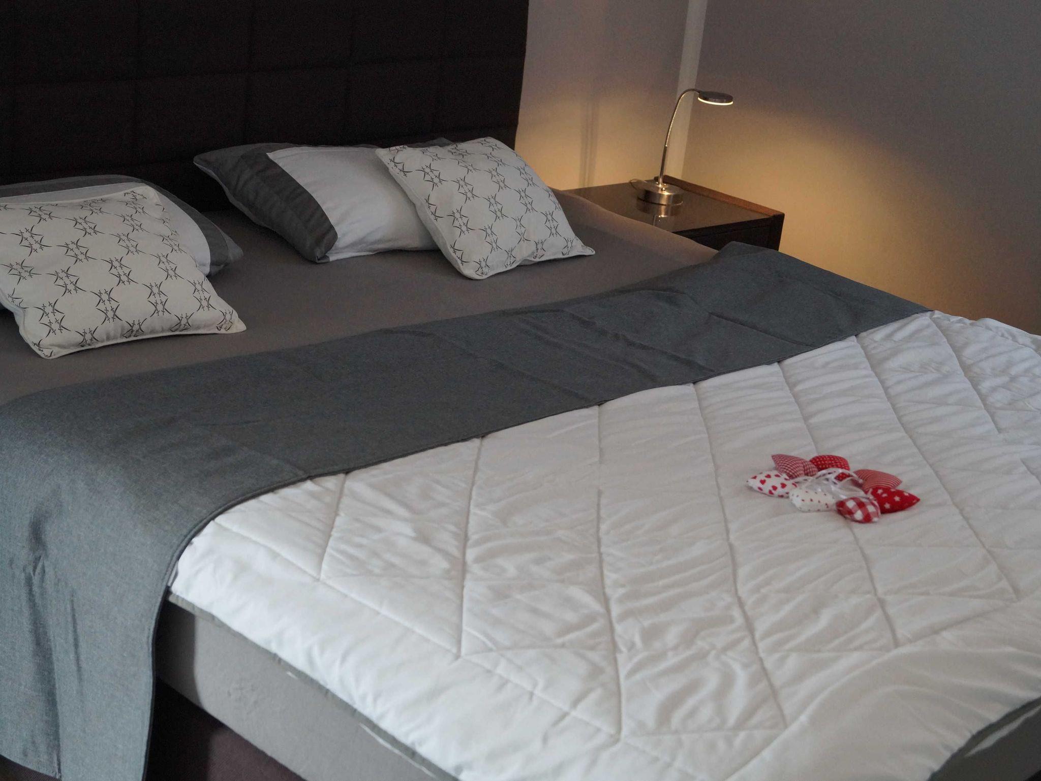 Die Schlafzimmer sind mit jeweils 180x200cm großen Doppelbetten ausgestattet.