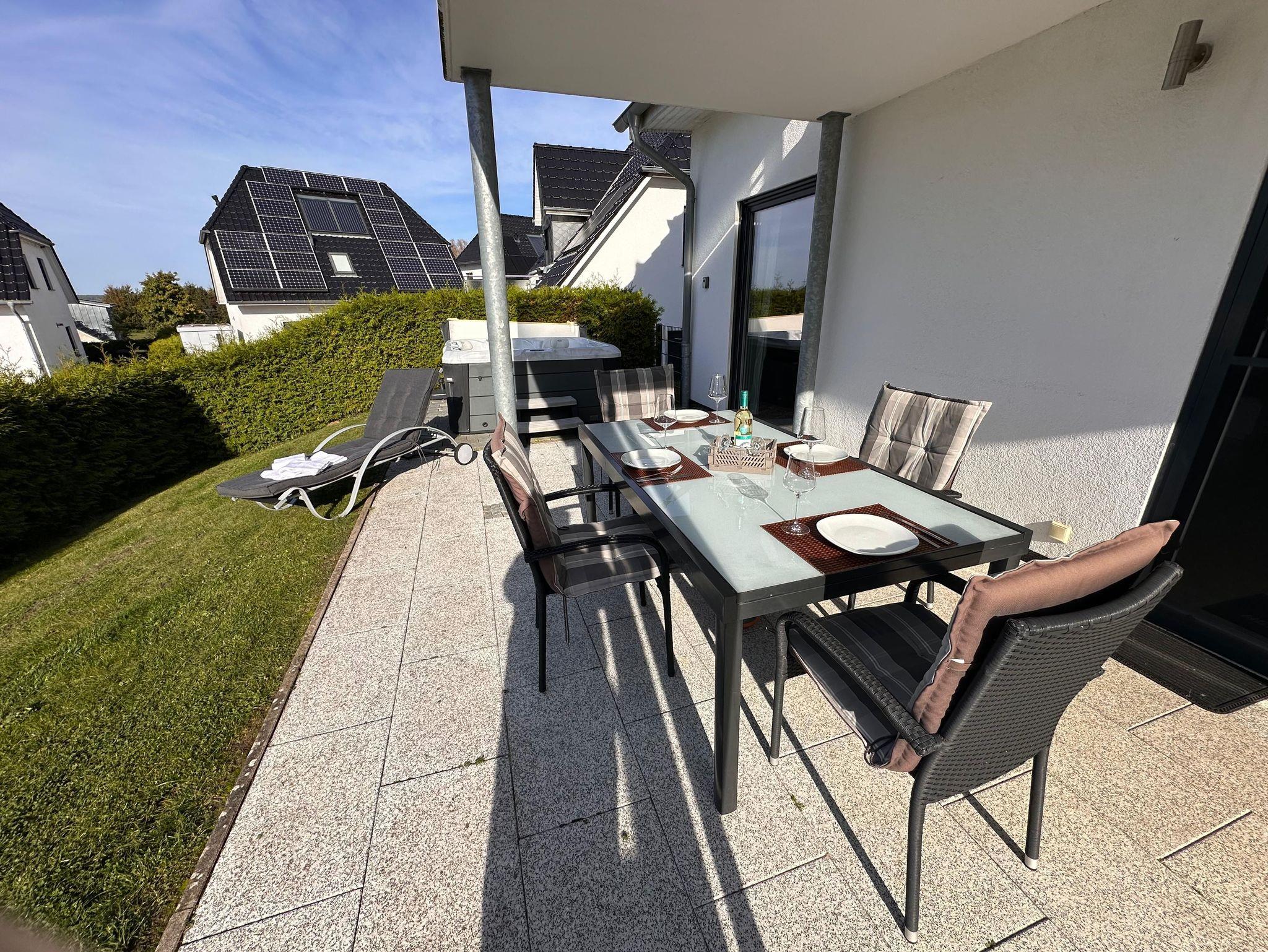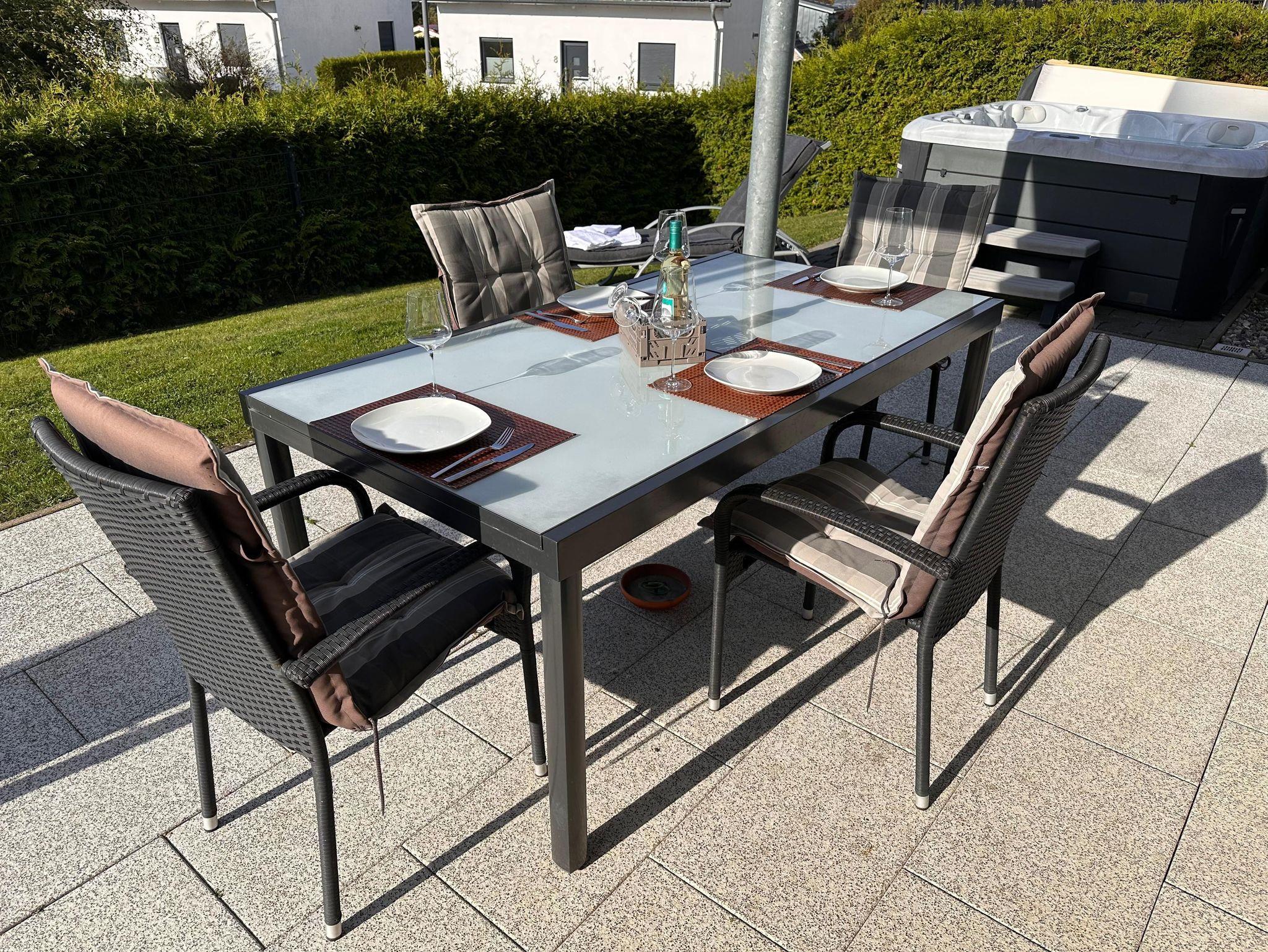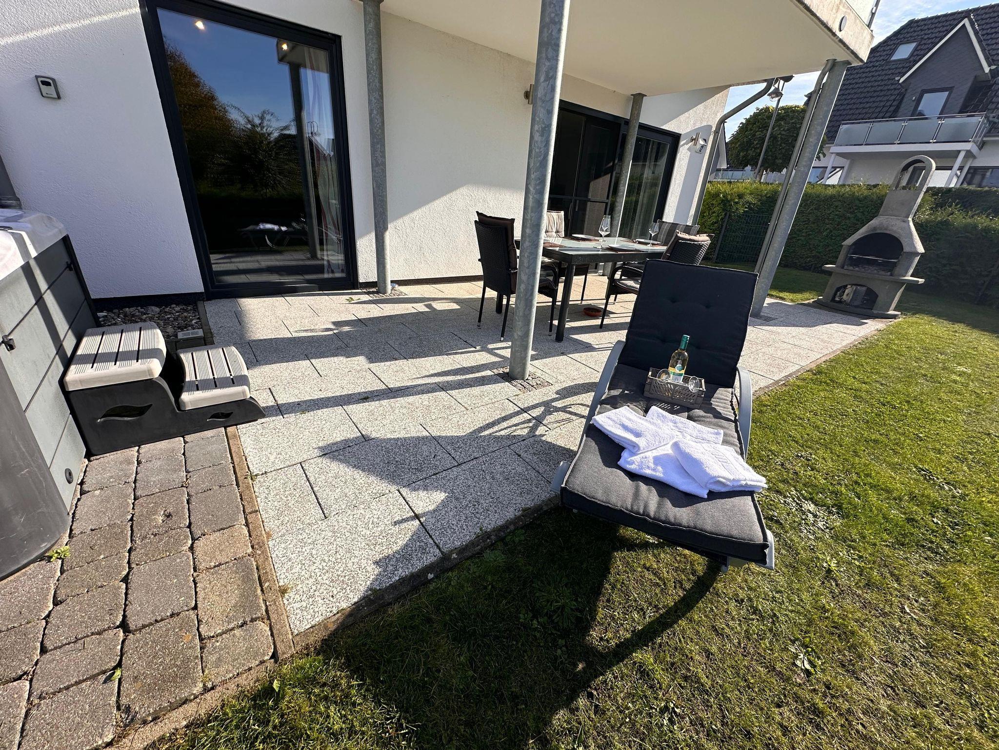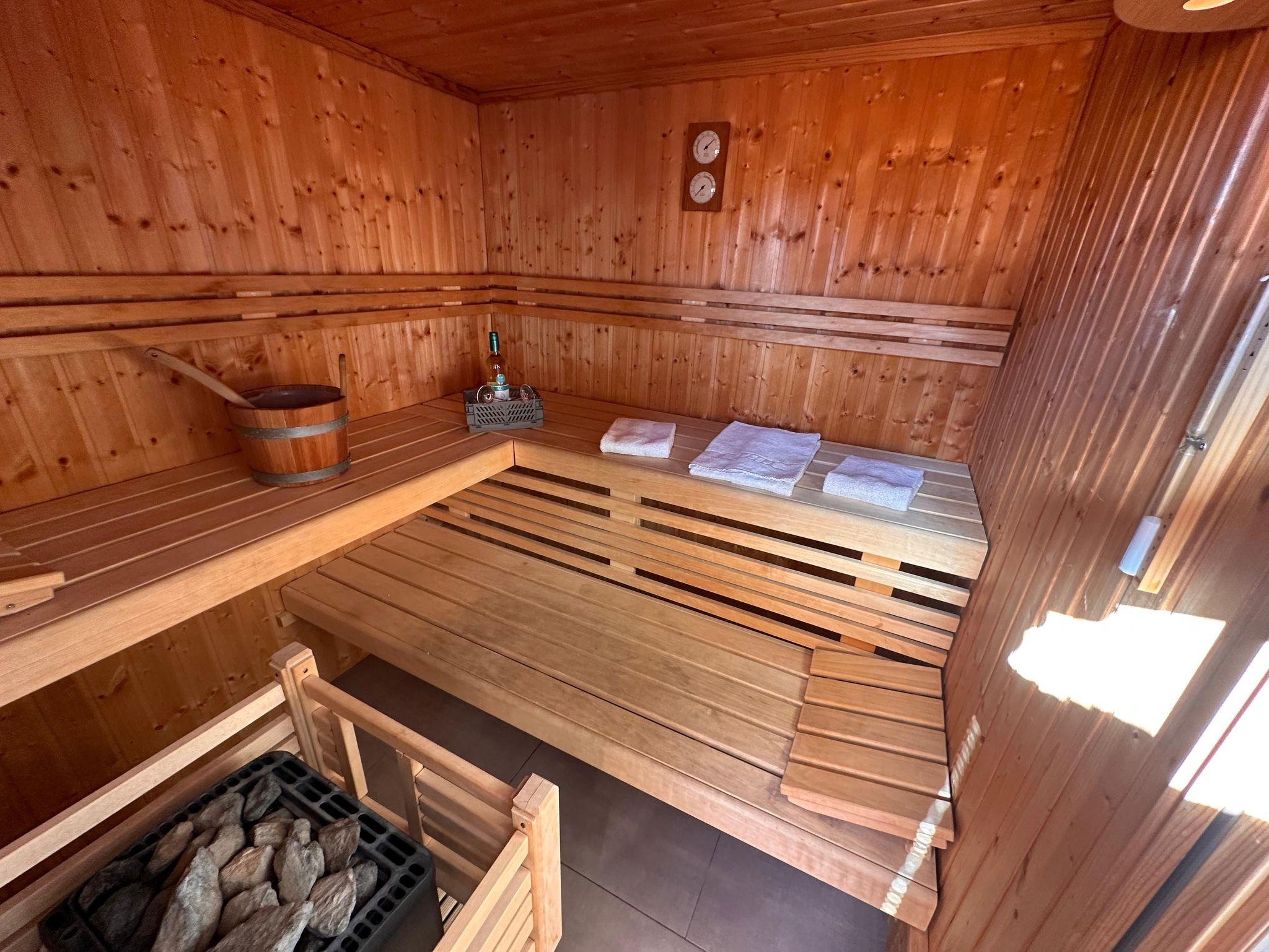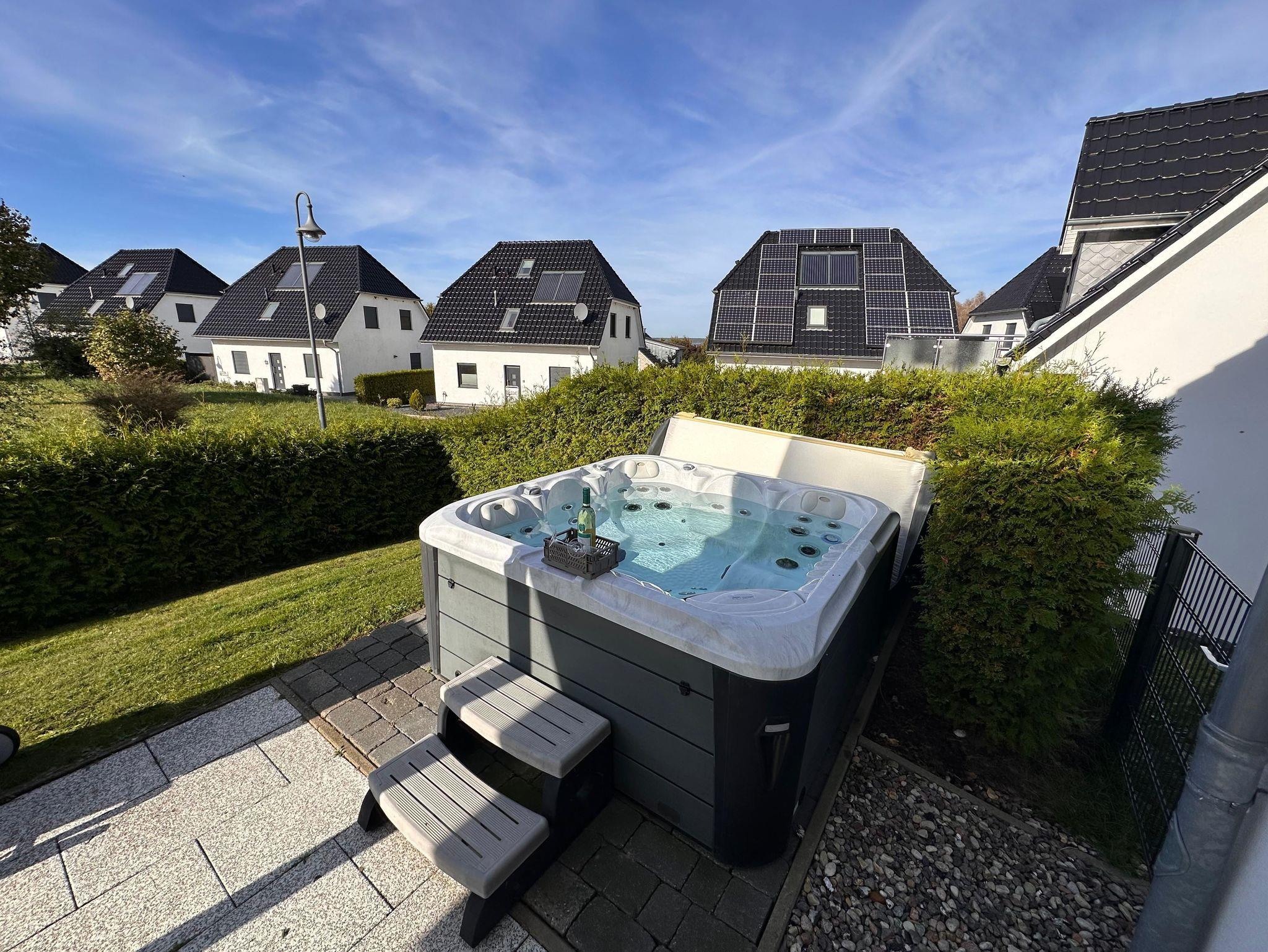 Unsere Luxus-Villa möchte mit 3 Schlafzimmern, 2 Bädern, Sauna & ganzjährigem 38 Grad Außenwhirlpool, und eingezäunten Garten bei Ihnen punkten.