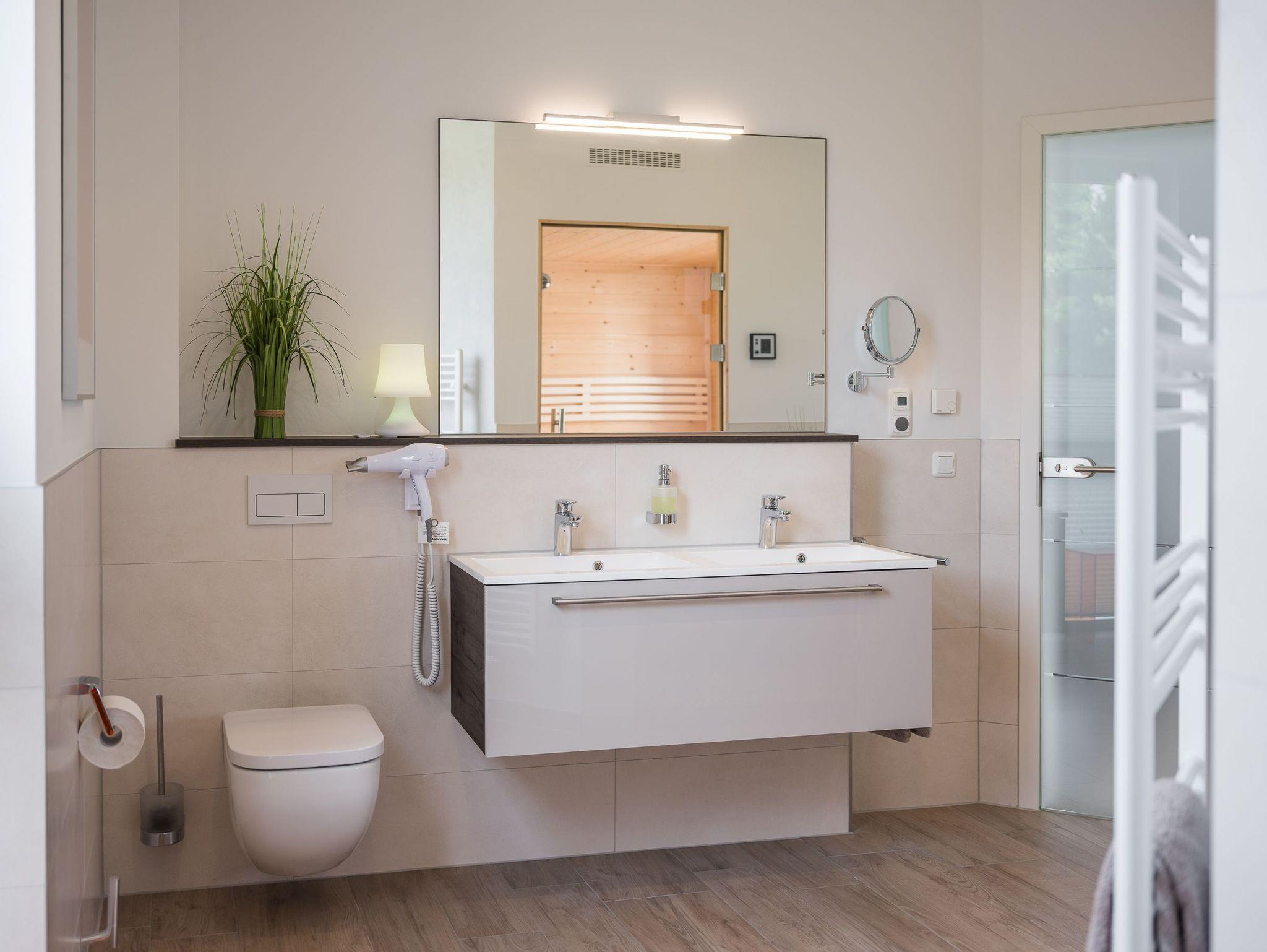 Mit 3 Schlafzimmern und 2 Bädern, sowie 2 zusätzlichen Gäste-WCs, bietet das Haus ausreichend Platz. Die modern offene Wohnküche ist der ideale Ort, um sich kulinarisch auszutoben und dabei das Gespräch mit Familie und Freunden zu genießen. Die Sauna ist ein weiteres Highlight dieses Ferienhauses. Hier können Sie sich bei angenehmer Wärme entspannen und gleichzeitig den Blick auf die idyllische Landschaft genießen. Dieses Ferienhaus bietet Ihnen eine perfekte Kombination aus modernem Komfort und naturnaher Umgebung.
